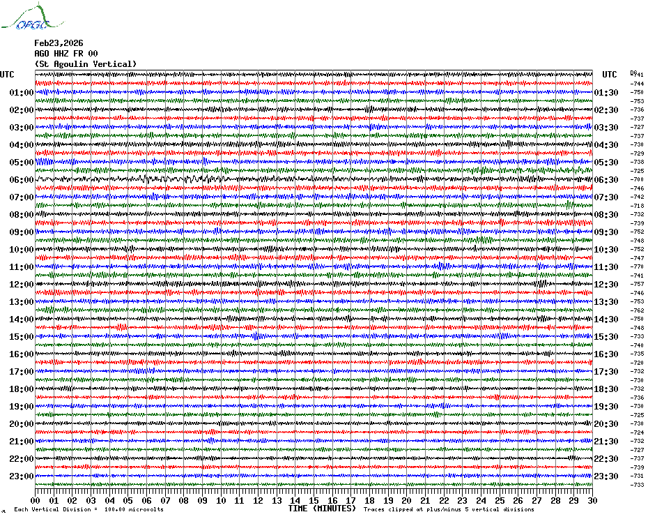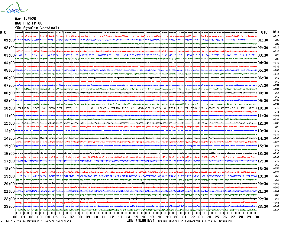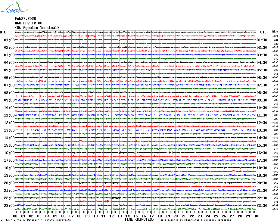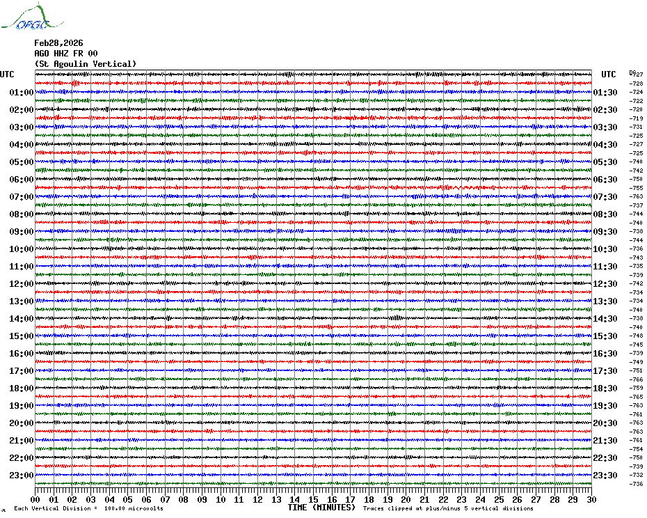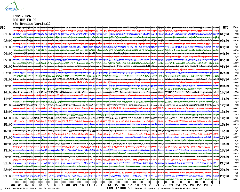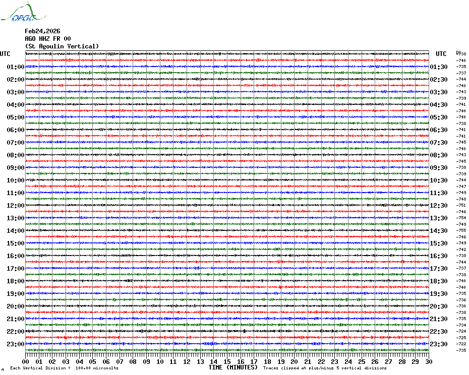 Sismogrammes du Réseau Sismologique Auvergne par fenêtre de 24h