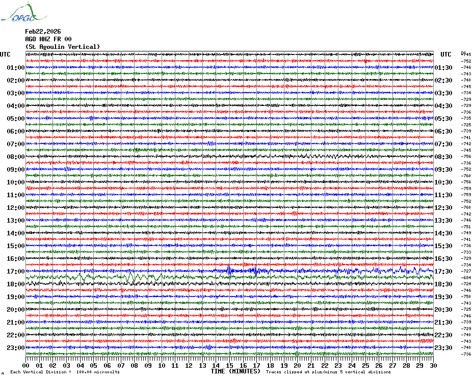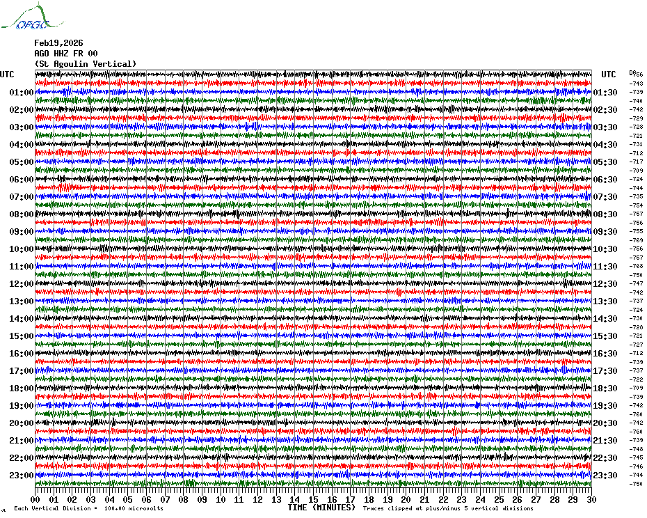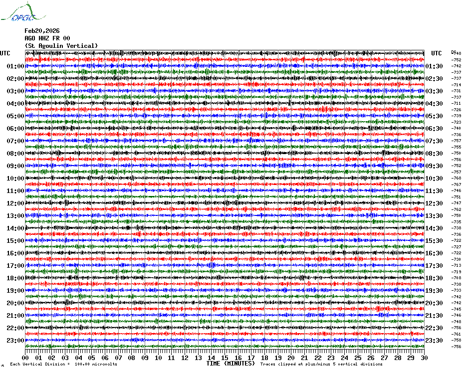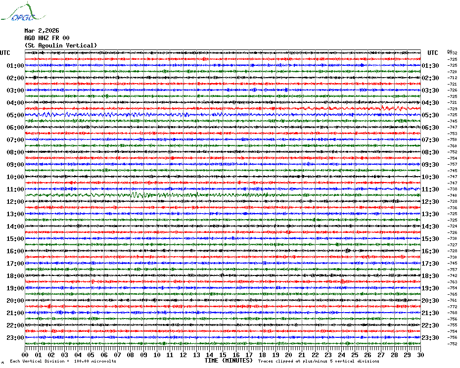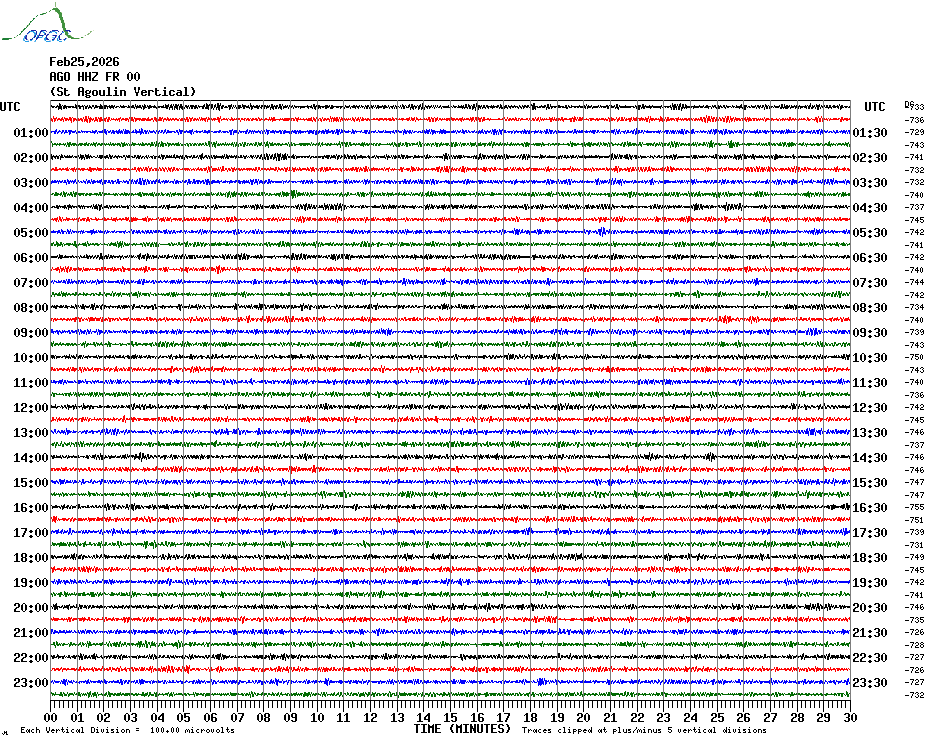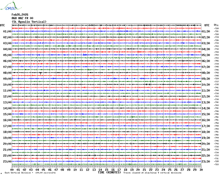 Sismogrammes du Réseau Sismologique Auvergne par fenêtre de 24h