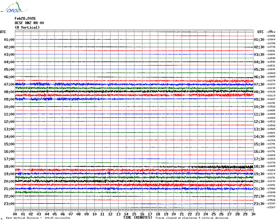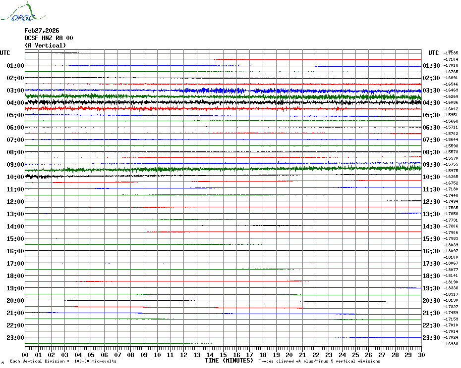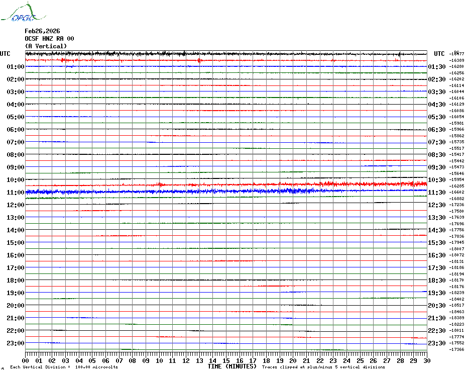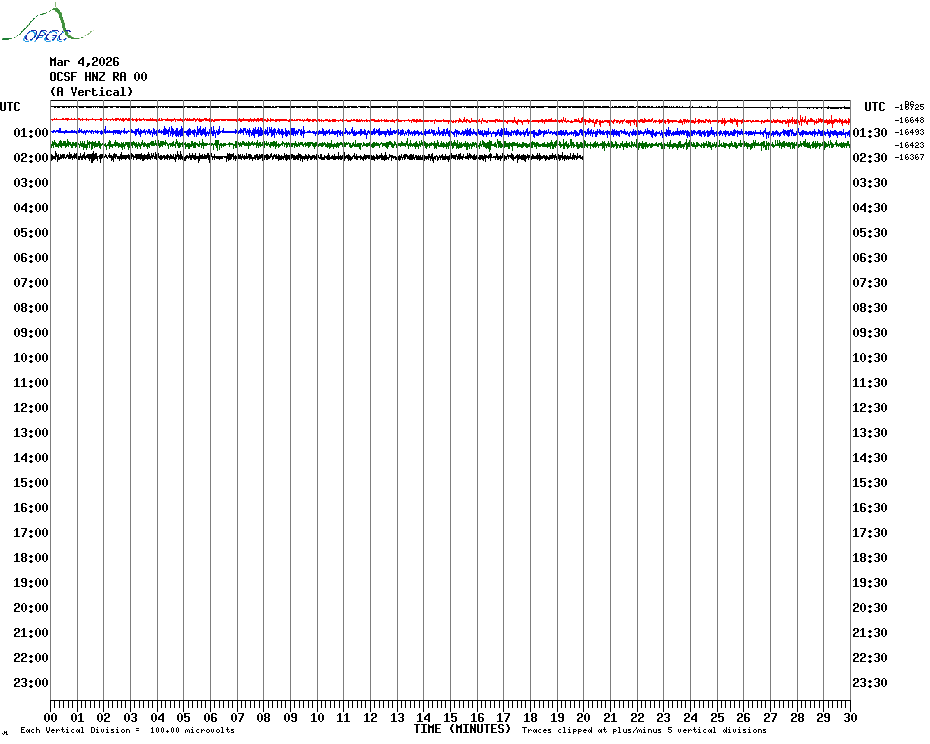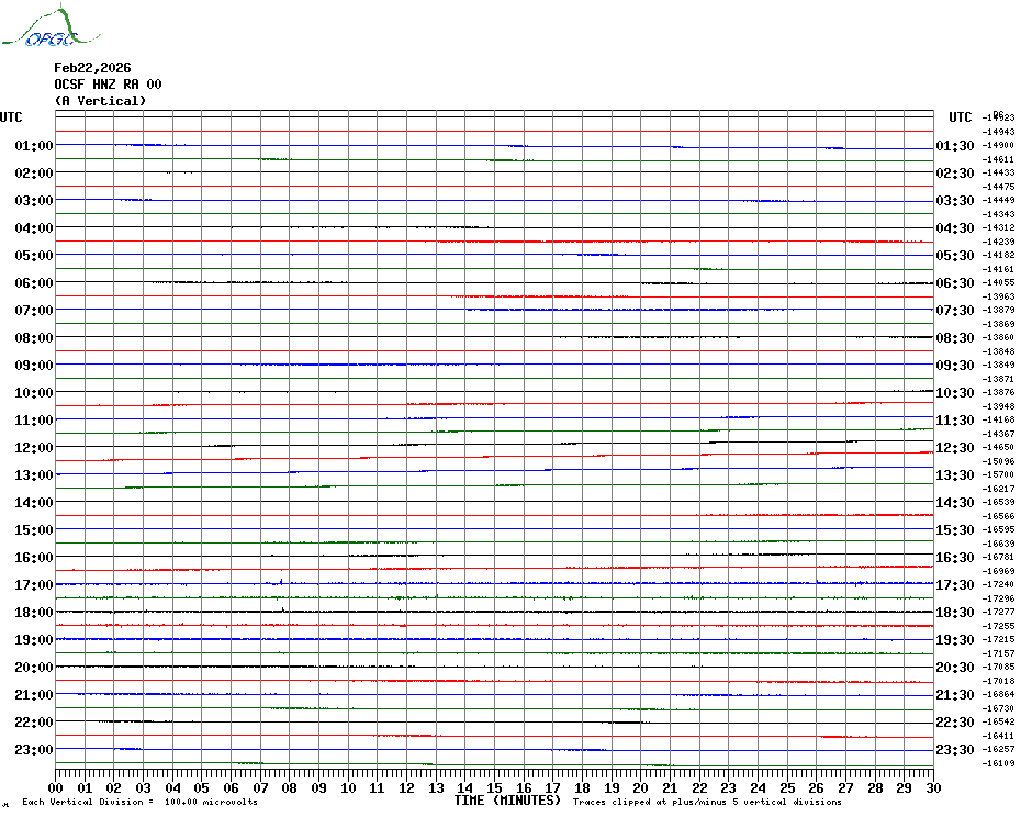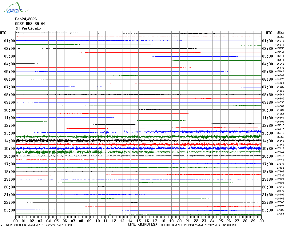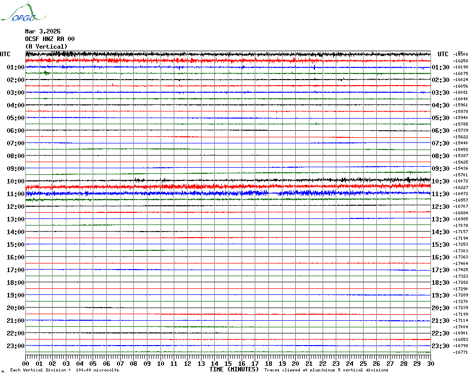 Sismogrammes du Réseau Sismologique Auvergne par fenêtre de 24h