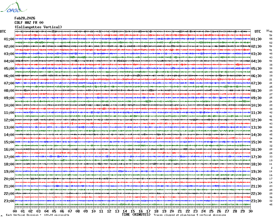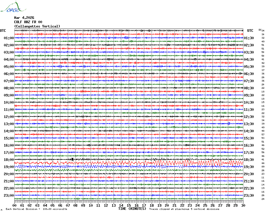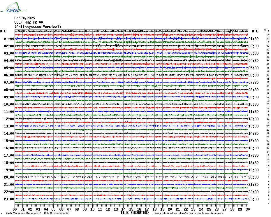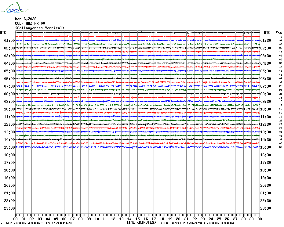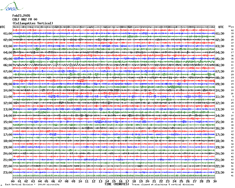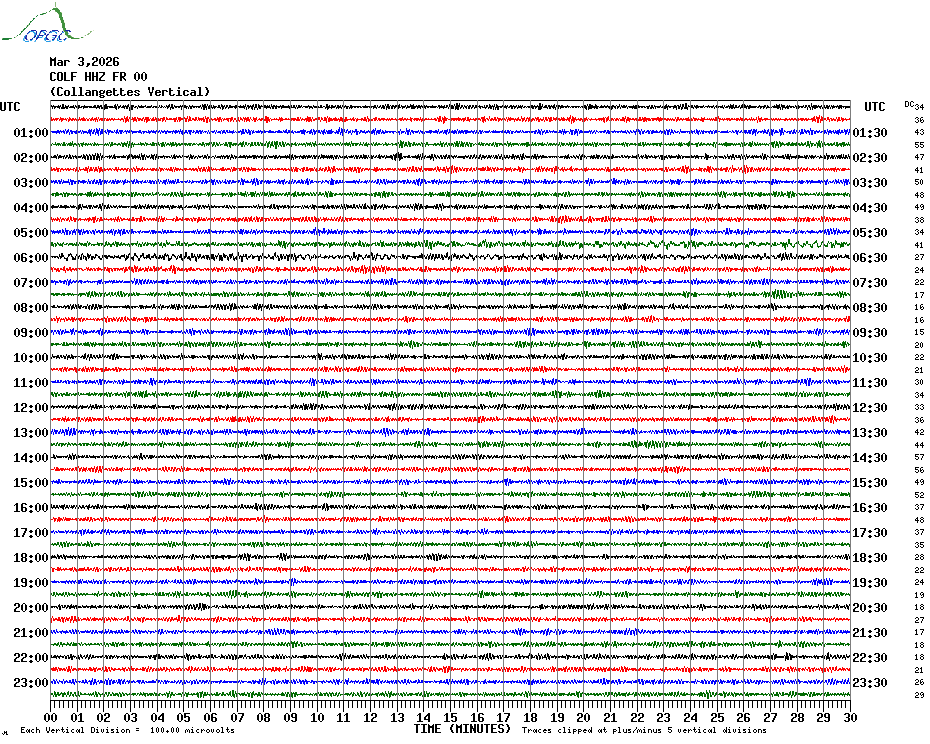 Sismogrammes du Réseau Sismologique Auvergne par fenêtre de 24h