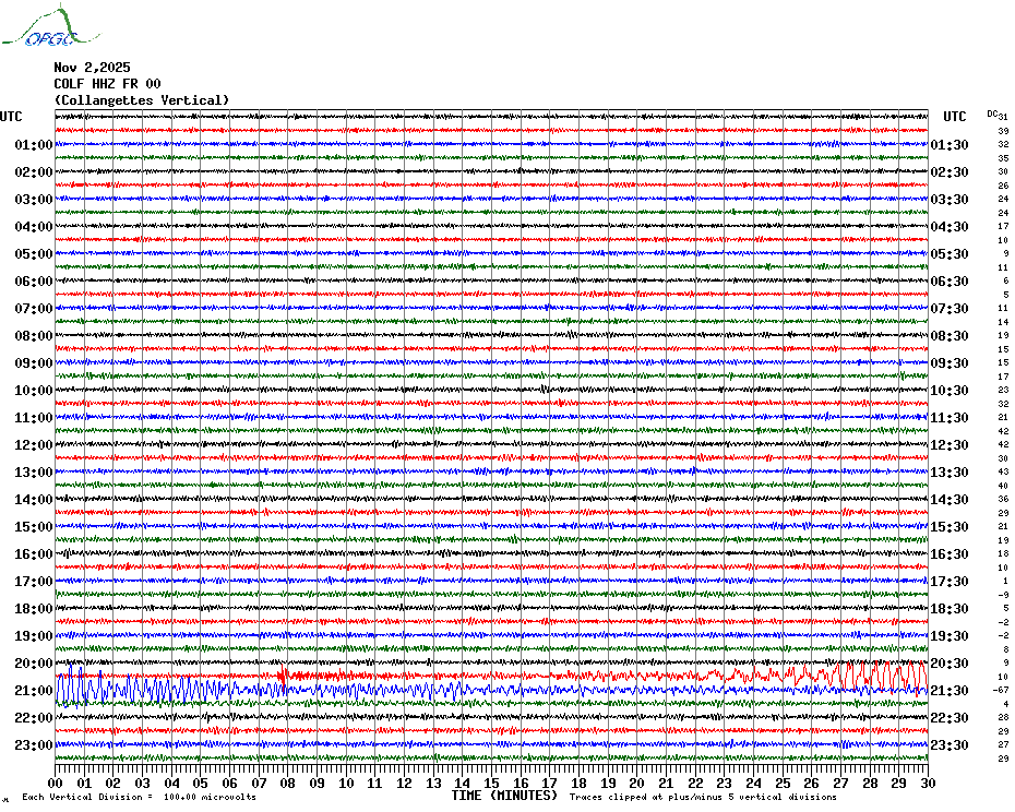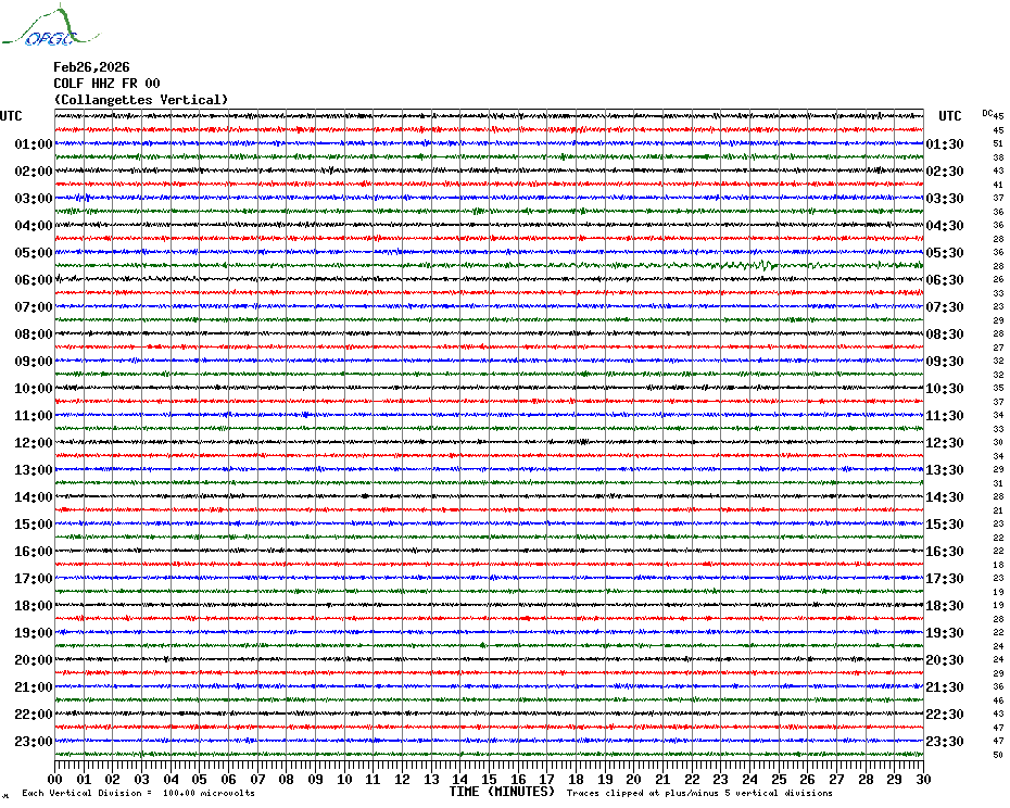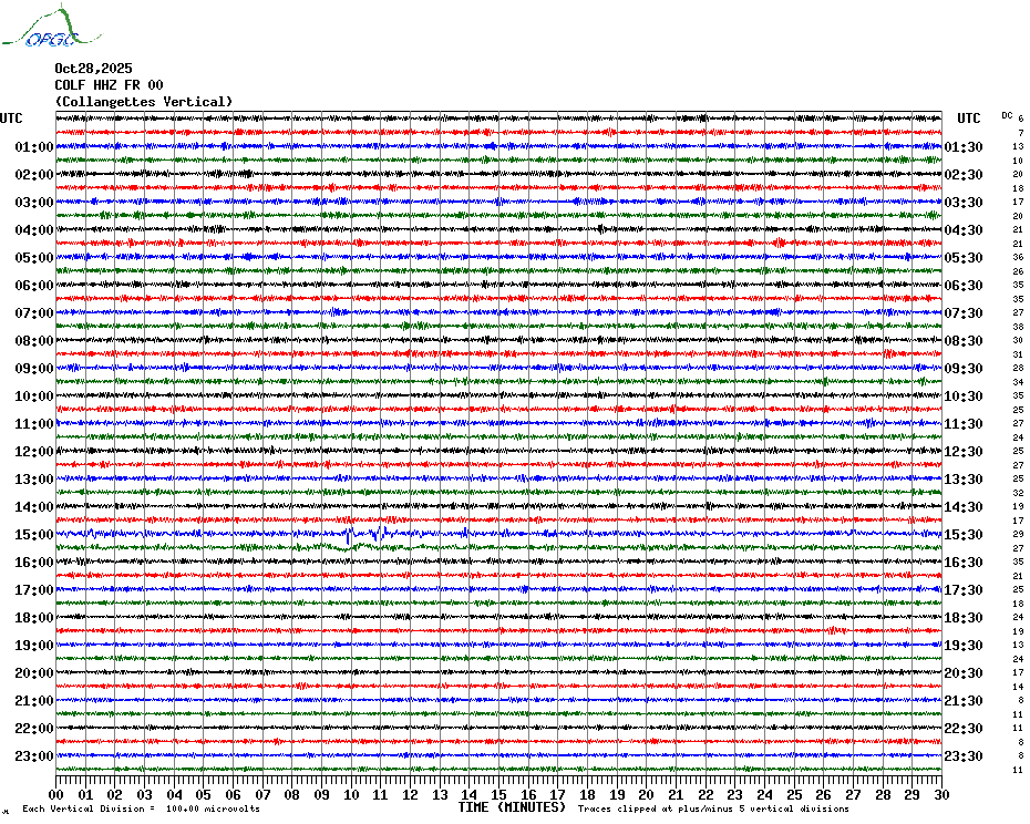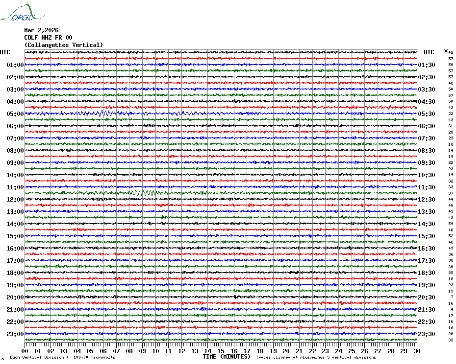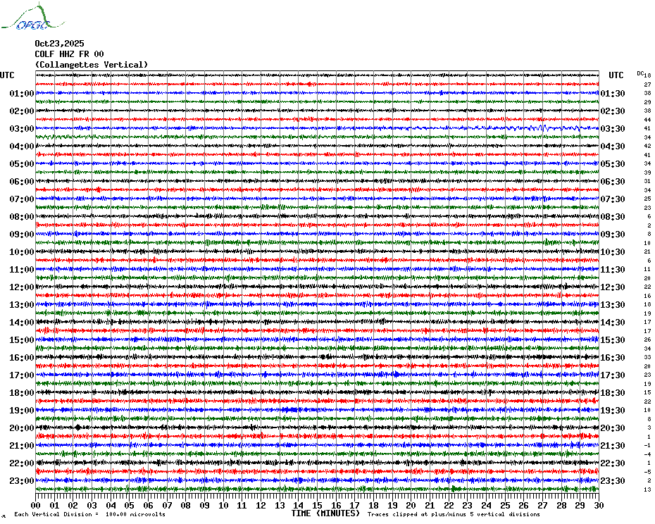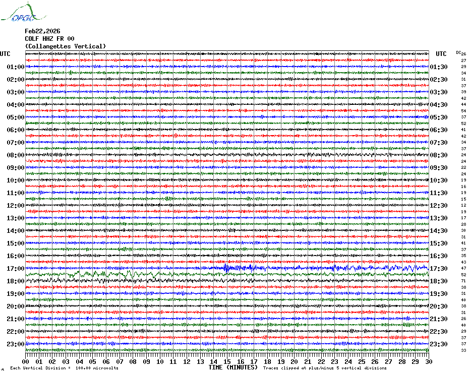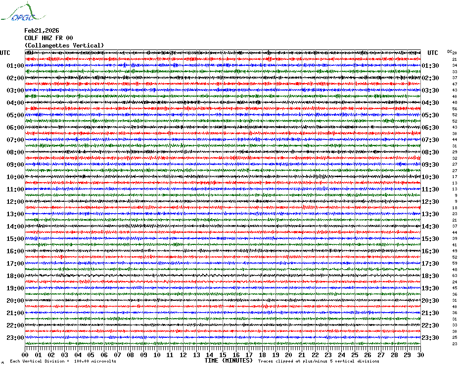 Sismogrammes du Réseau Sismologique Auvergne par fenêtre de 24h