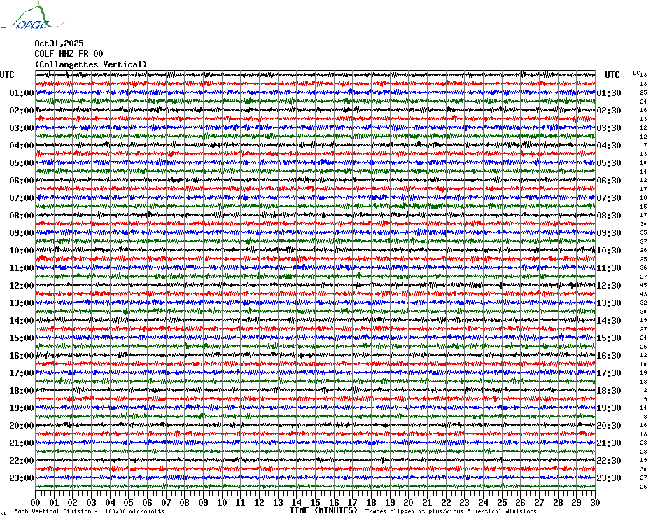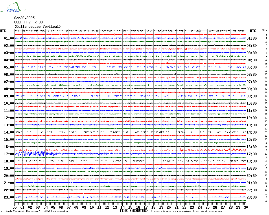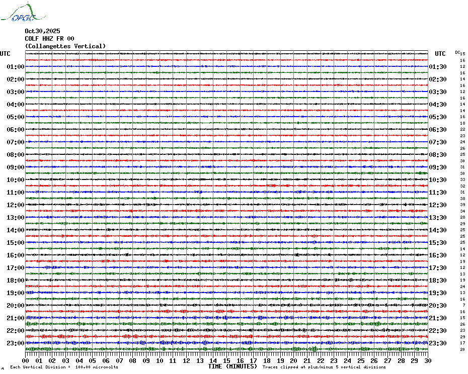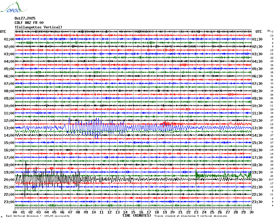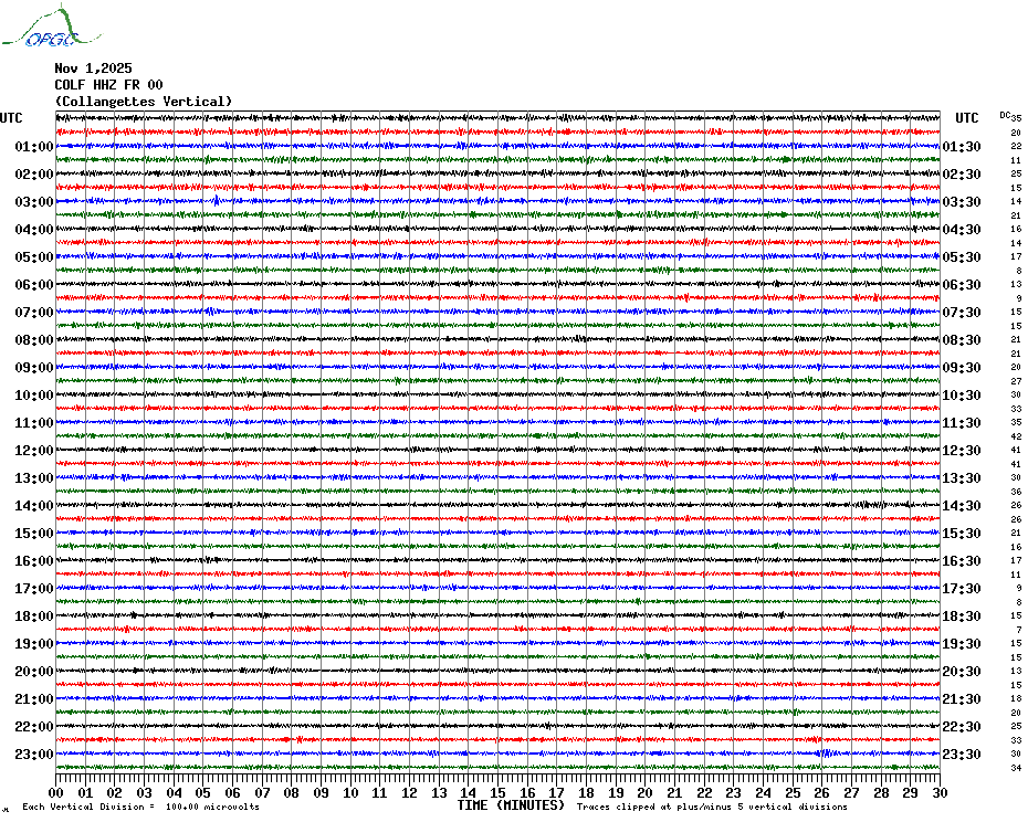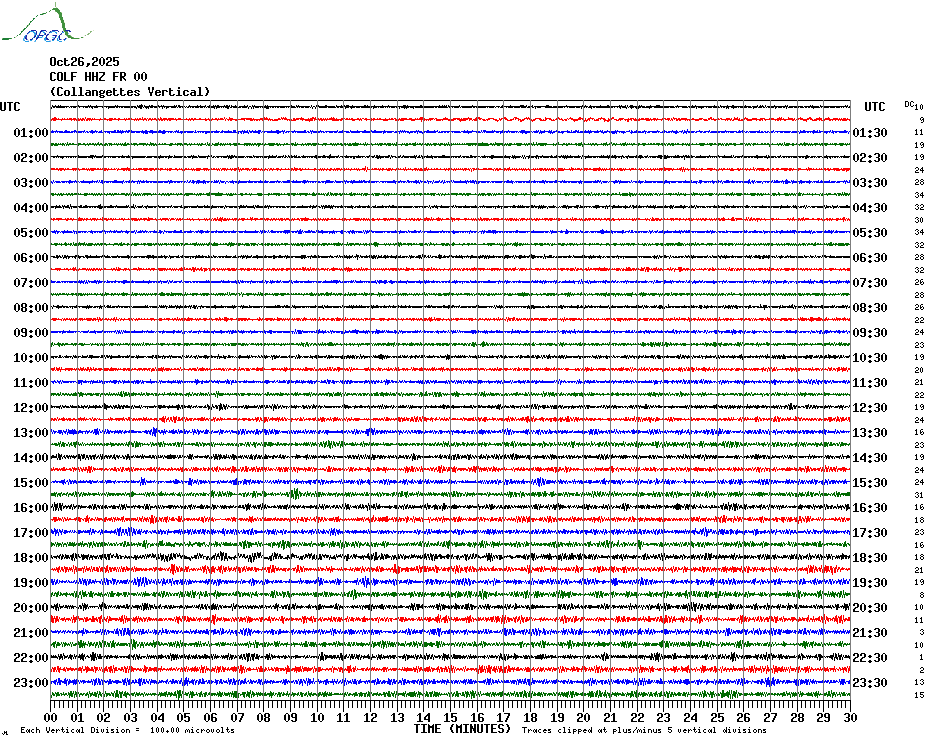 Sismogrammes du Réseau Sismologique Auvergne par fenêtre de 24h