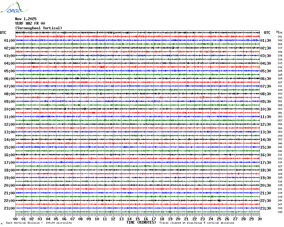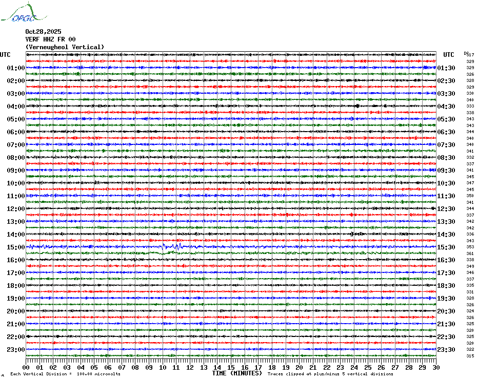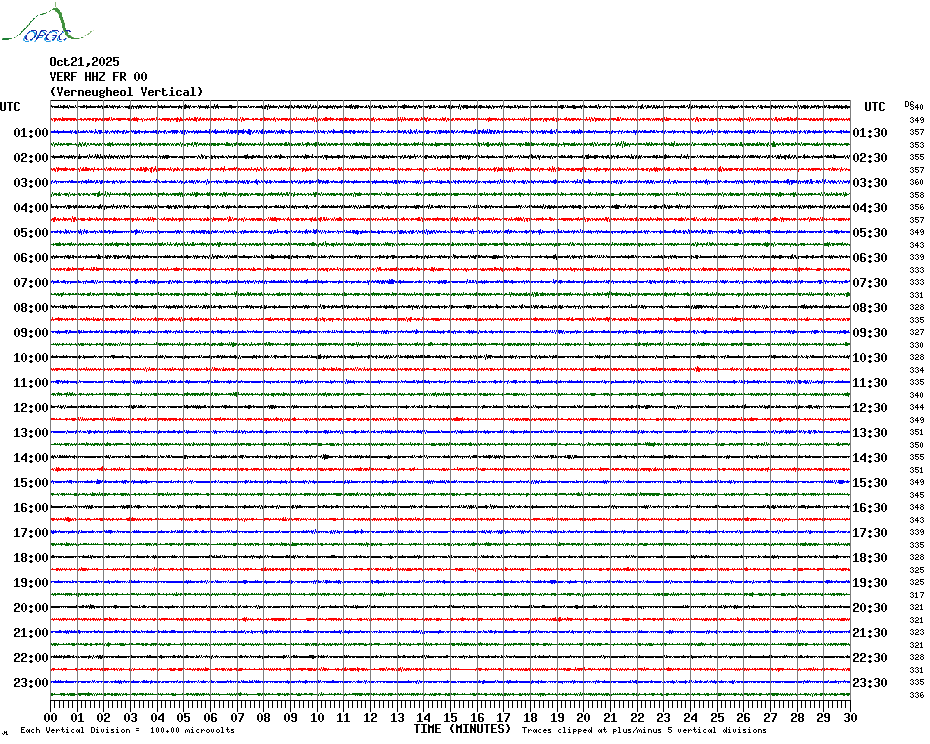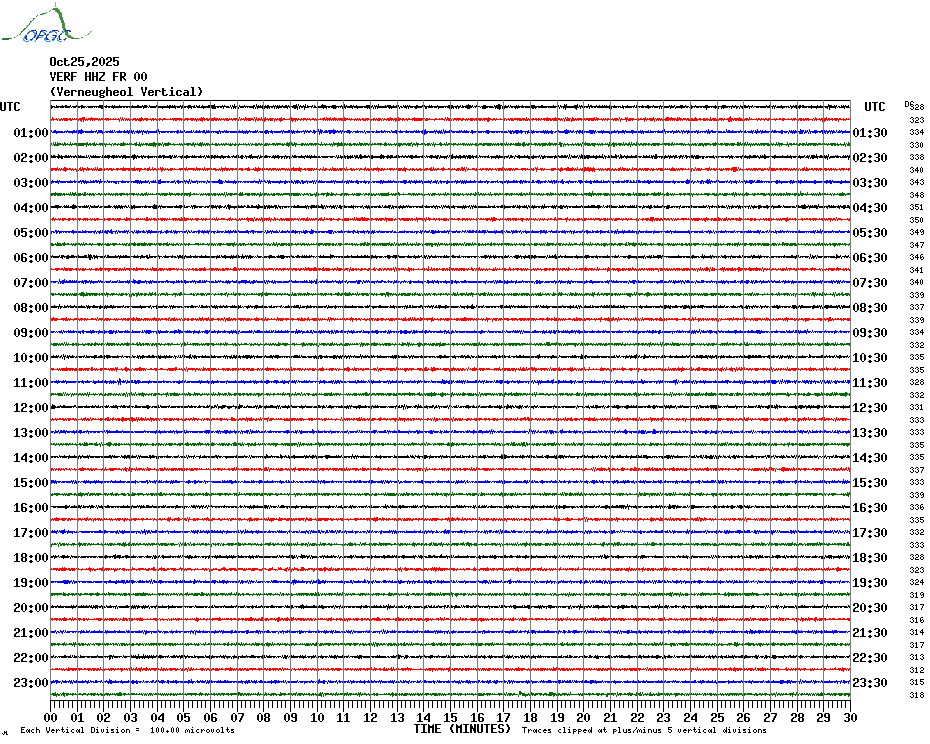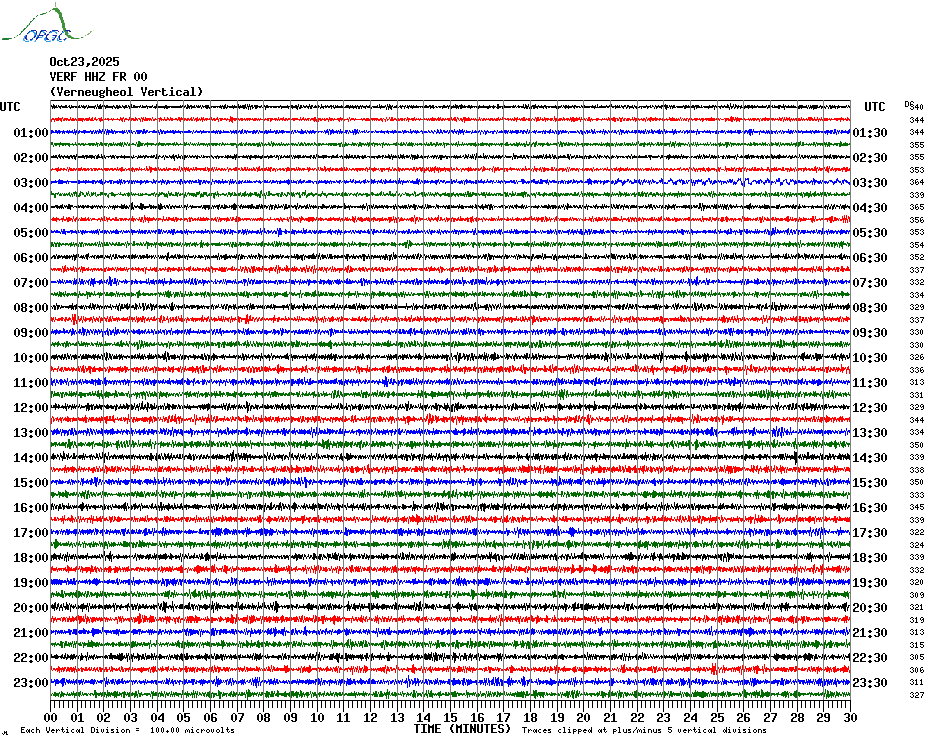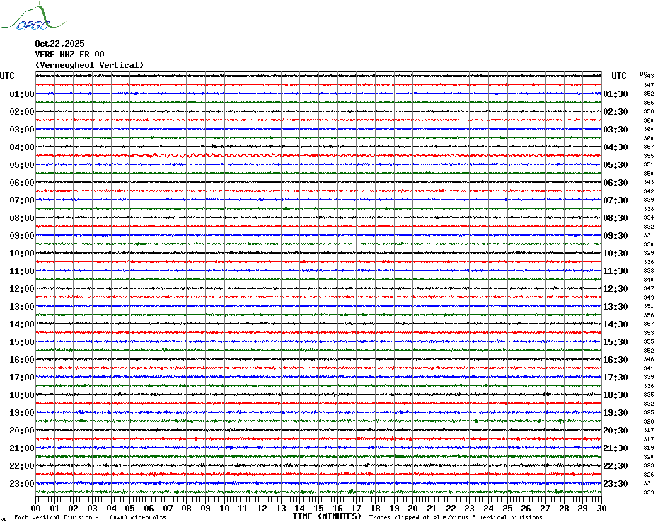 Sismogrammes du Réseau Sismologique Auvergne par fenêtre de 24h