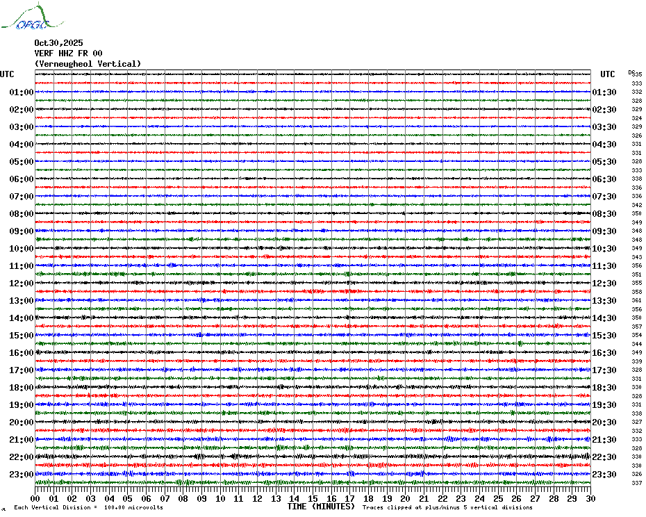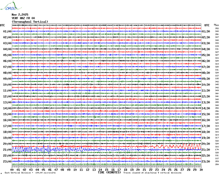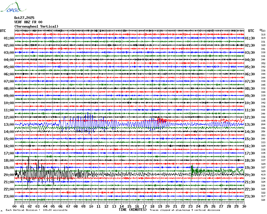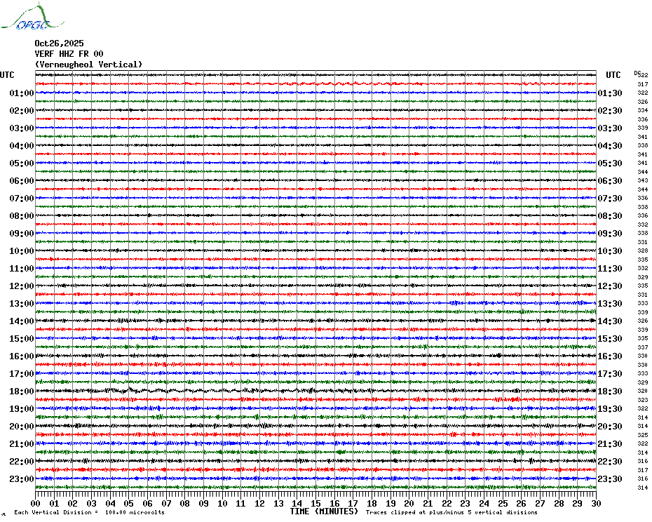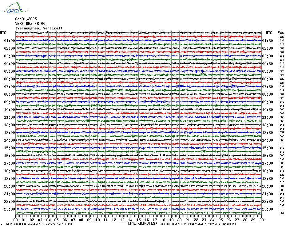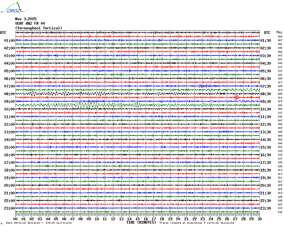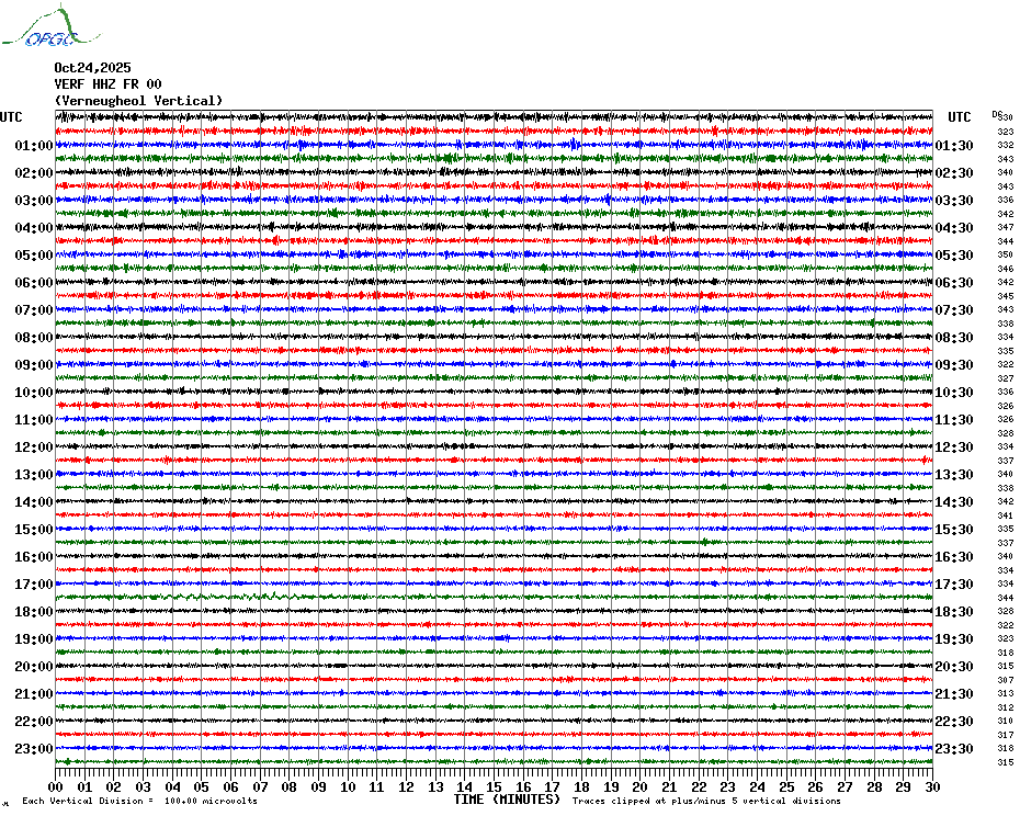 Sismogrammes du Réseau Sismologique Auvergne par fenêtre de 24h