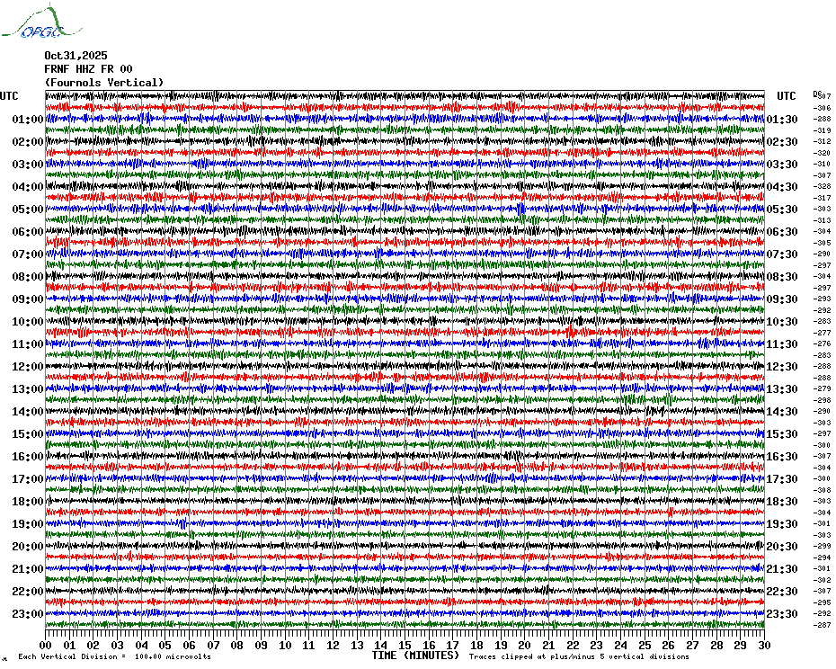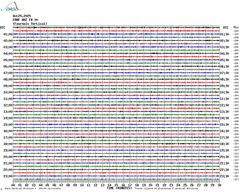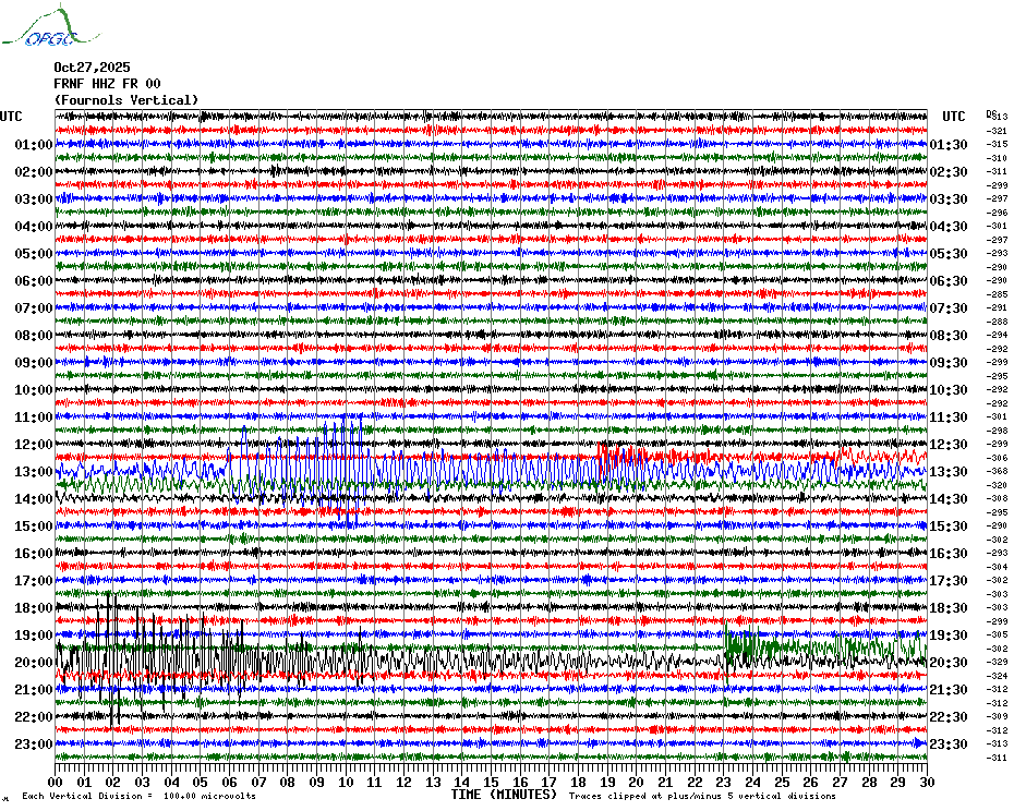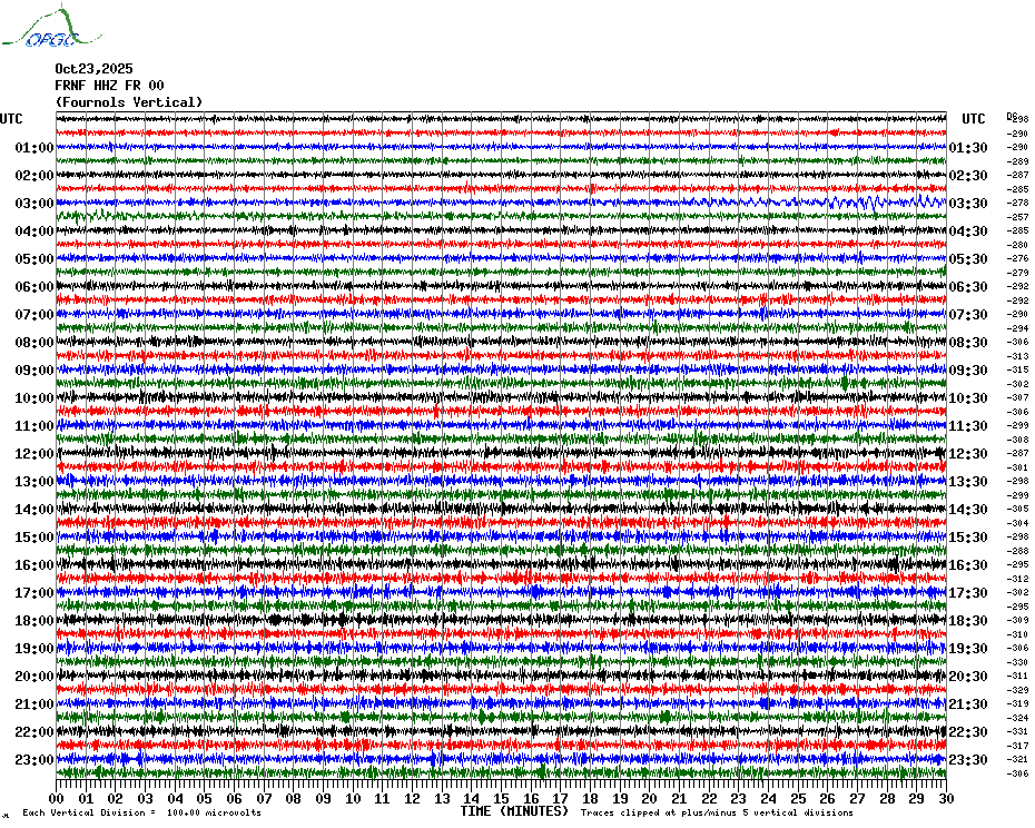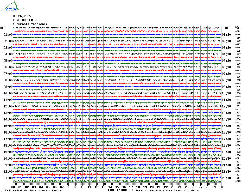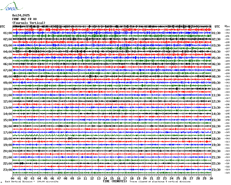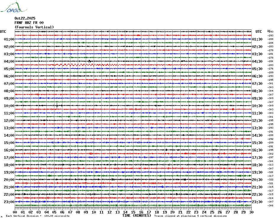 Sismogrammes du Réseau Sismologique Auvergne par fenêtre de 24h