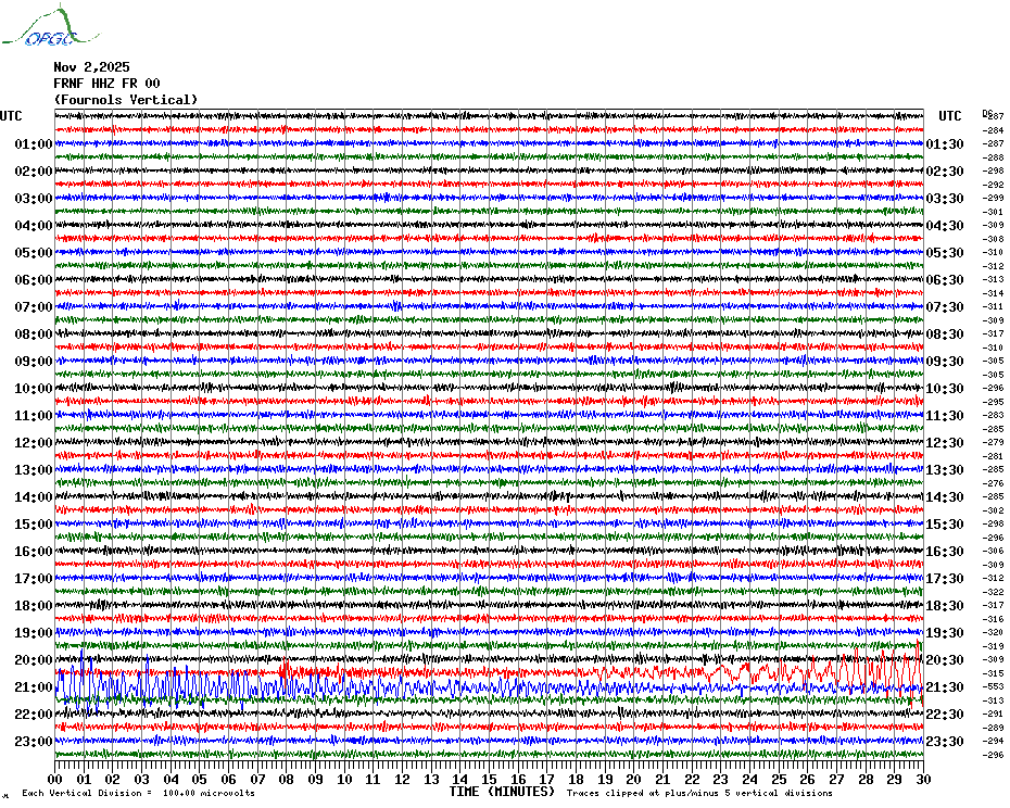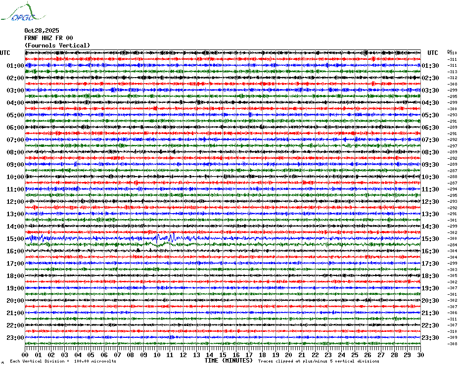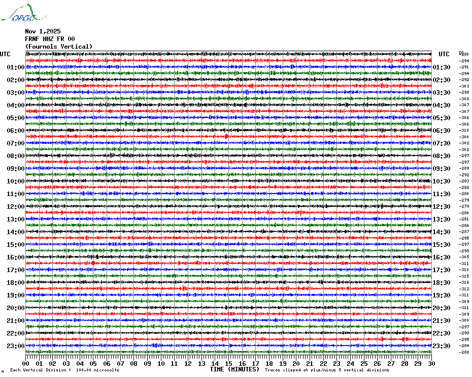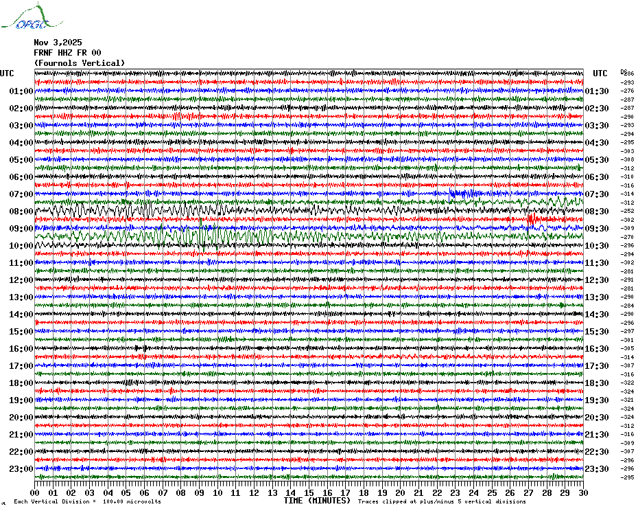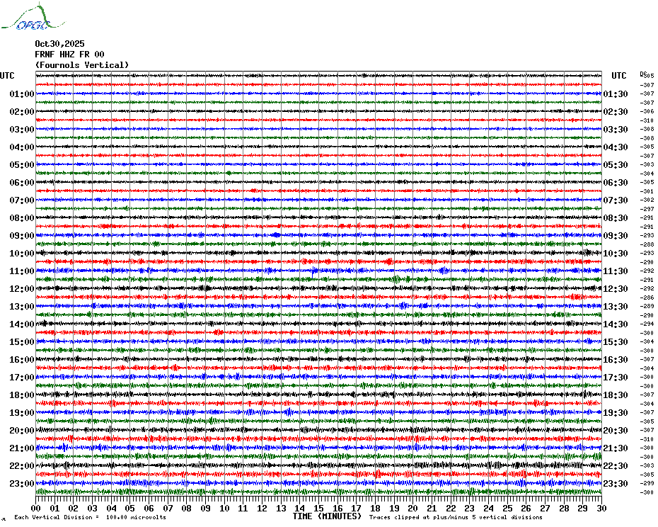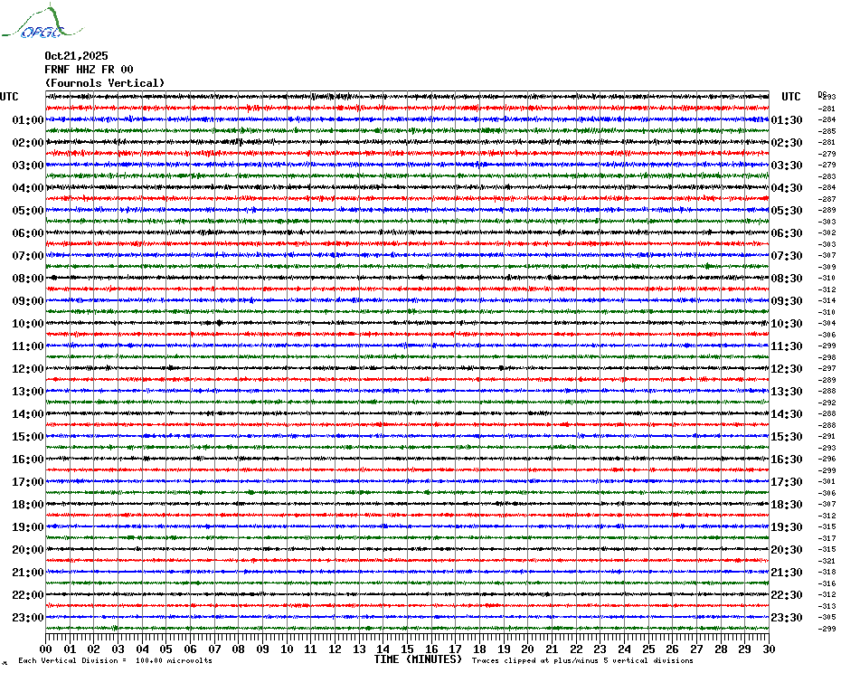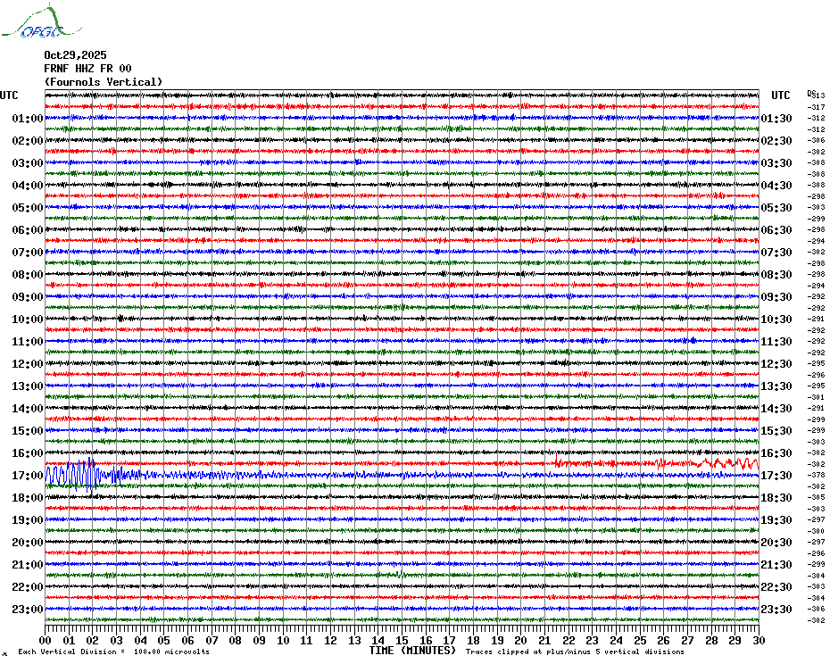 Sismogrammes du Réseau Sismologique Auvergne par fenêtre de 24h
