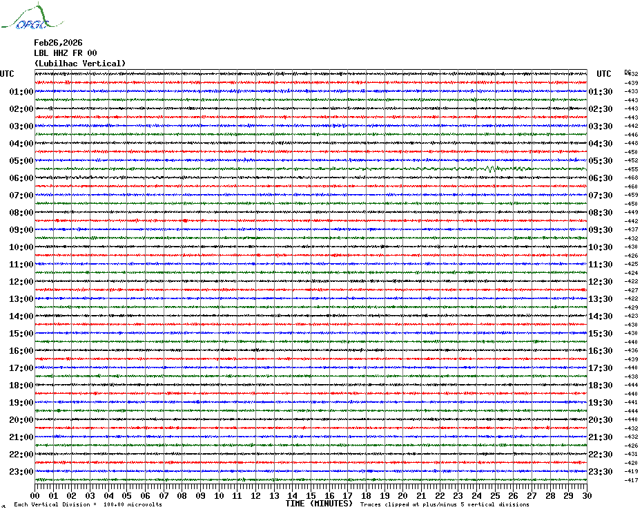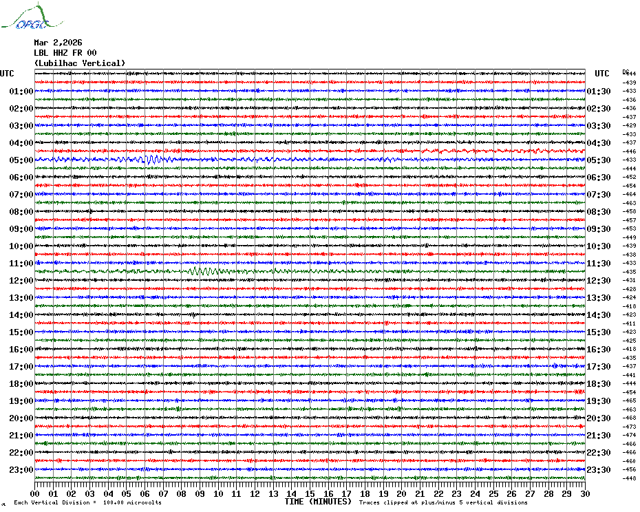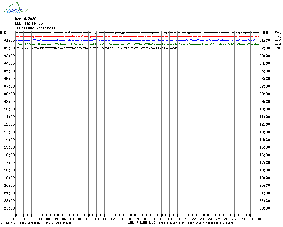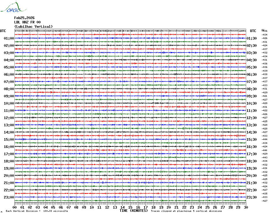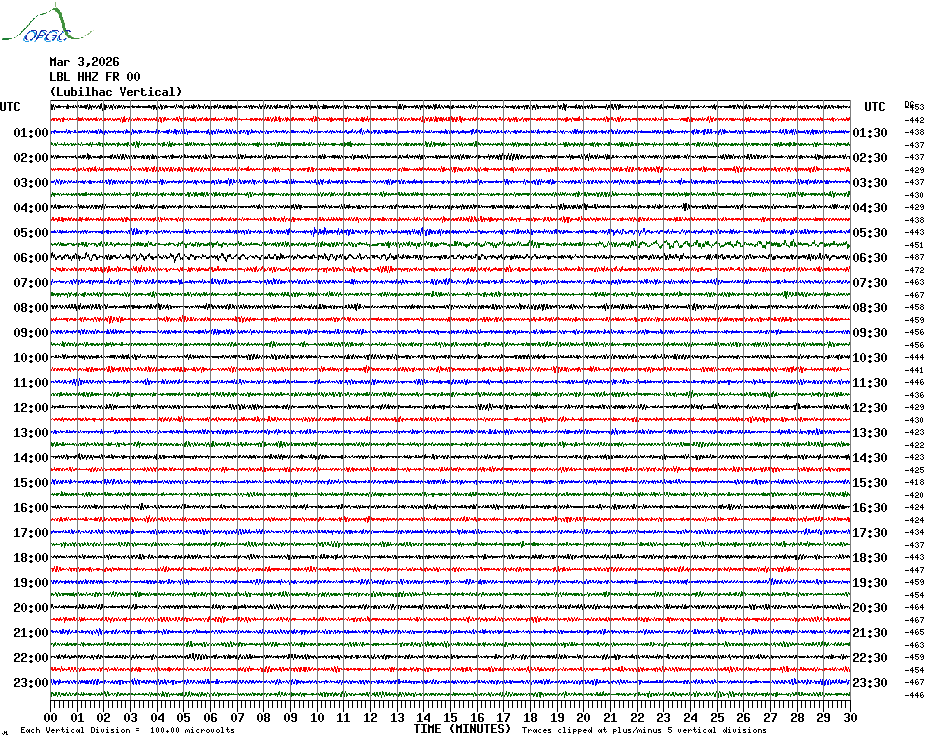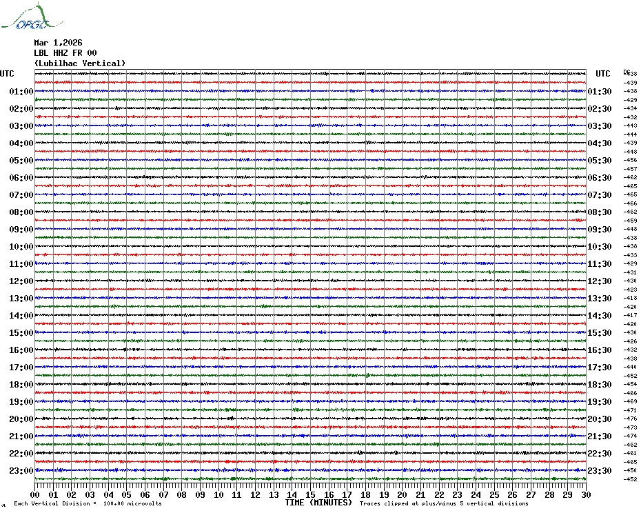 Sismogrammes du Réseau Sismologique Auvergne par fenêtre de 24h