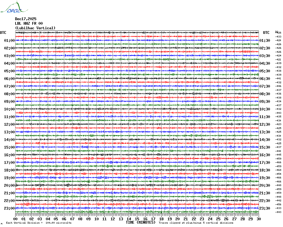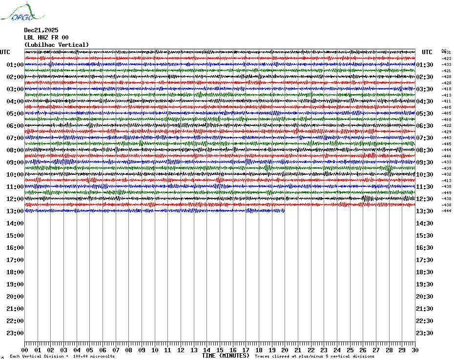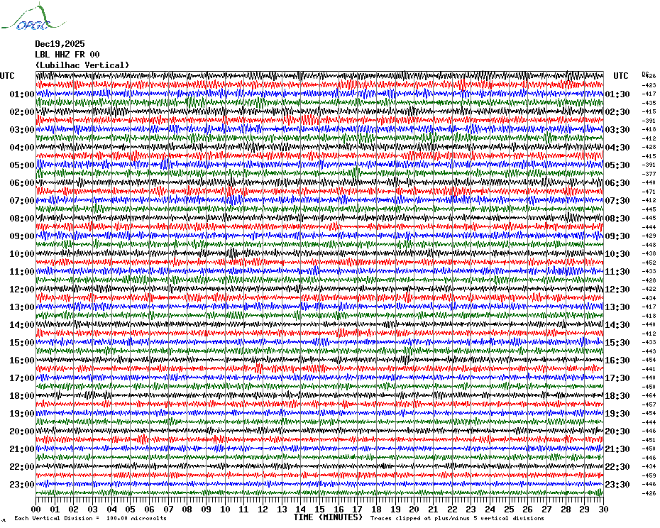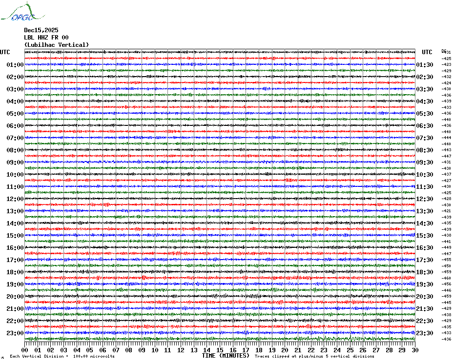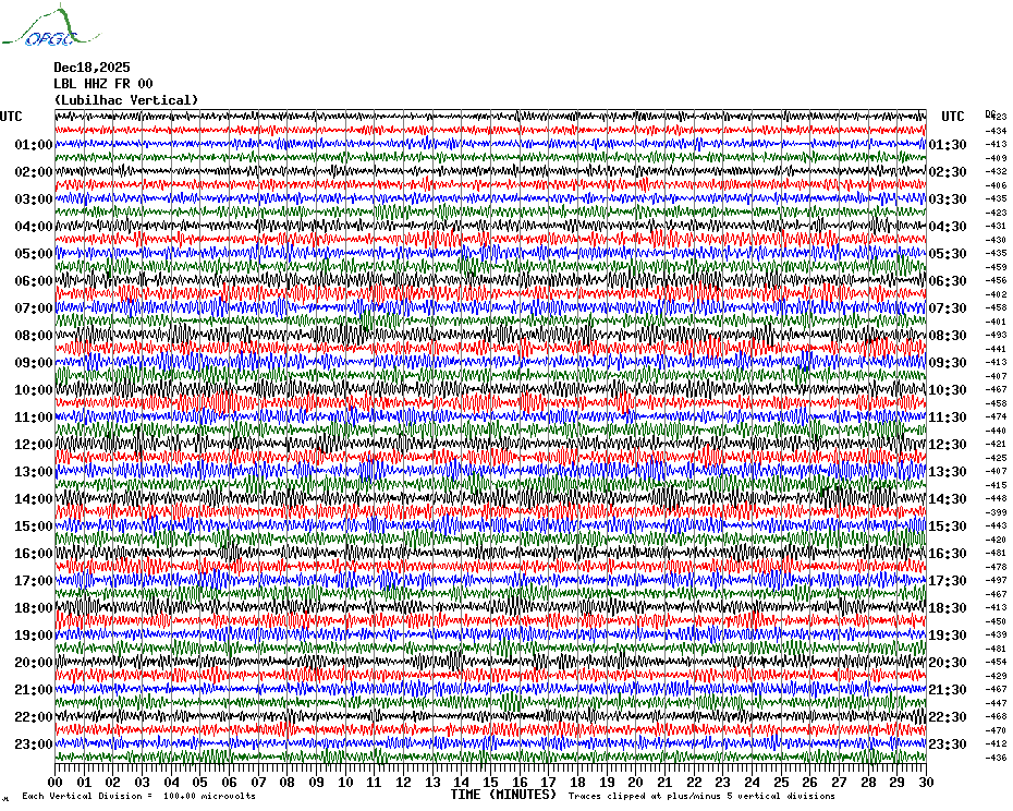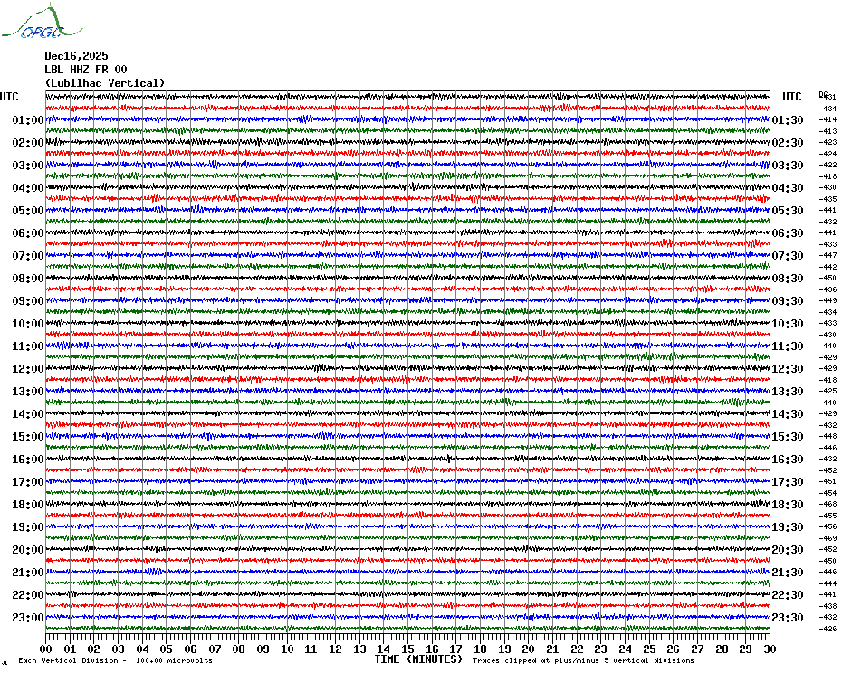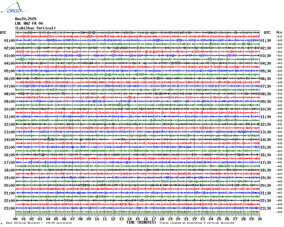 Sismogrammes du Réseau Sismologique Auvergne par fenêtre de 24h