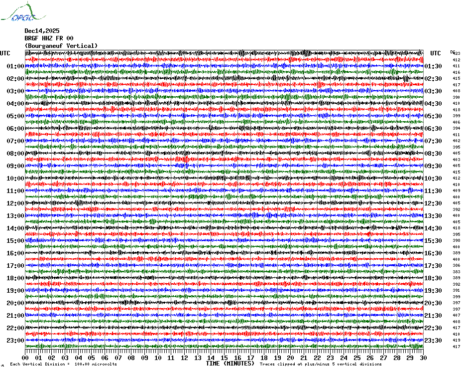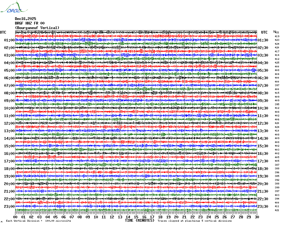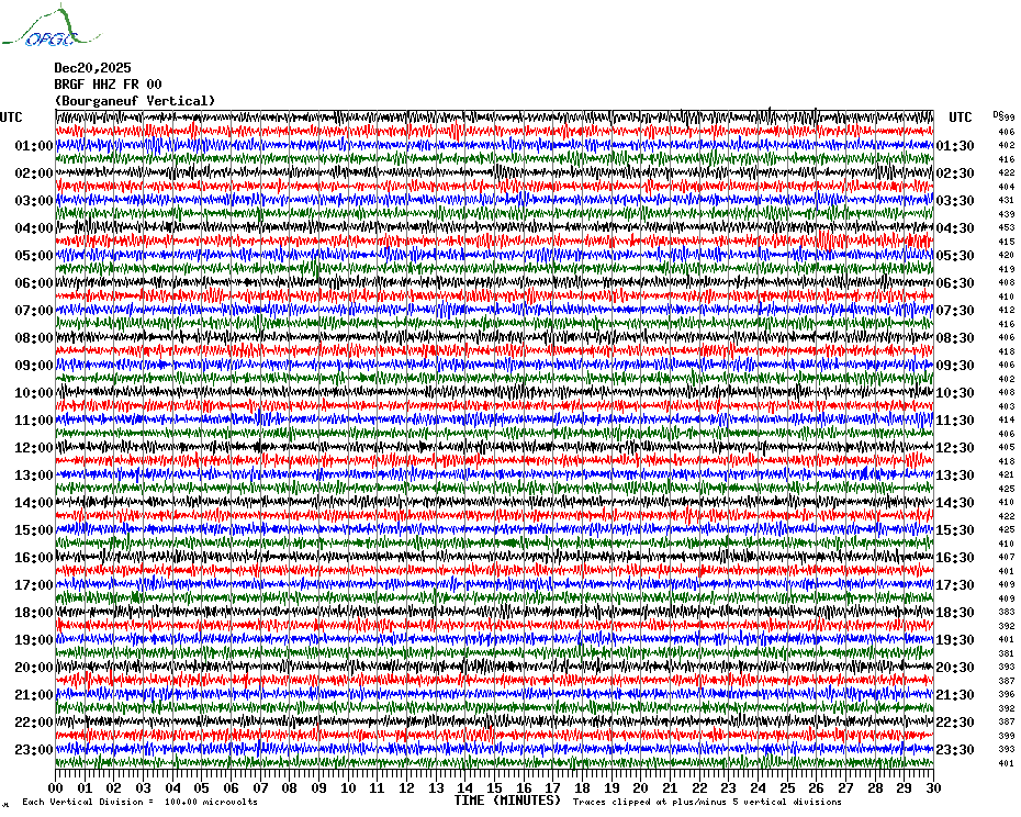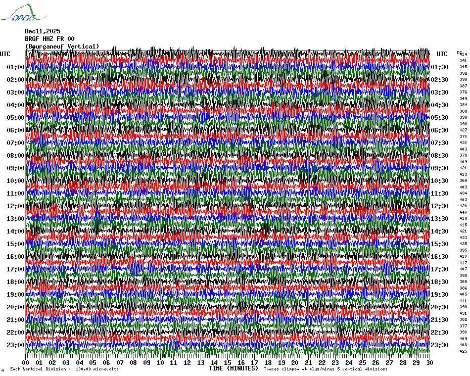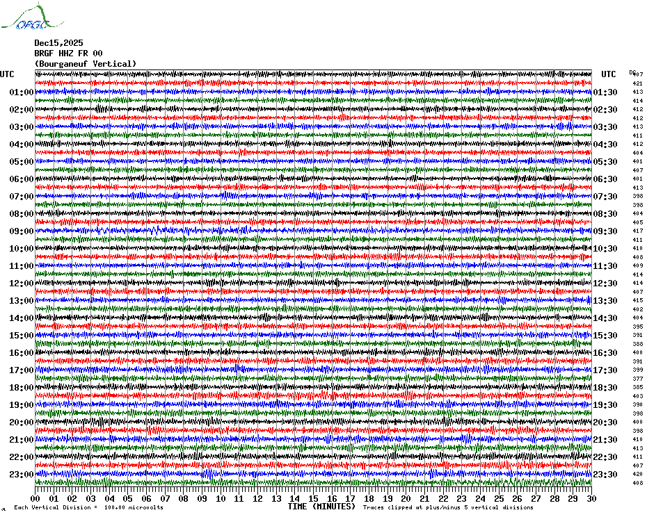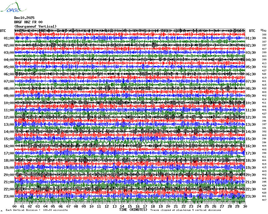 Sismogrammes du Réseau Sismologique Auvergne par fenêtre de 24h
