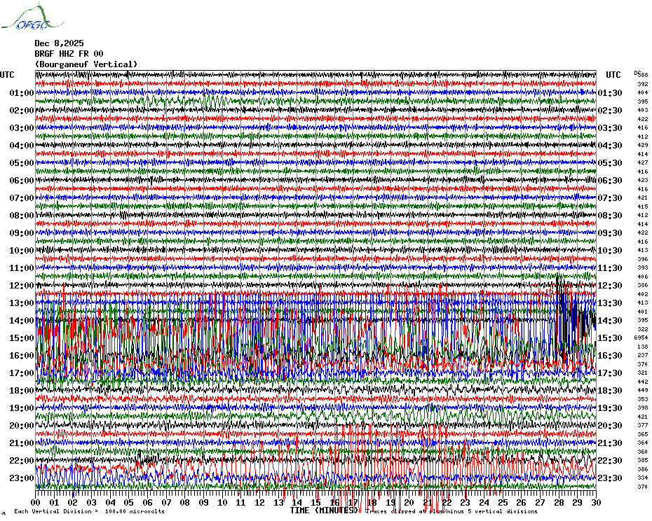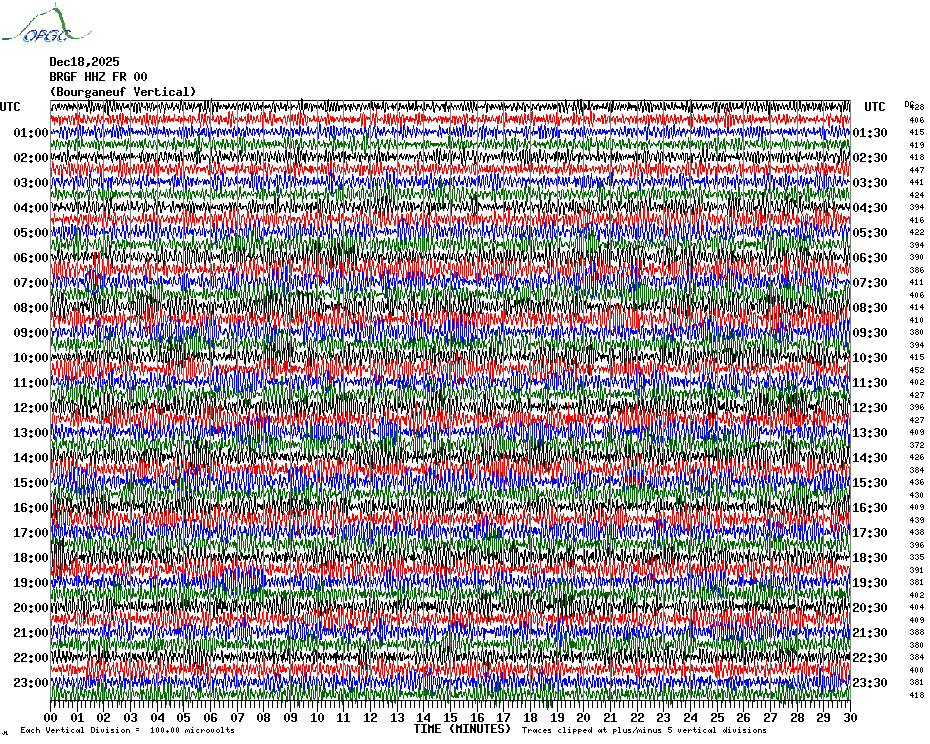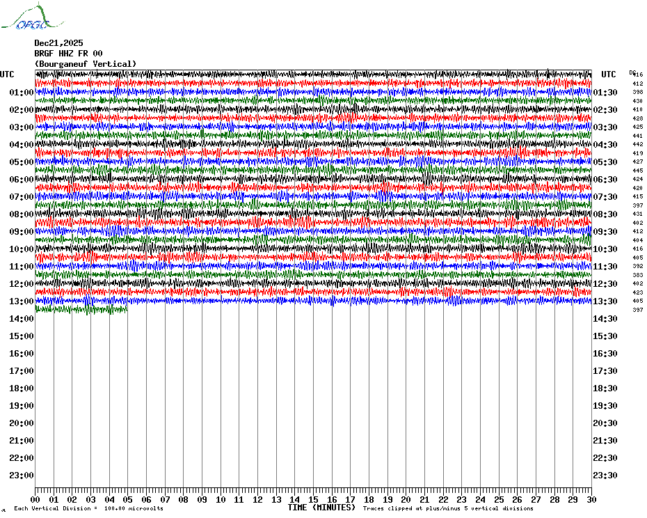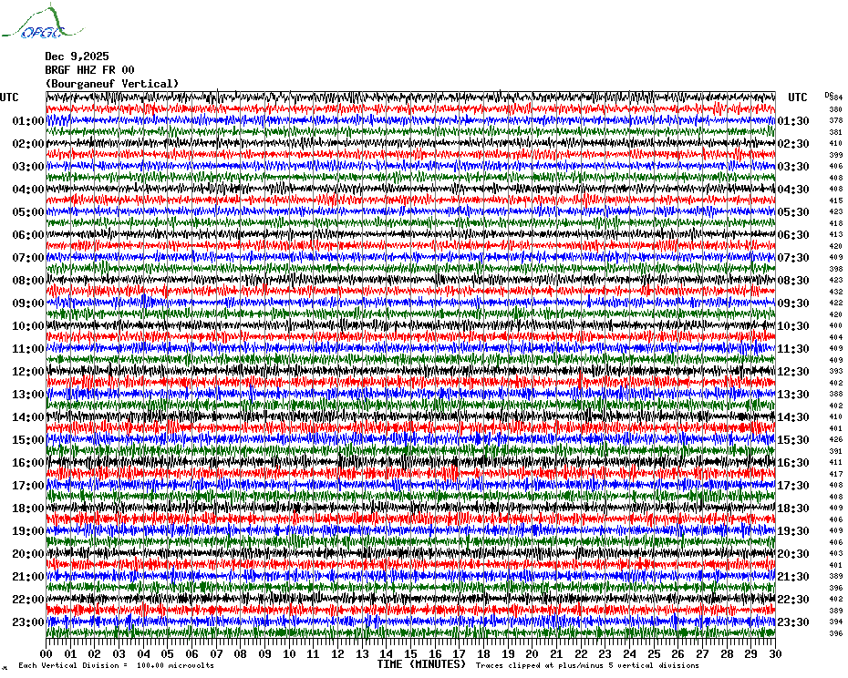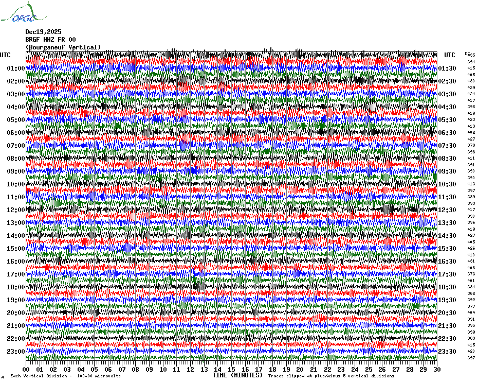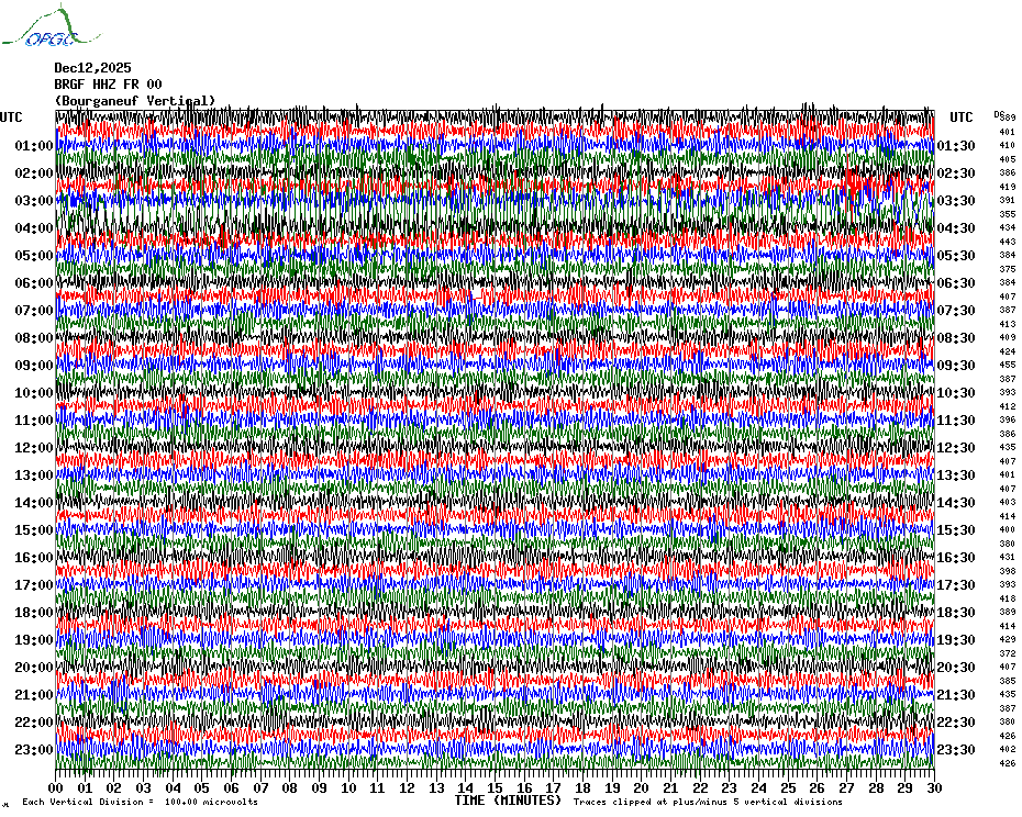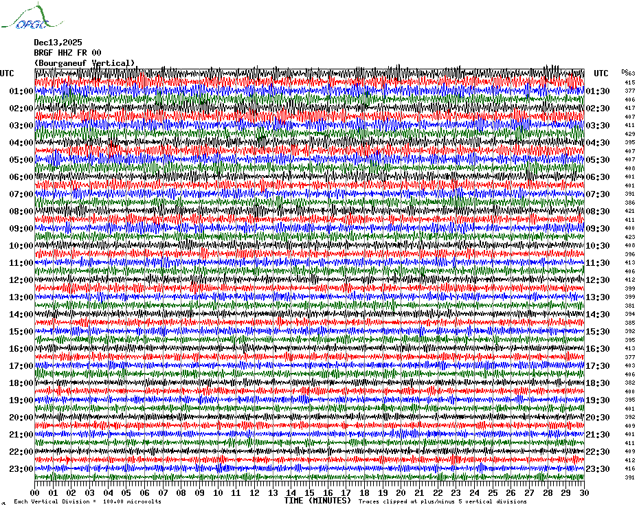 Sismogrammes du Réseau Sismologique Auvergne par fenêtre de 24h