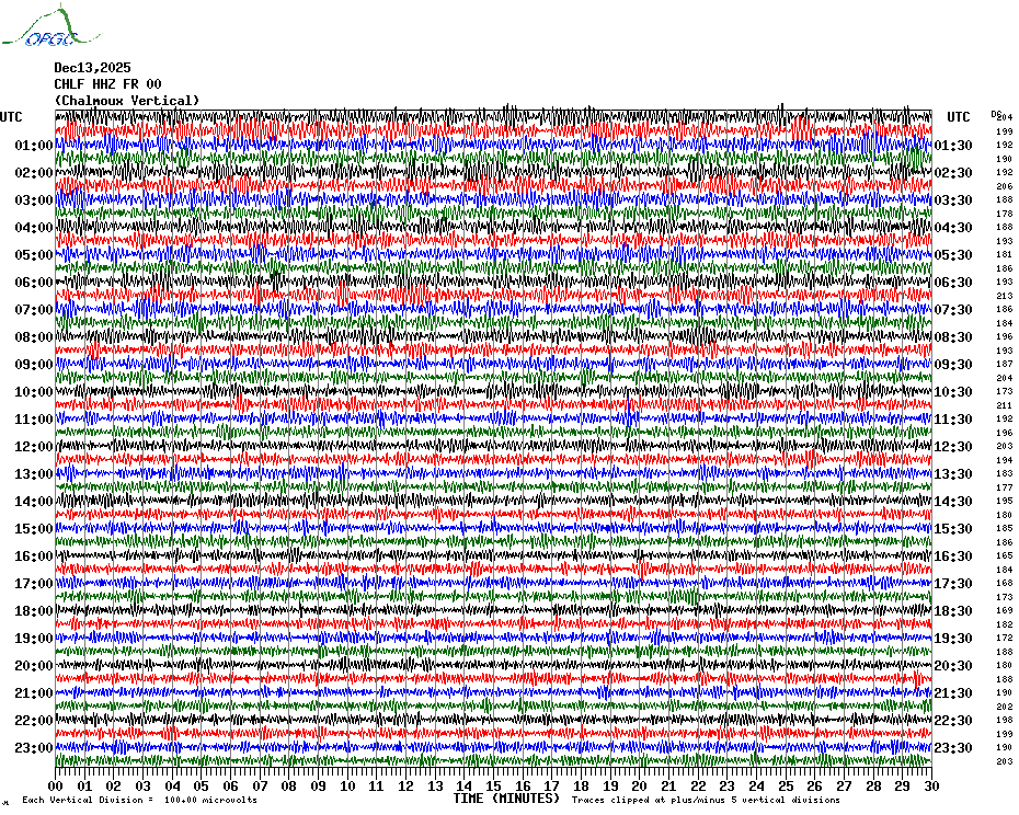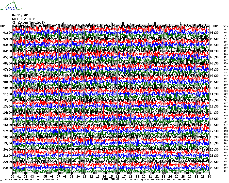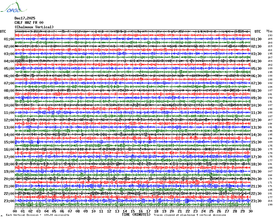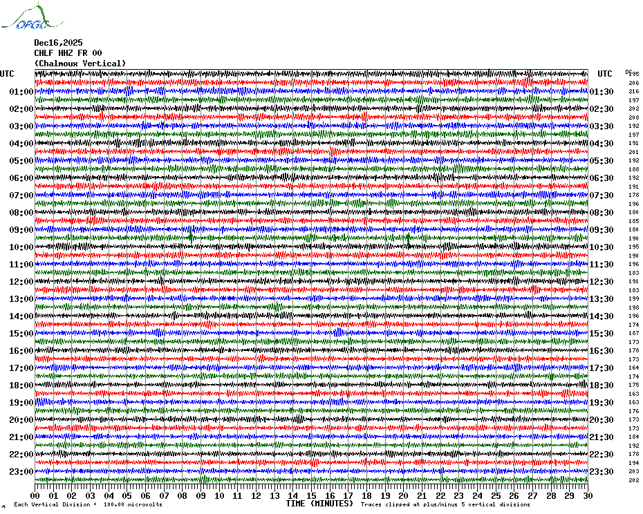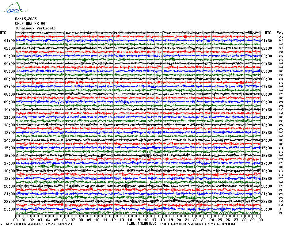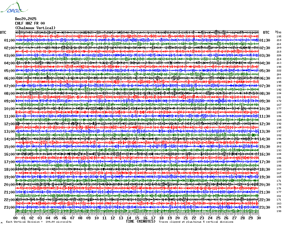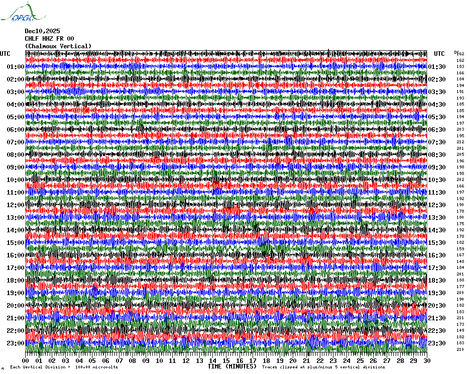 Sismogrammes du Réseau Sismologique Auvergne par fenêtre de 24h