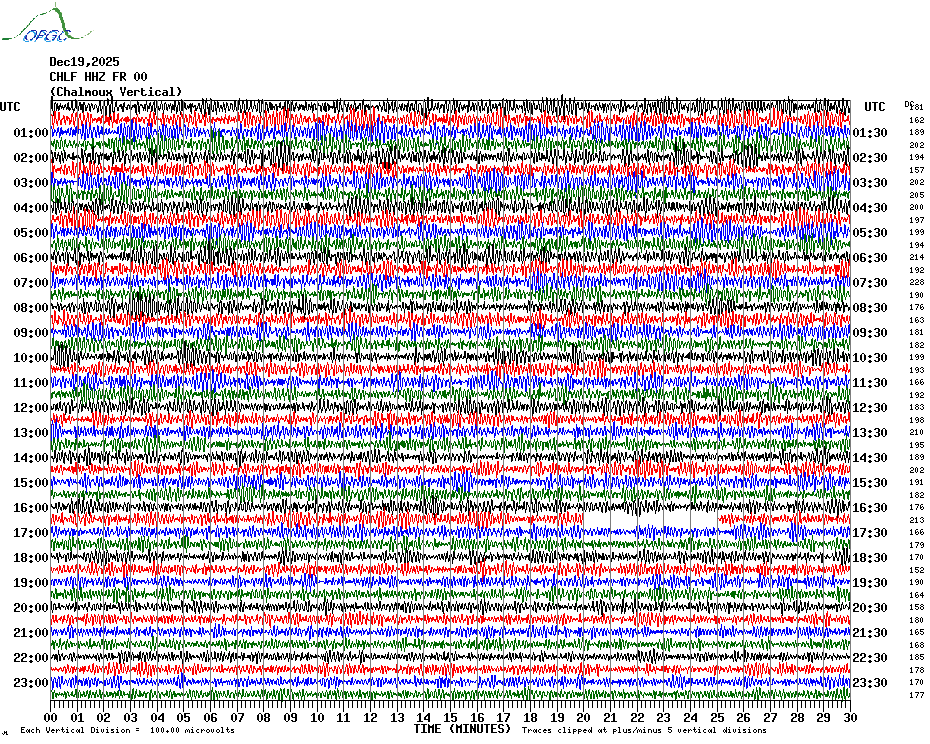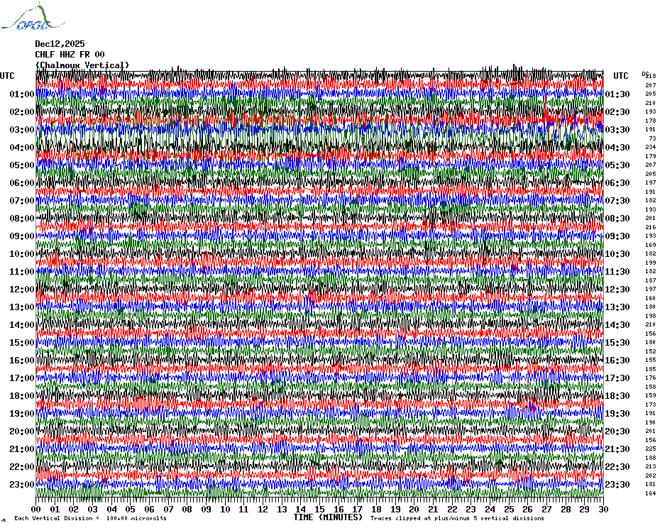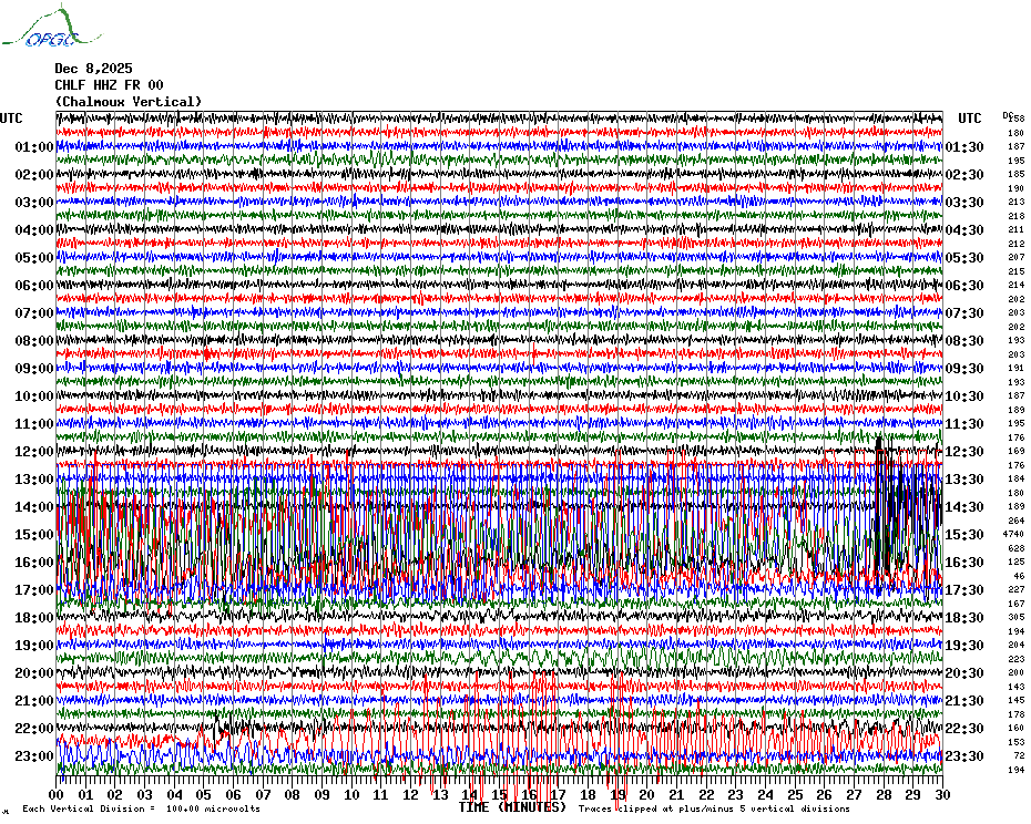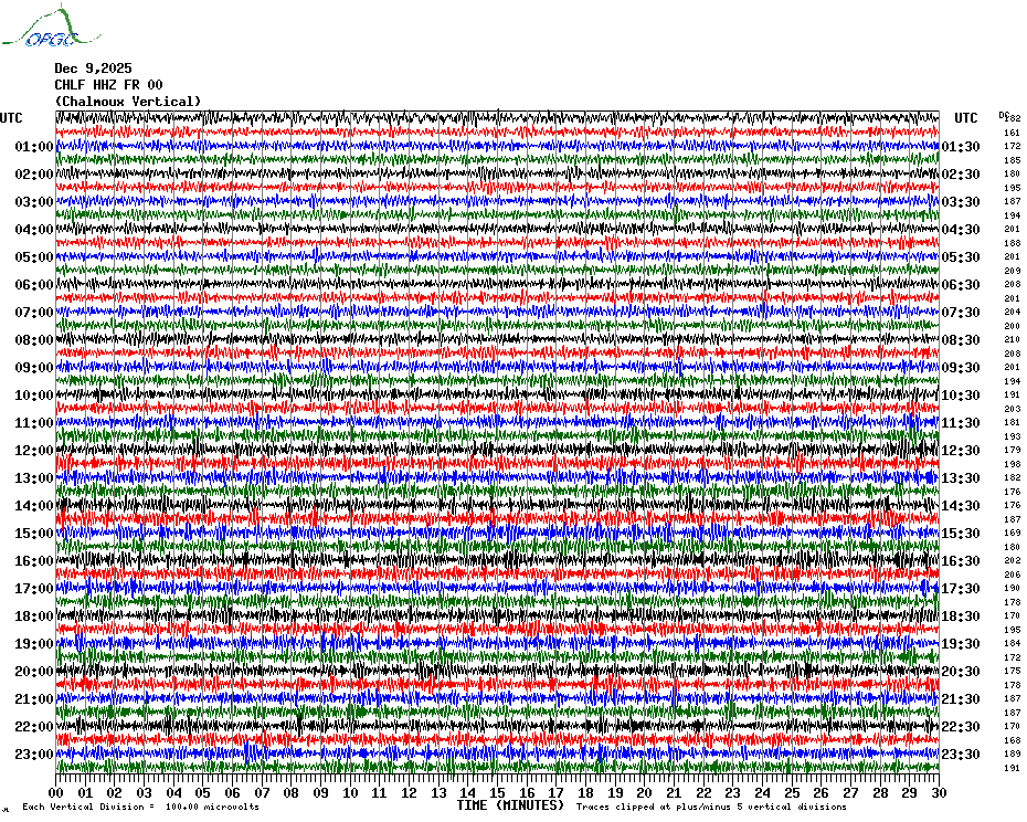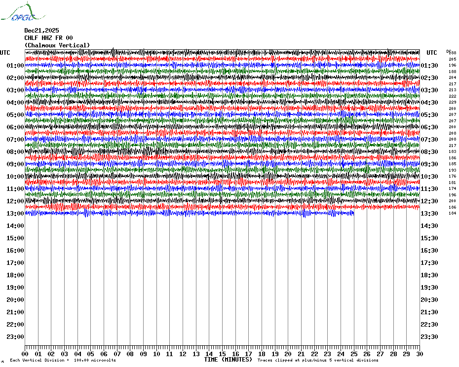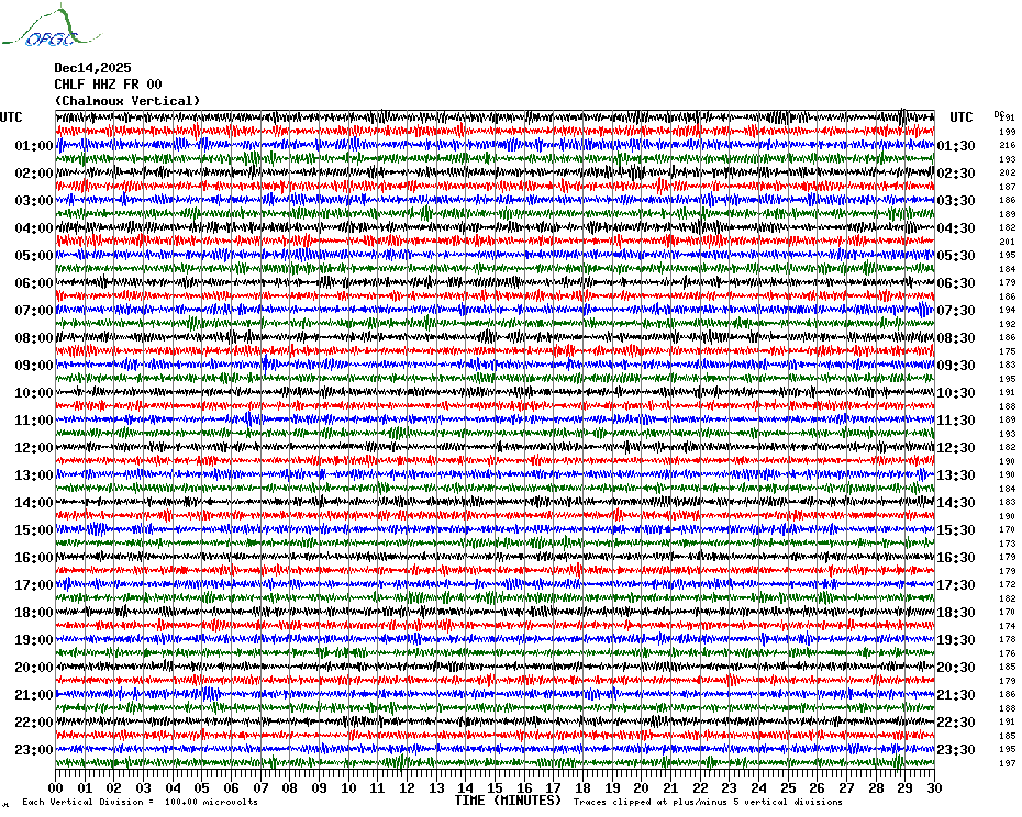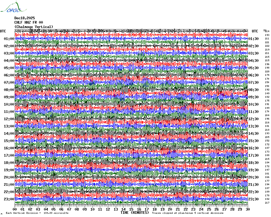 Sismogrammes du Réseau Sismologique Auvergne par fenêtre de 24h