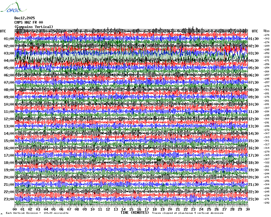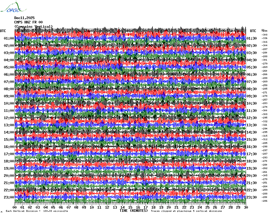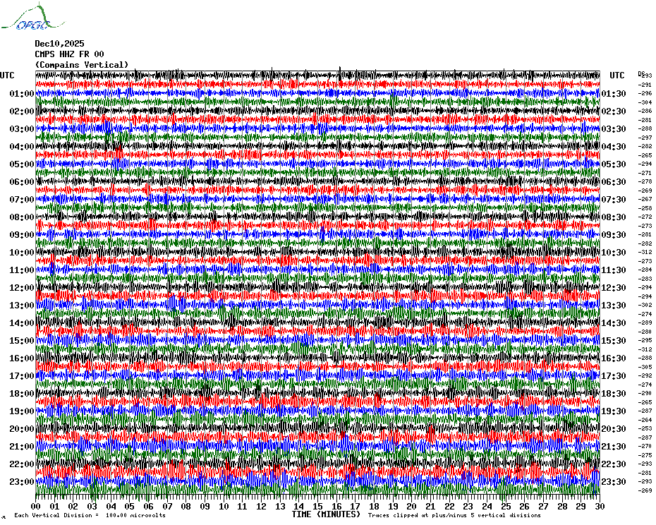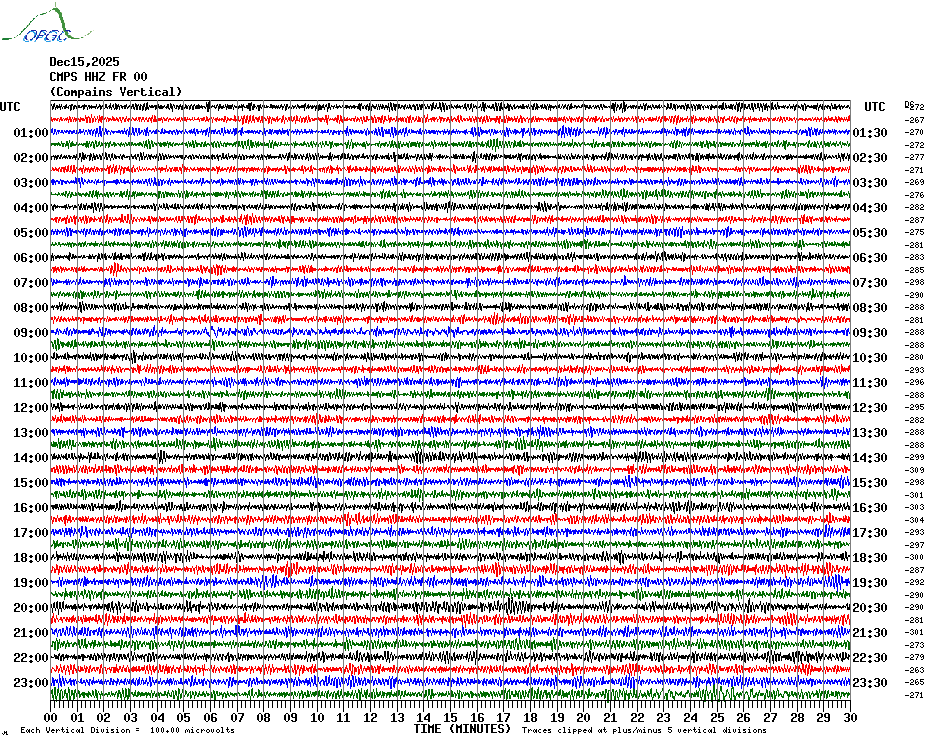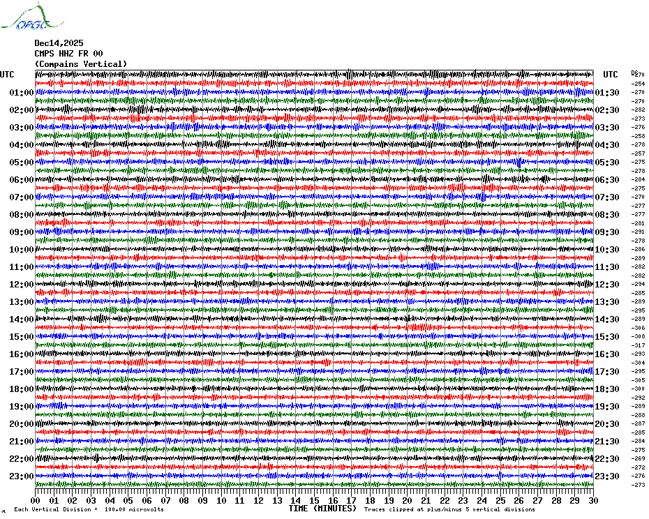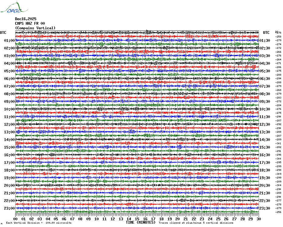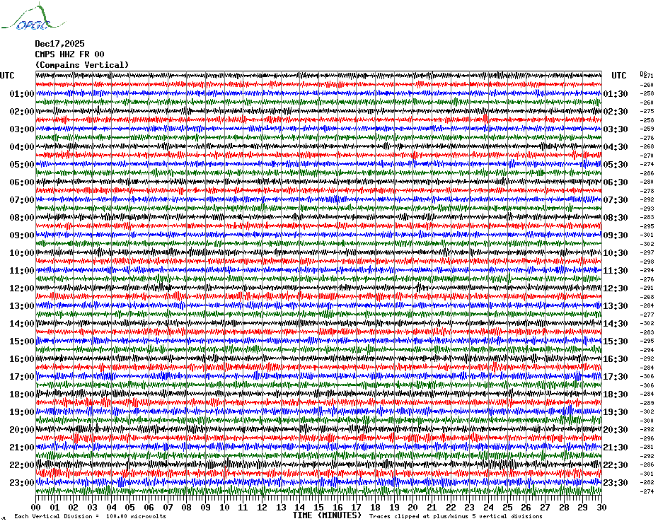Sismogrammes du Réseau Sismologique Auvergne par fenêtre de 24h