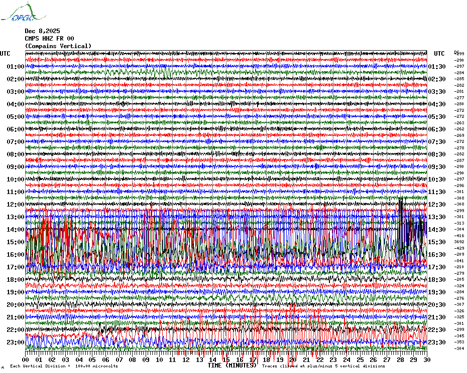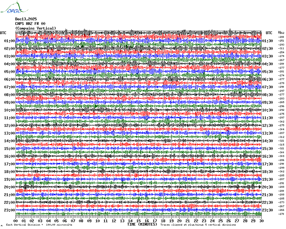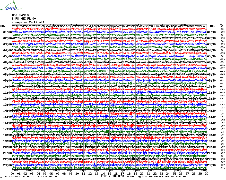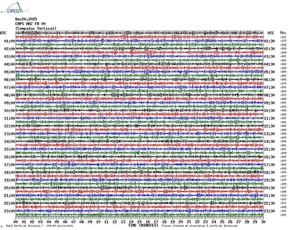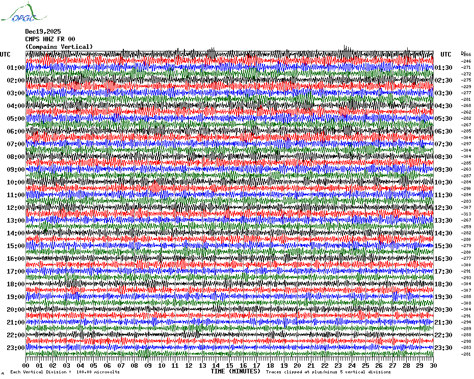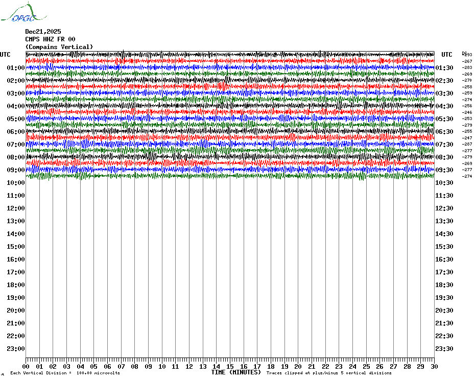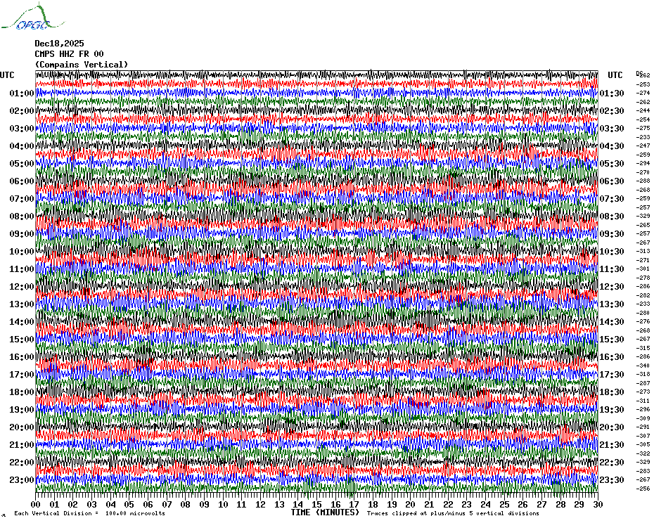 Sismogrammes du Réseau Sismologique Auvergne par fenêtre de 24h