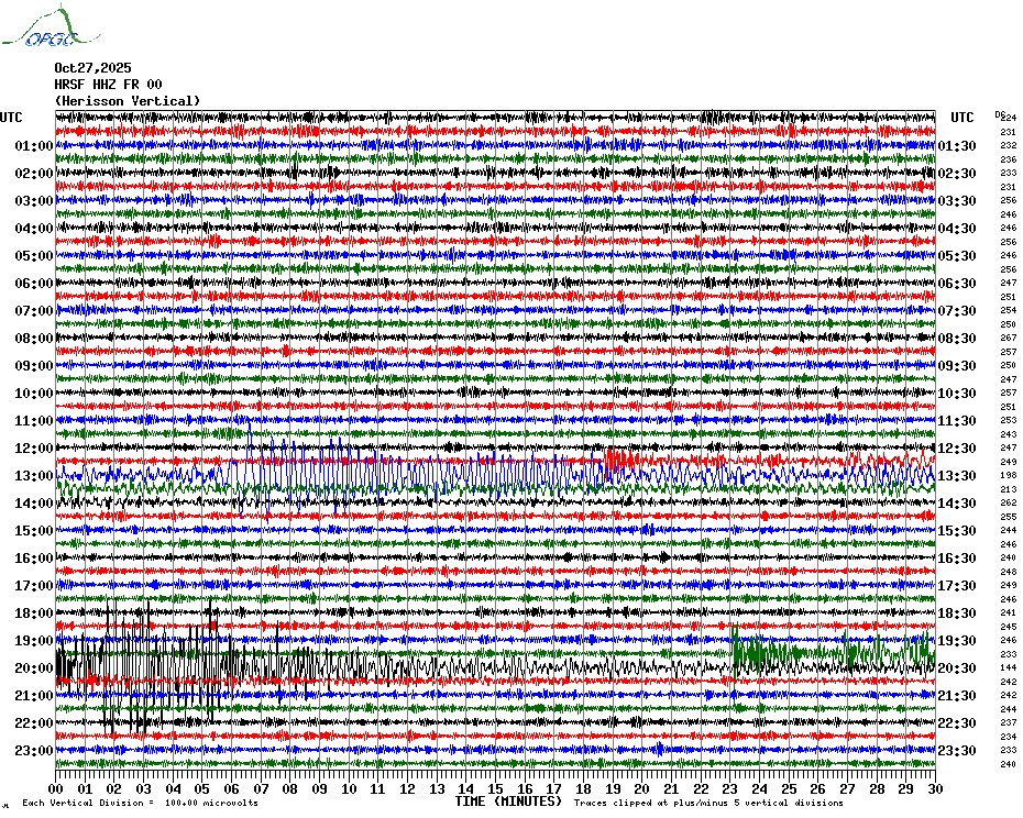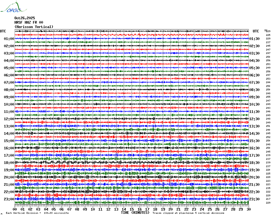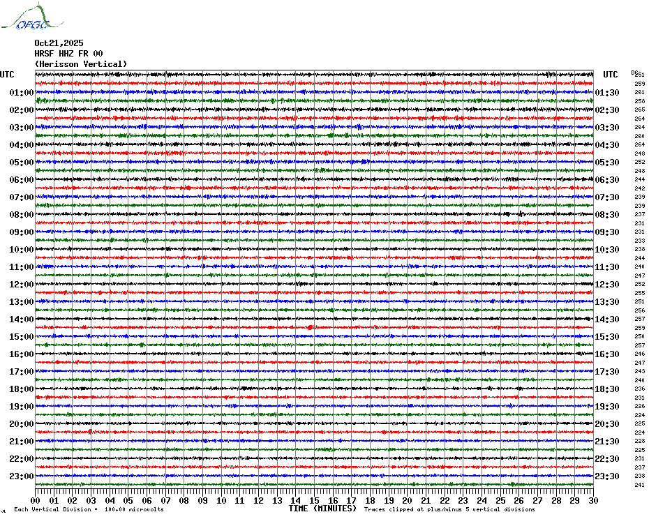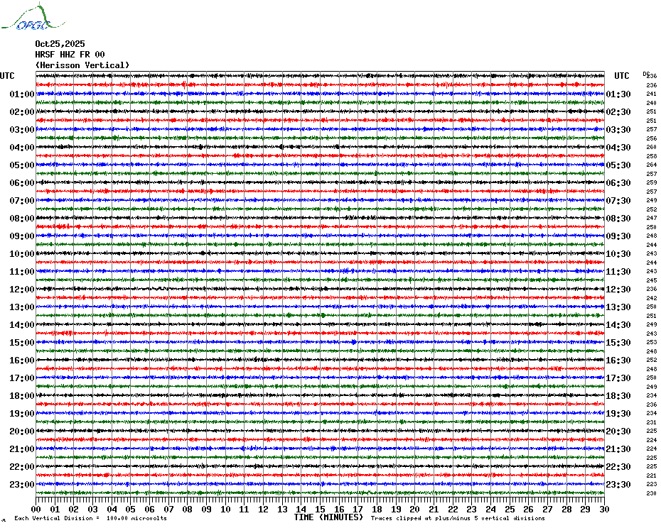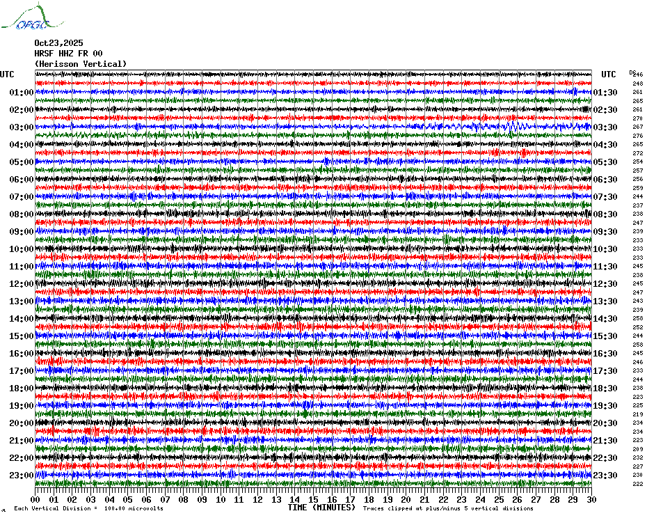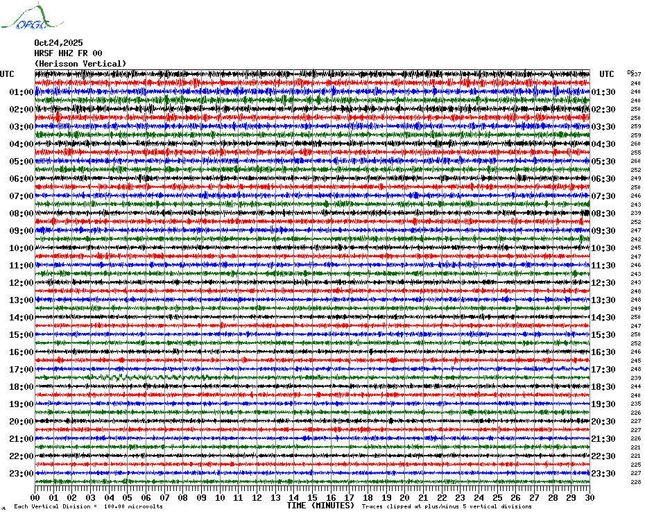 Sismogrammes du Réseau Sismologique Auvergne par fenêtre de 24h