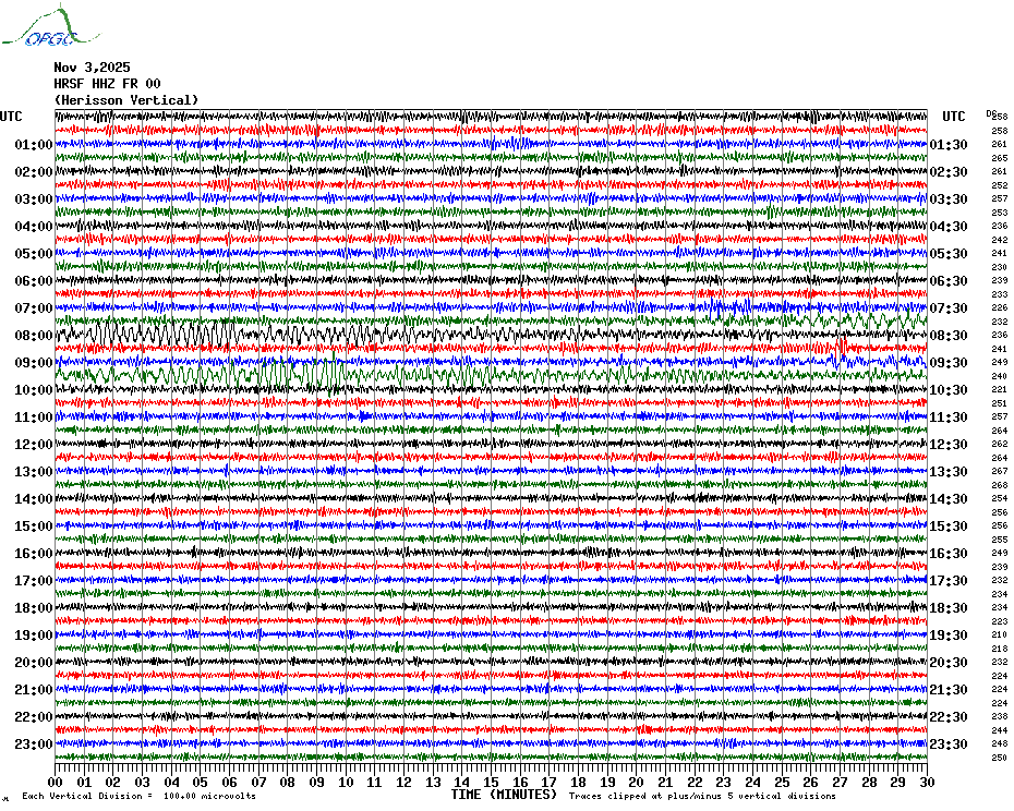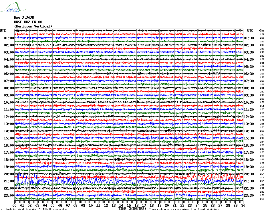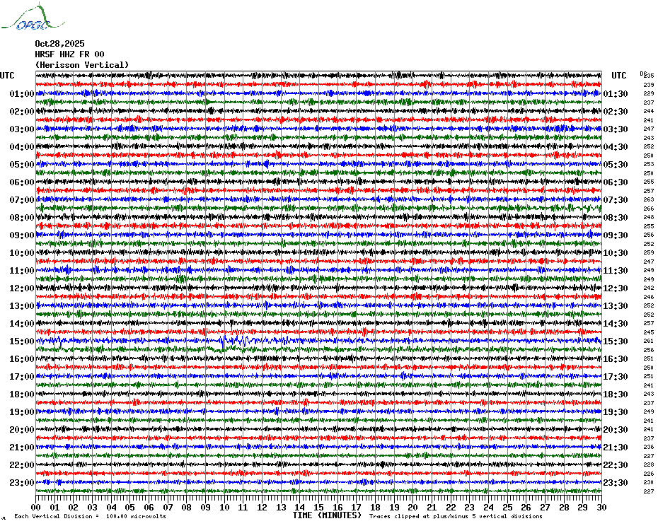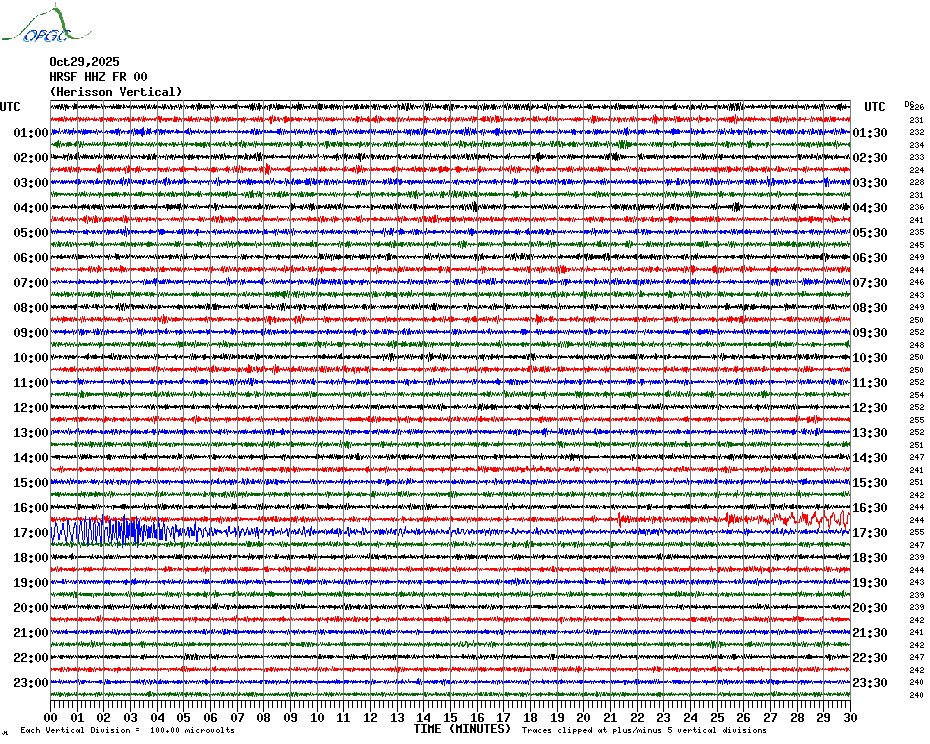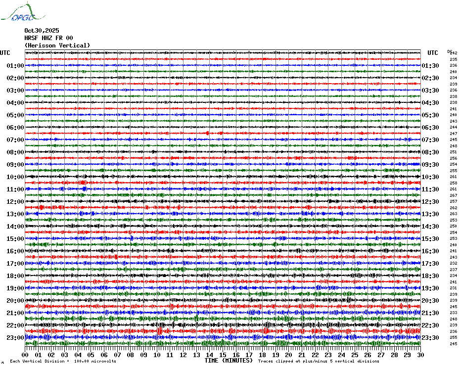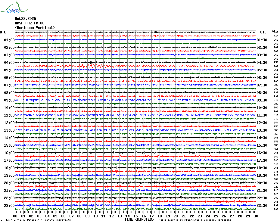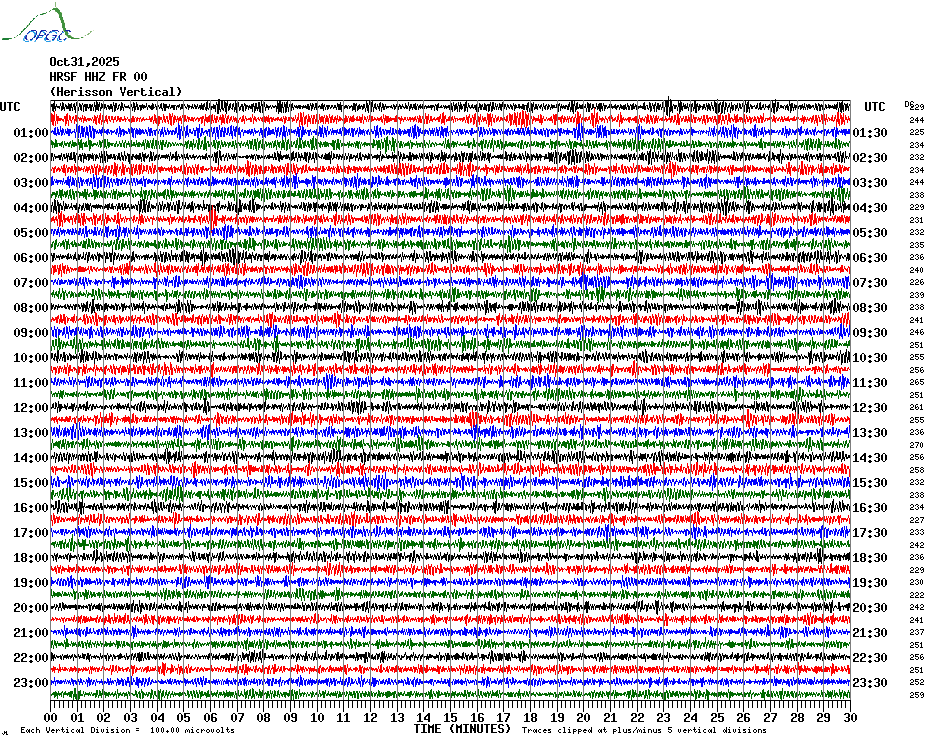 Sismogrammes du Réseau Sismologique Auvergne par fenêtre de 24h