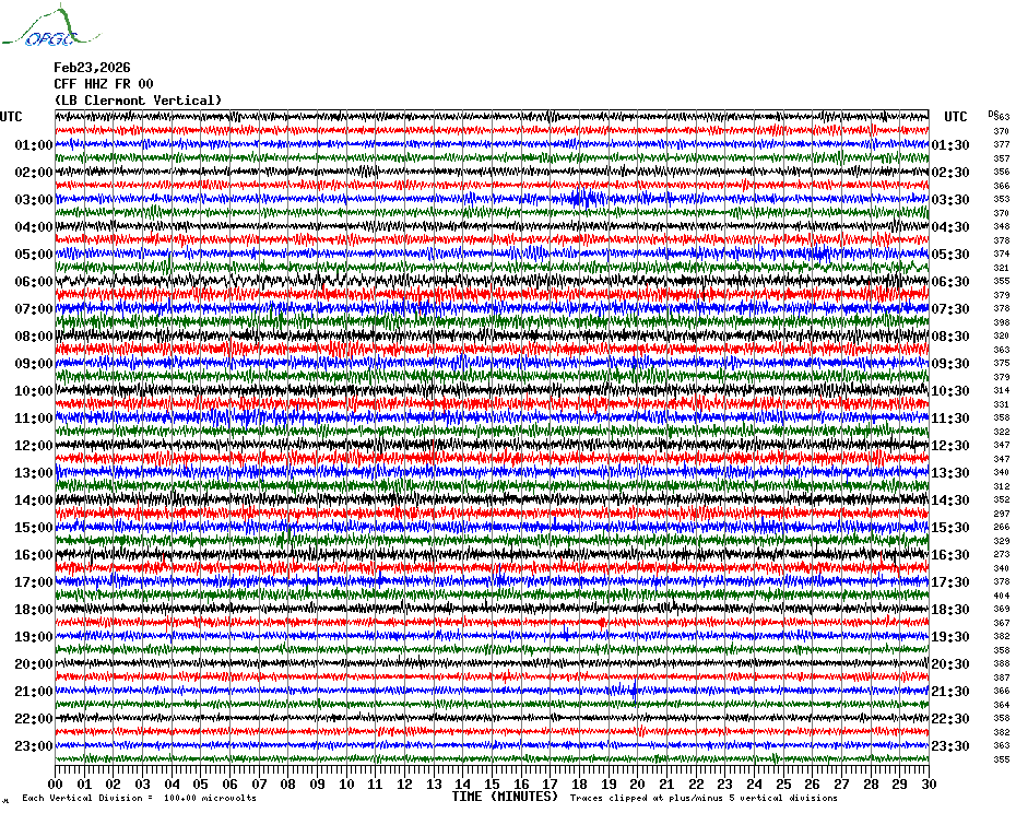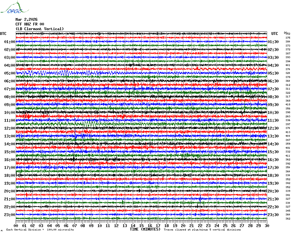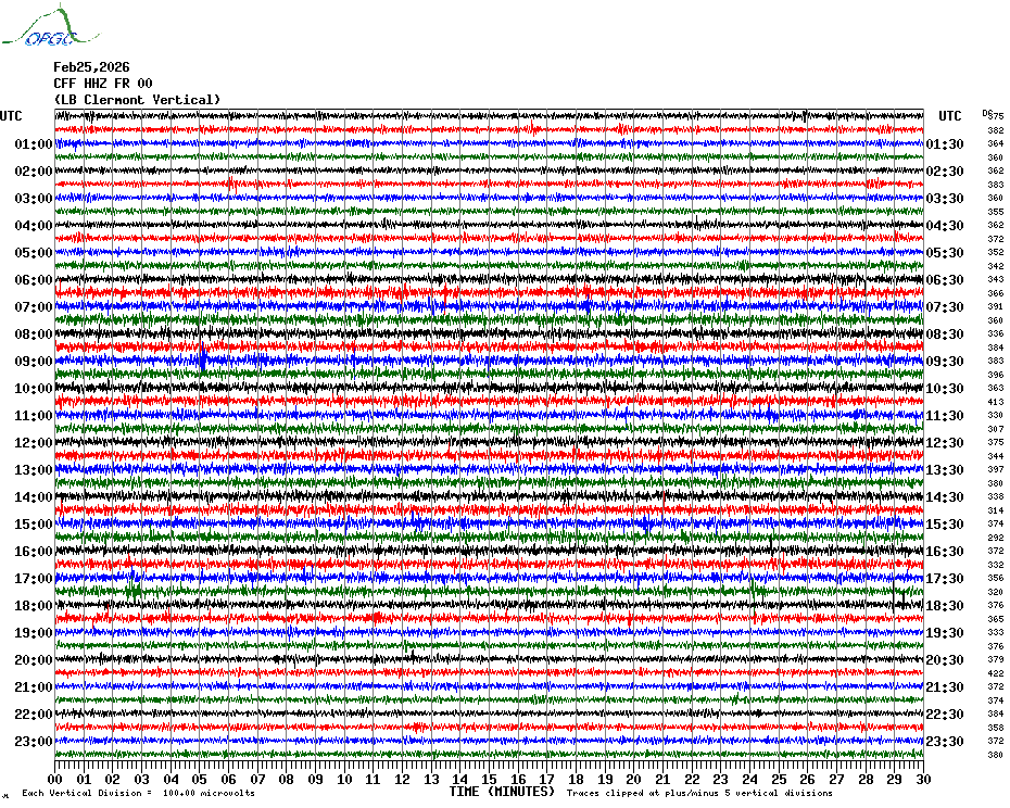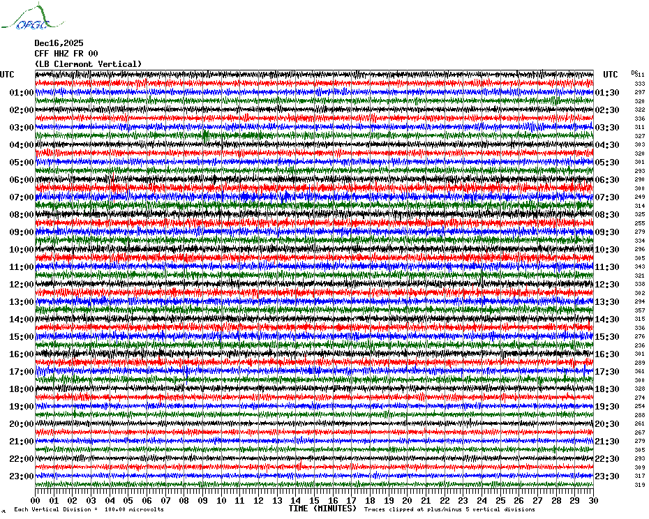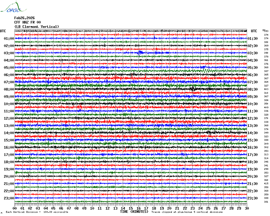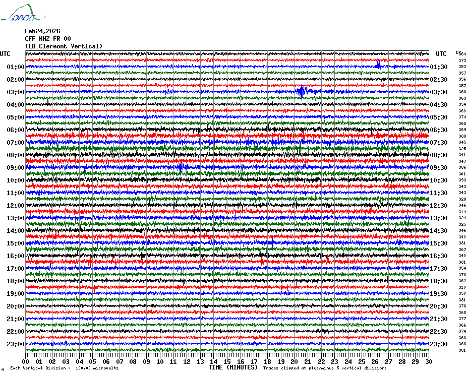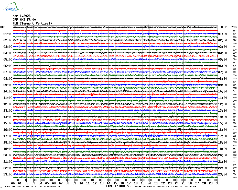 Sismogrammes du Réseau Sismologique Auvergne par fenêtre de 24h