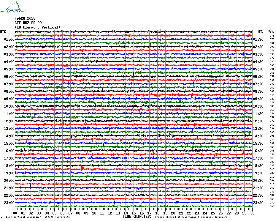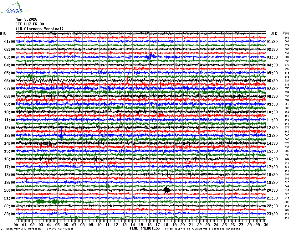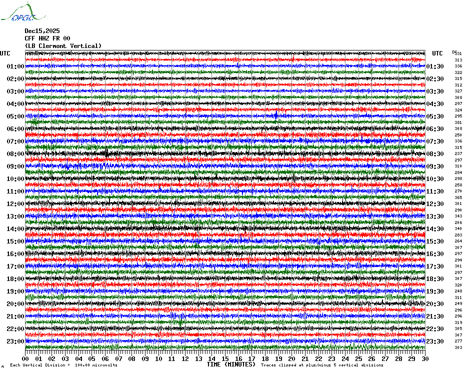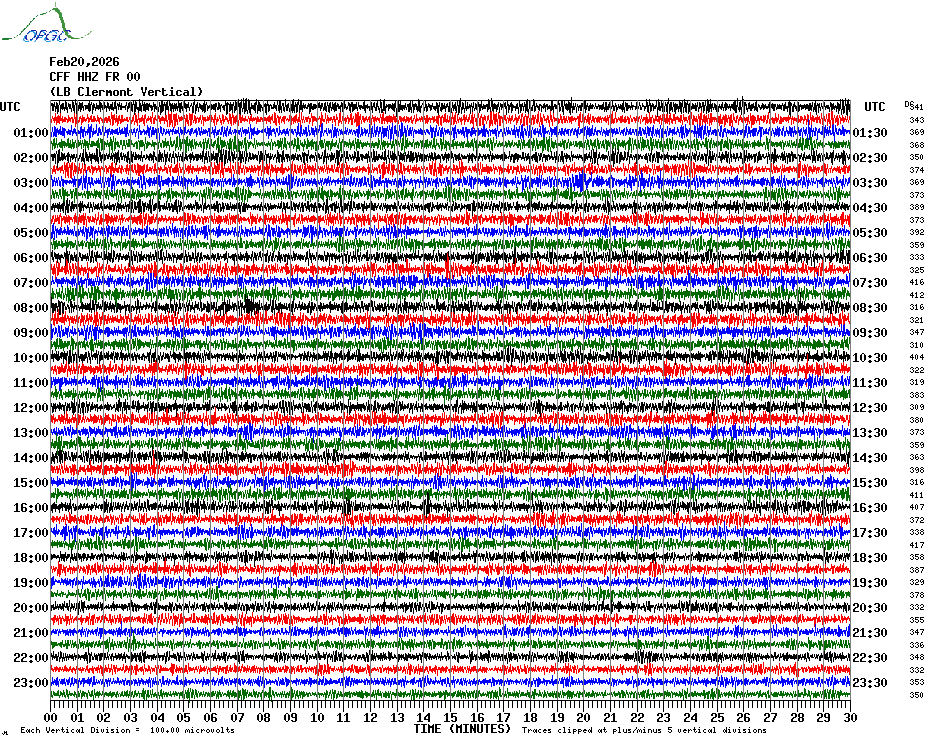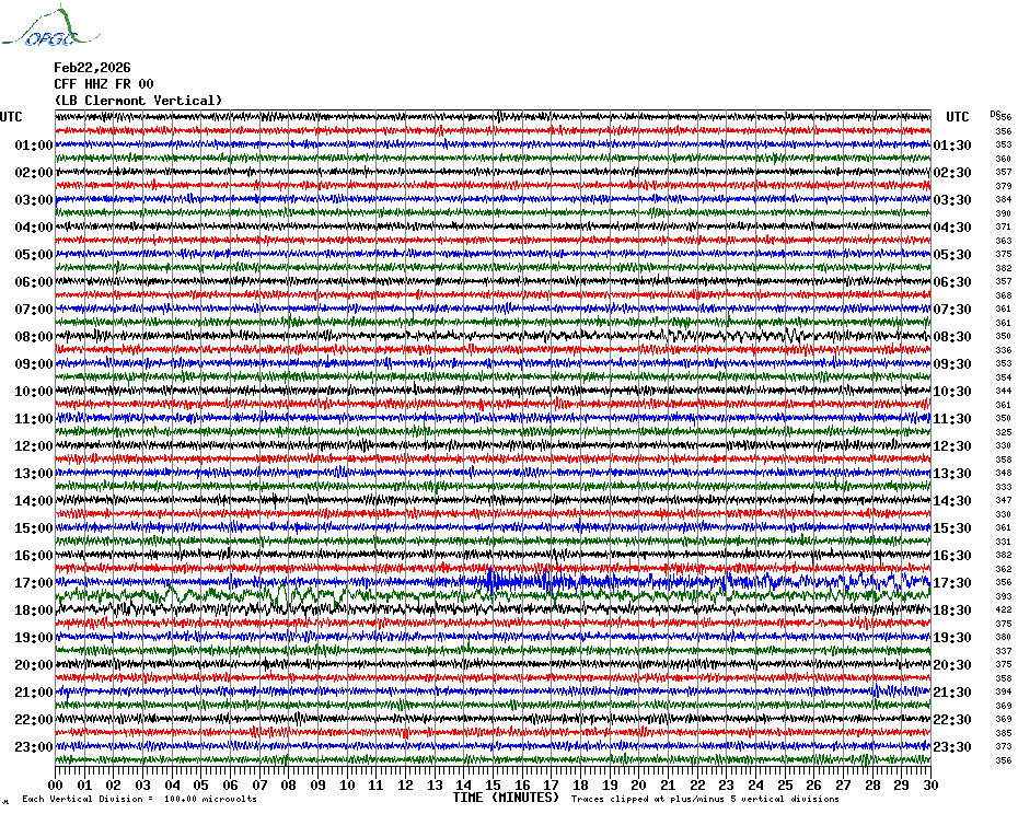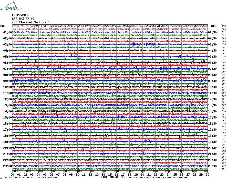 Sismogrammes du Réseau Sismologique Auvergne par fenêtre de 24h