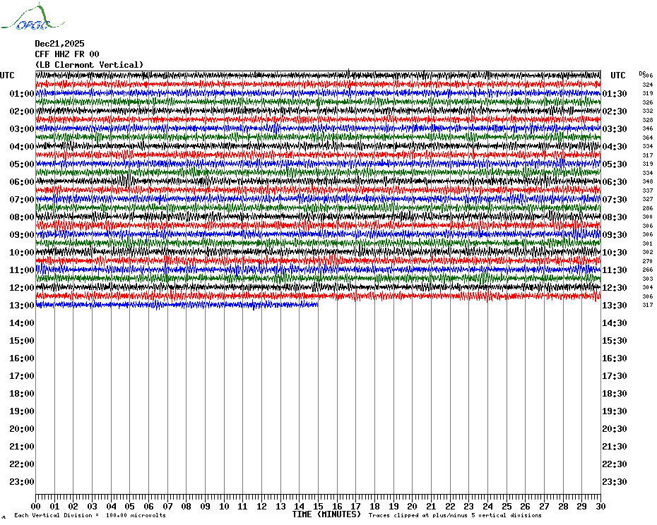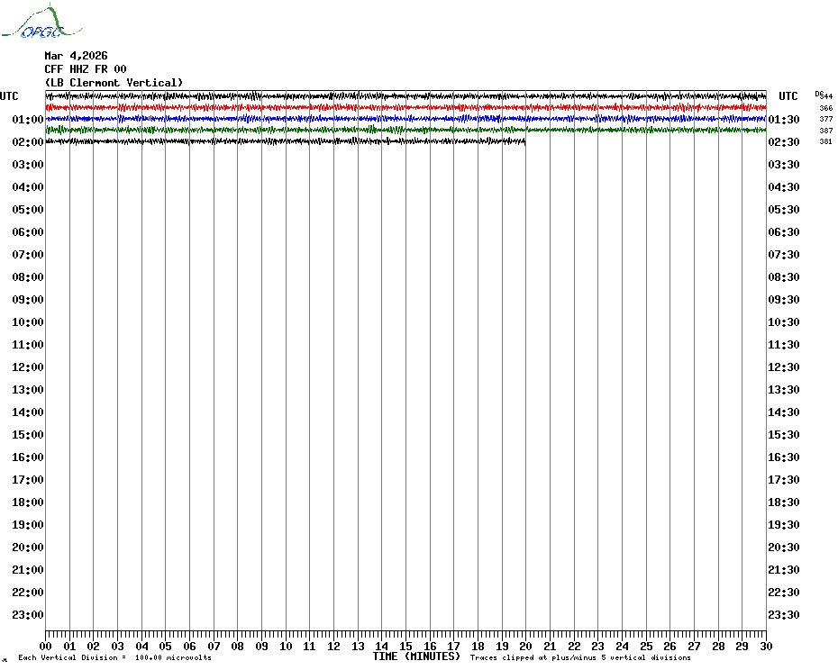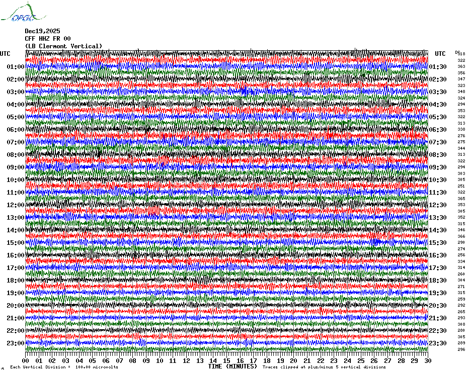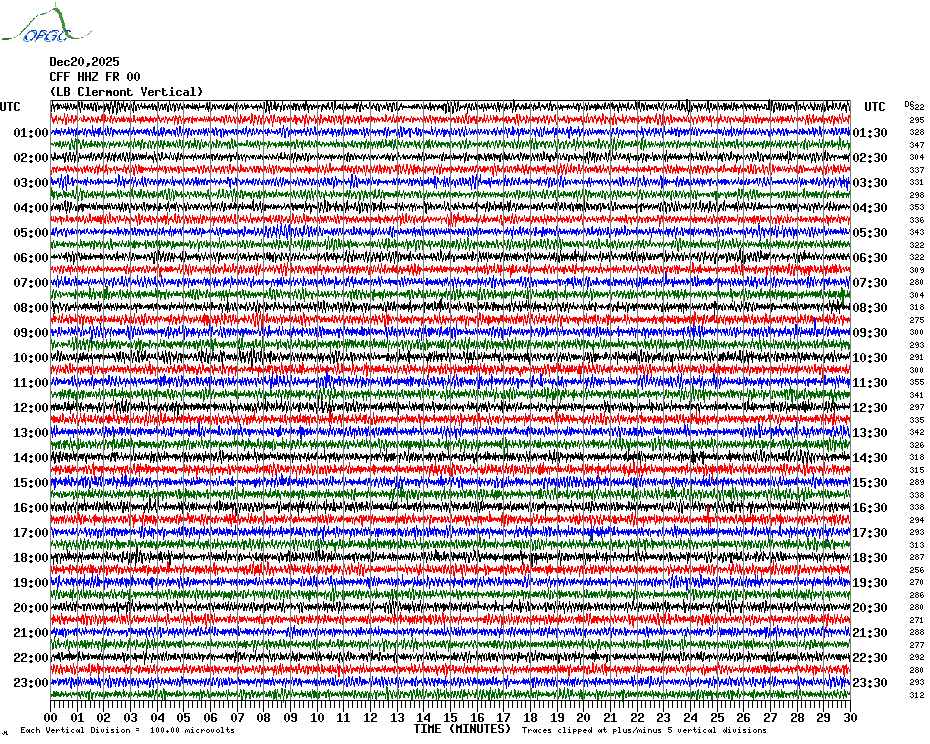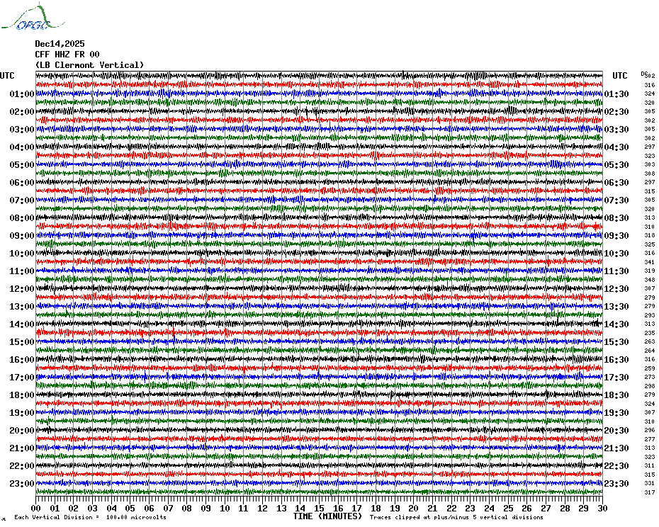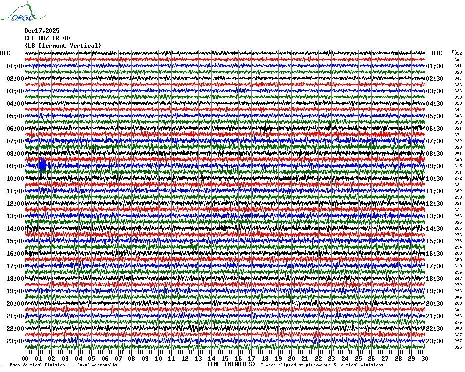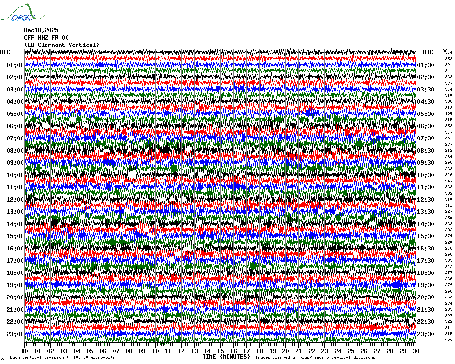 Sismogrammes du Réseau Sismologique Auvergne par fenêtre de 24h