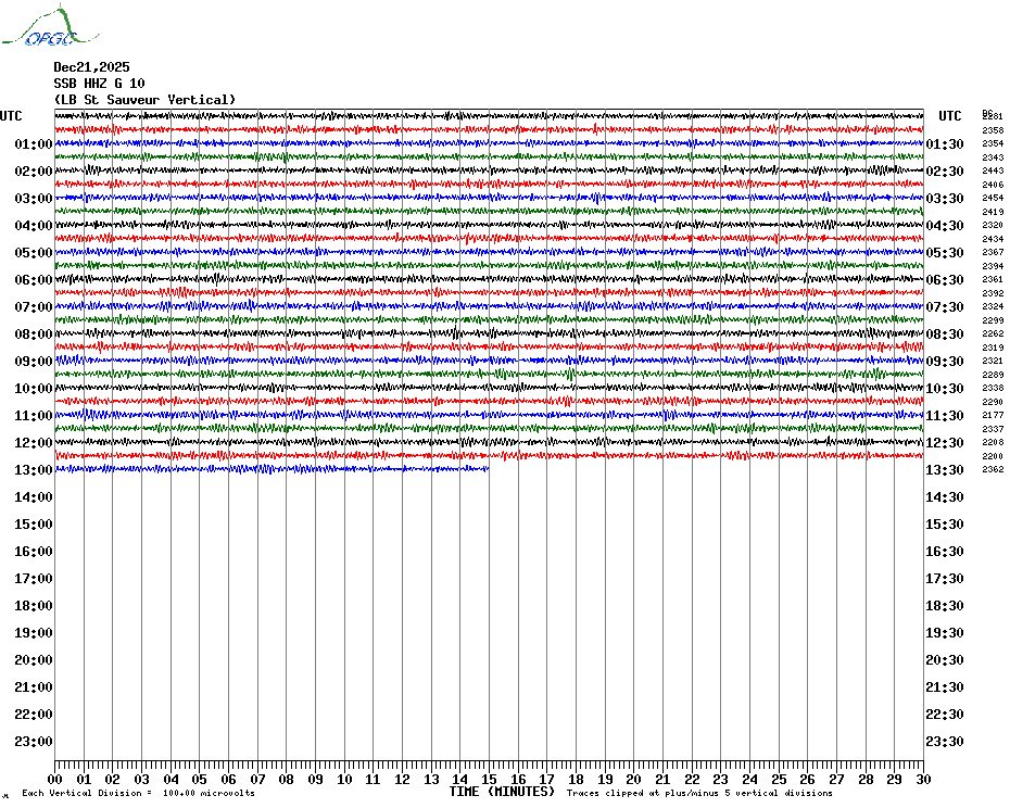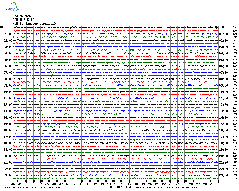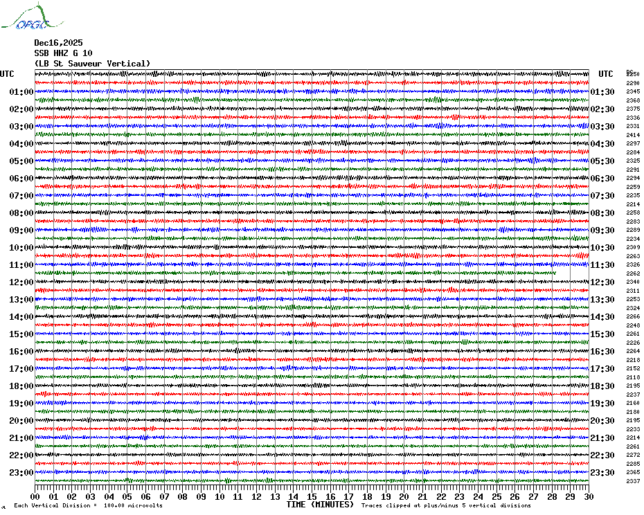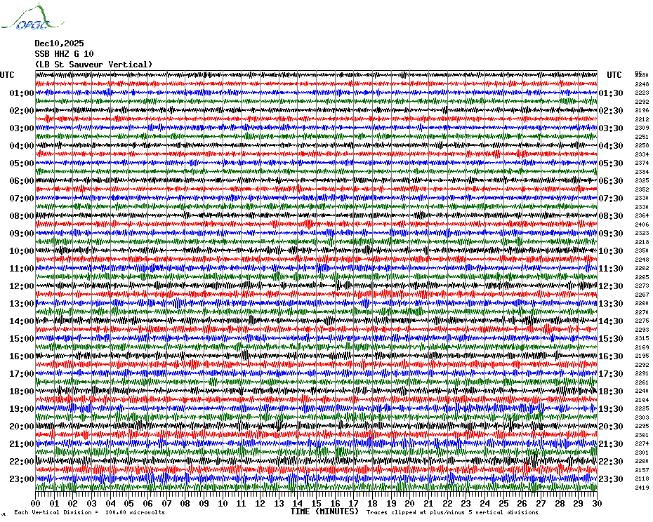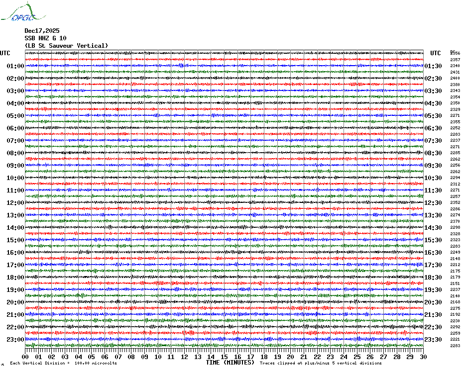Sismogrammes du Réseau Sismologique Auvergne par fenêtre de 24h