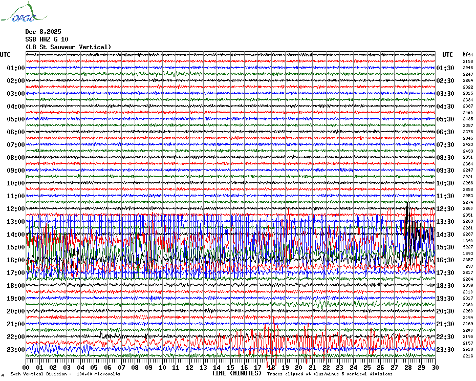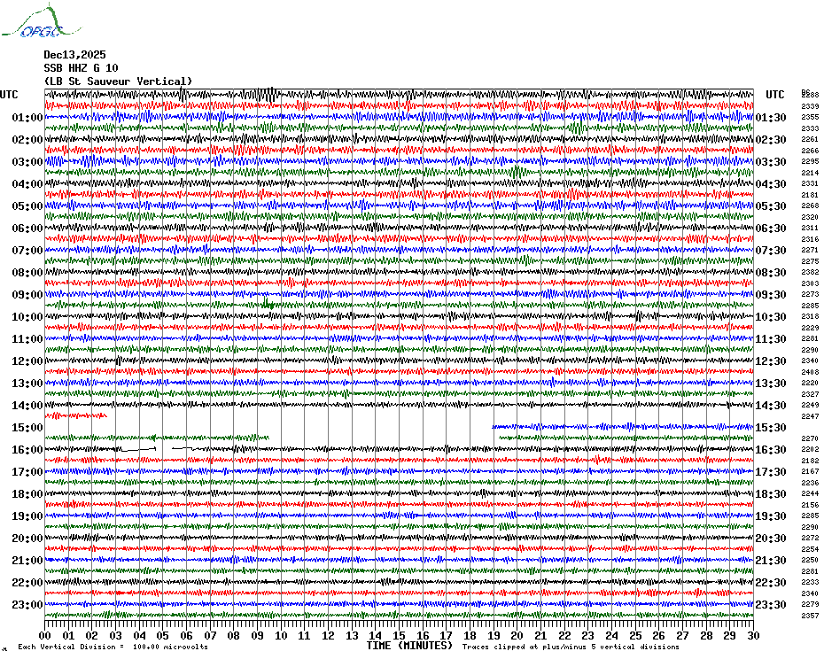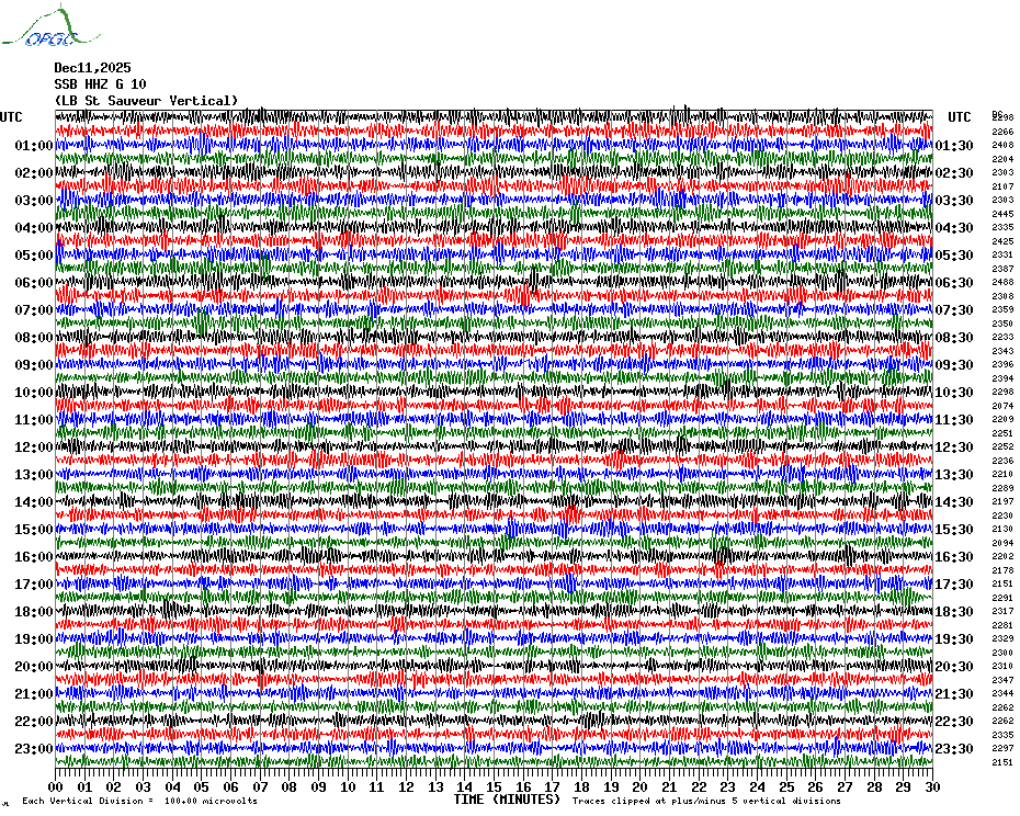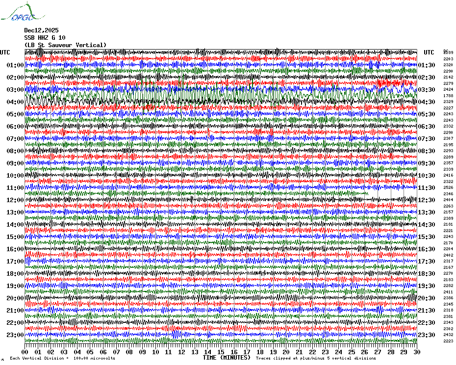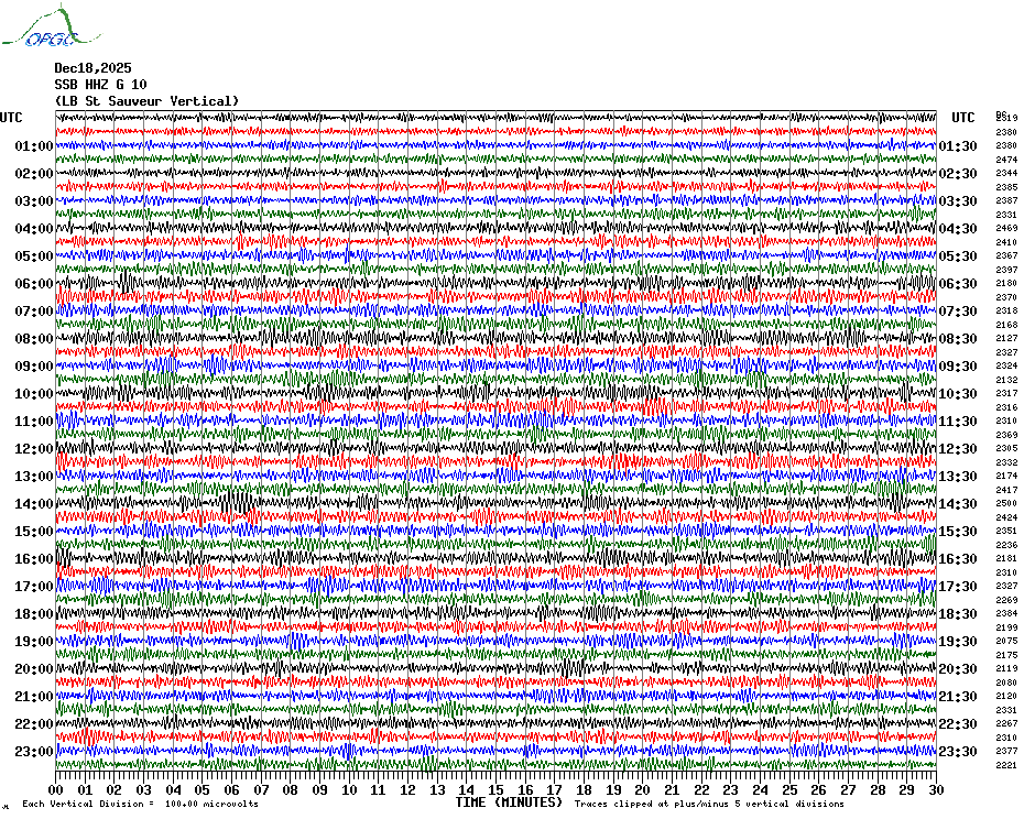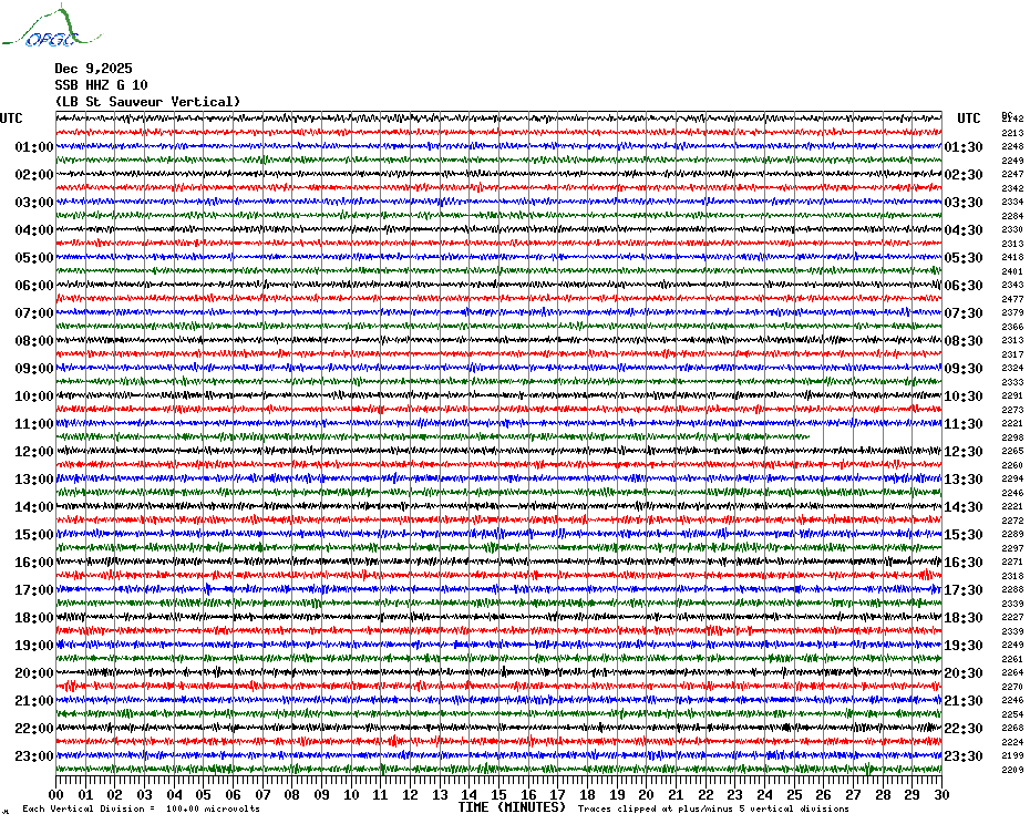 Sismogrammes du Réseau Sismologique Auvergne par fenêtre de 24h