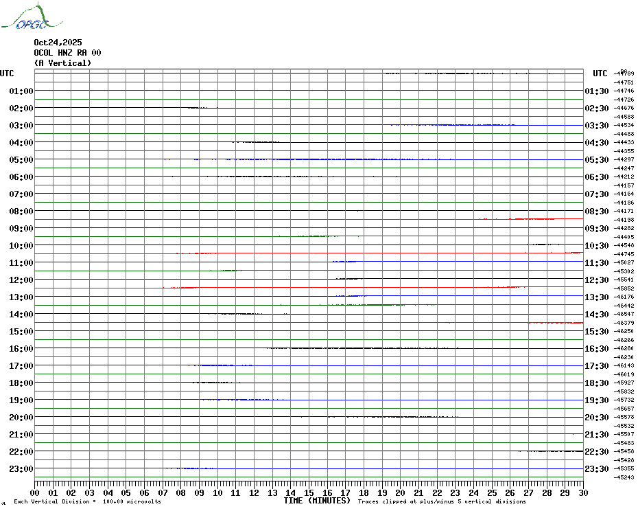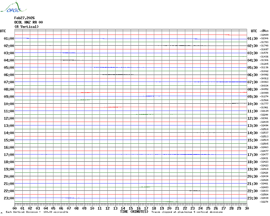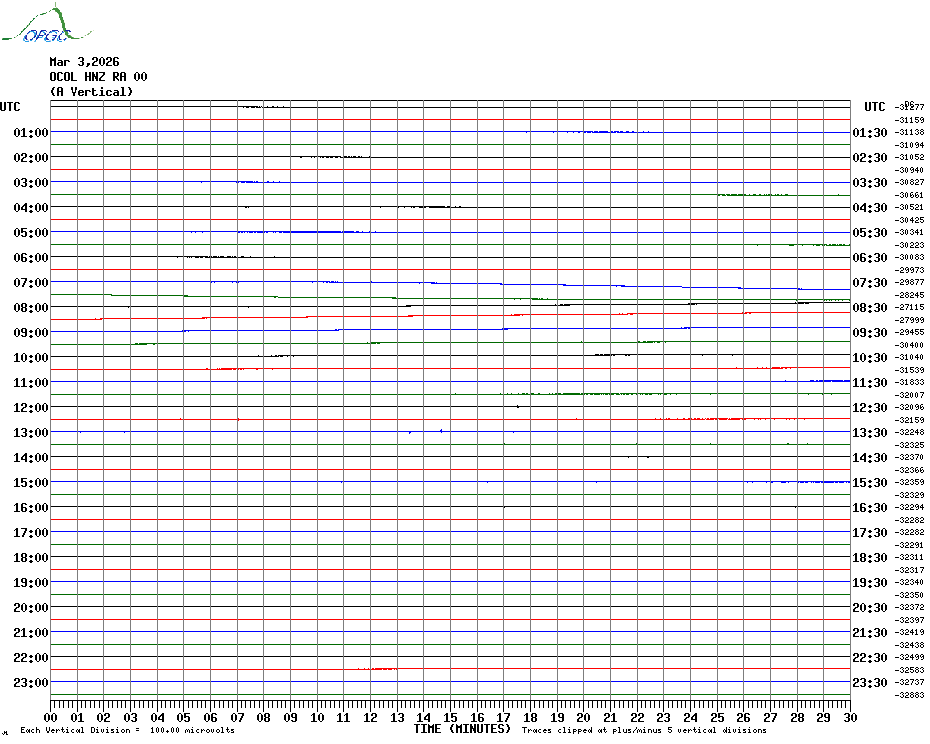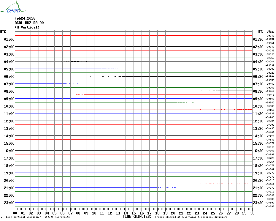 Sismogrammes du Réseau Sismologique Auvergne par fenêtre de 24h