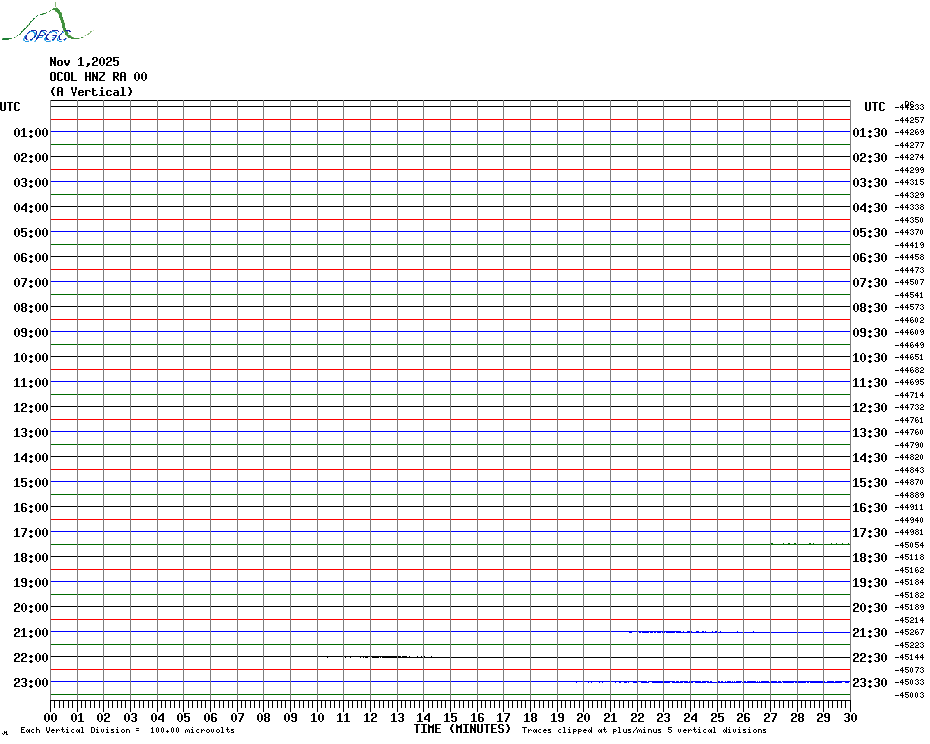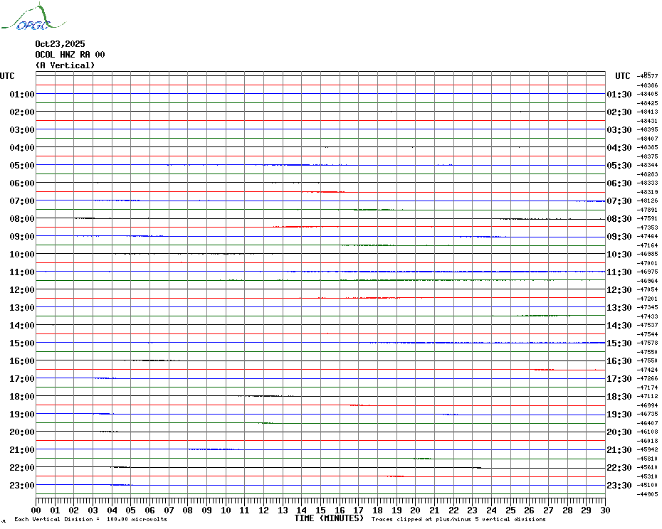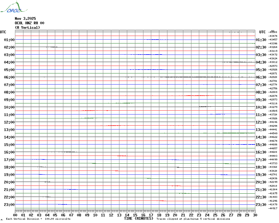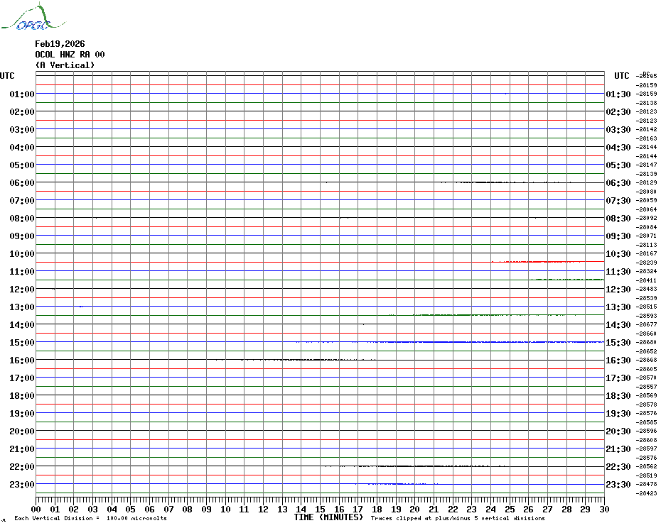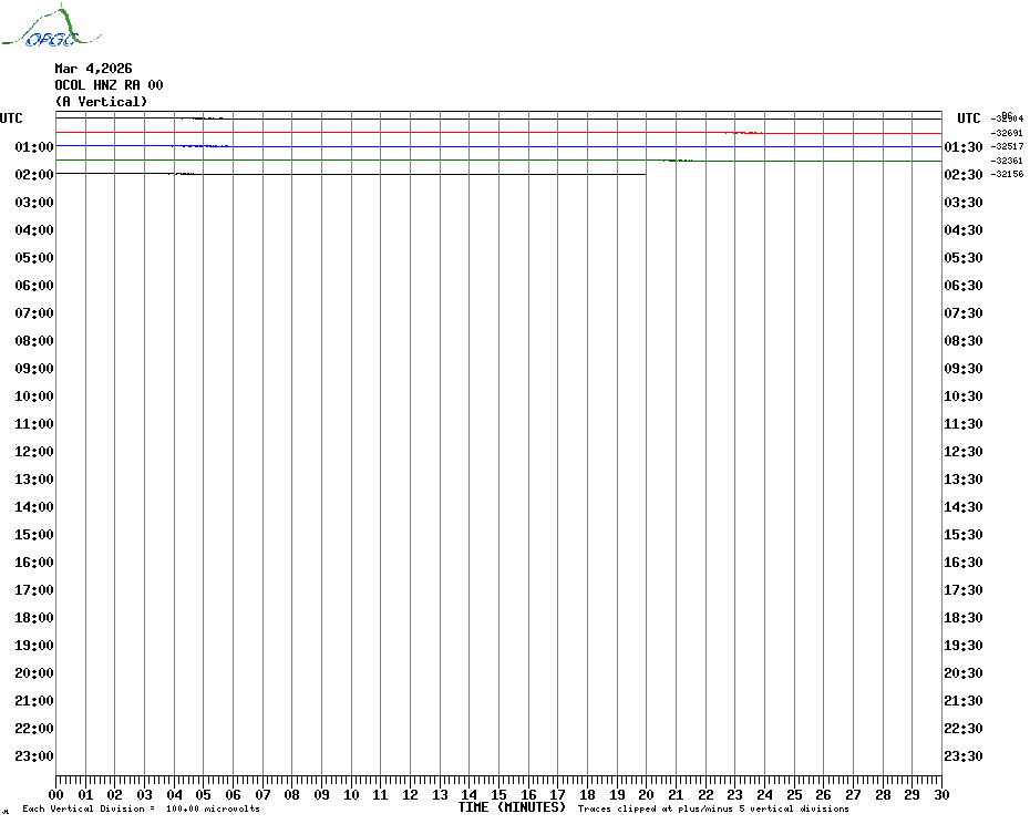 Sismogrammes du Réseau Sismologique Auvergne par fenêtre de 24h