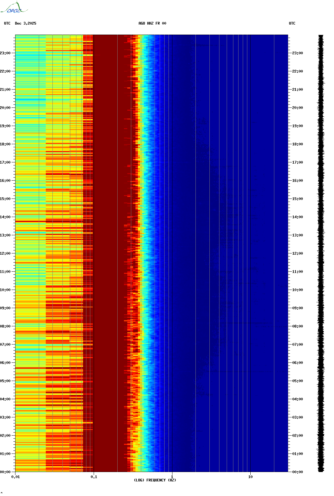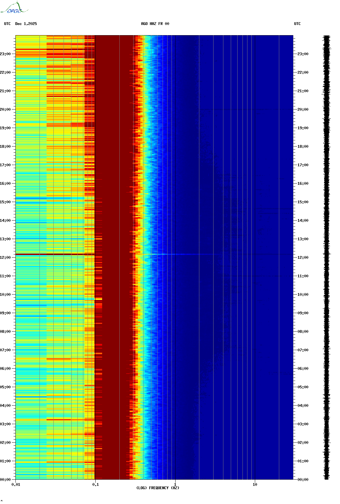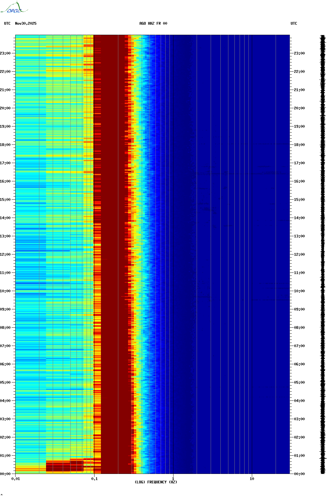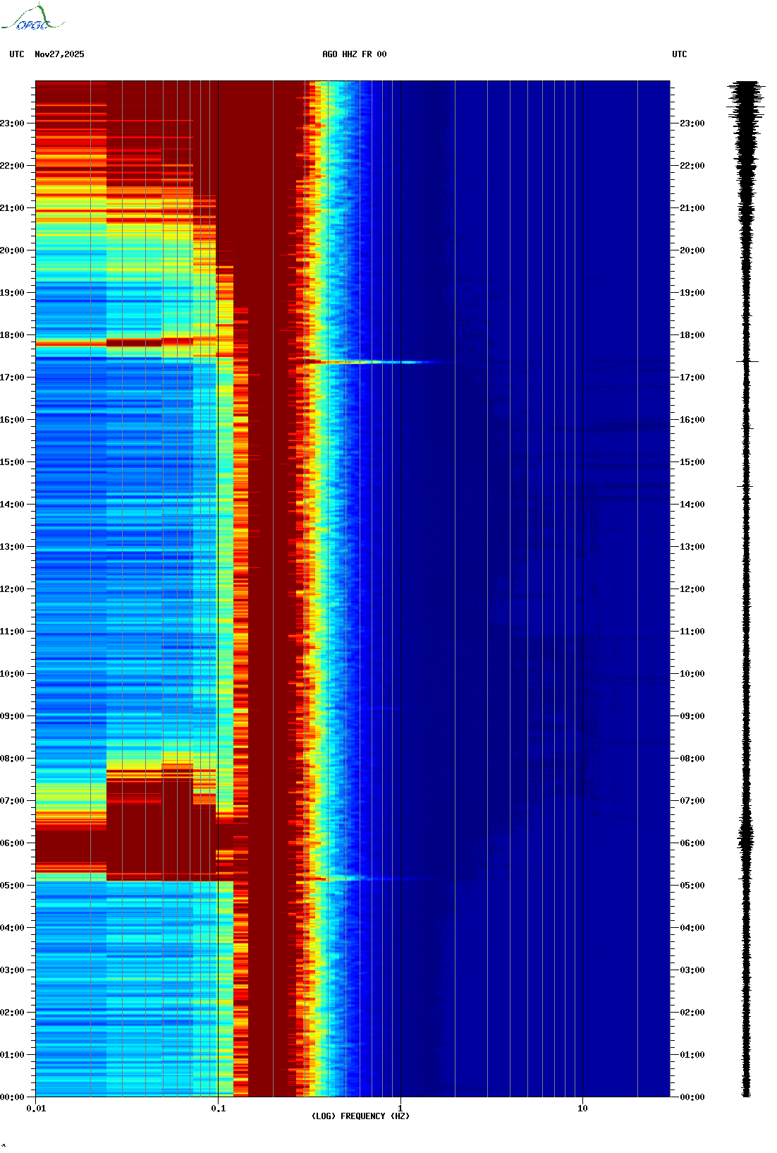 Spectrogrammes du Réseau Sismologique Auvergne-Charentes