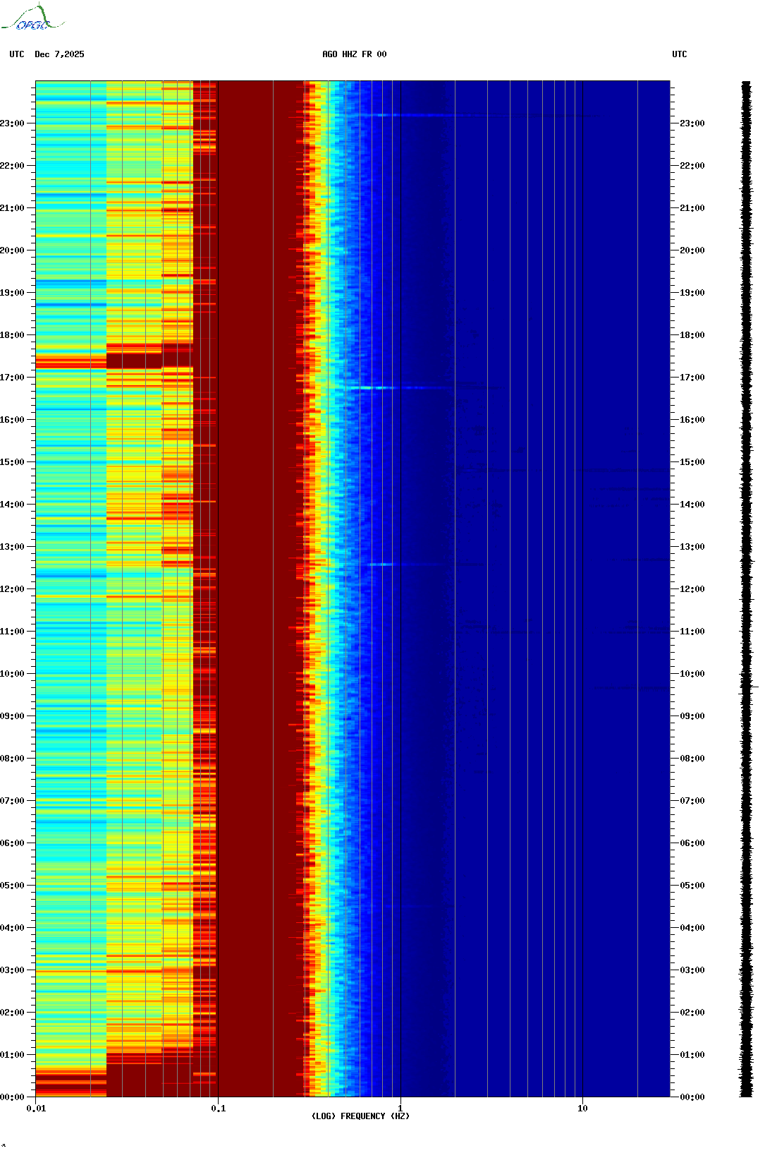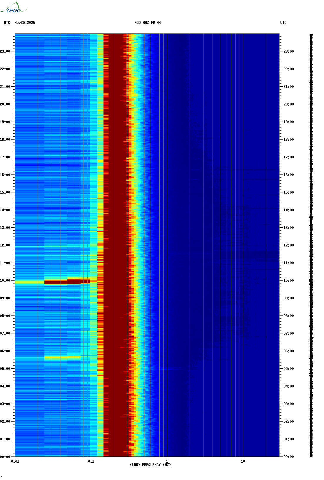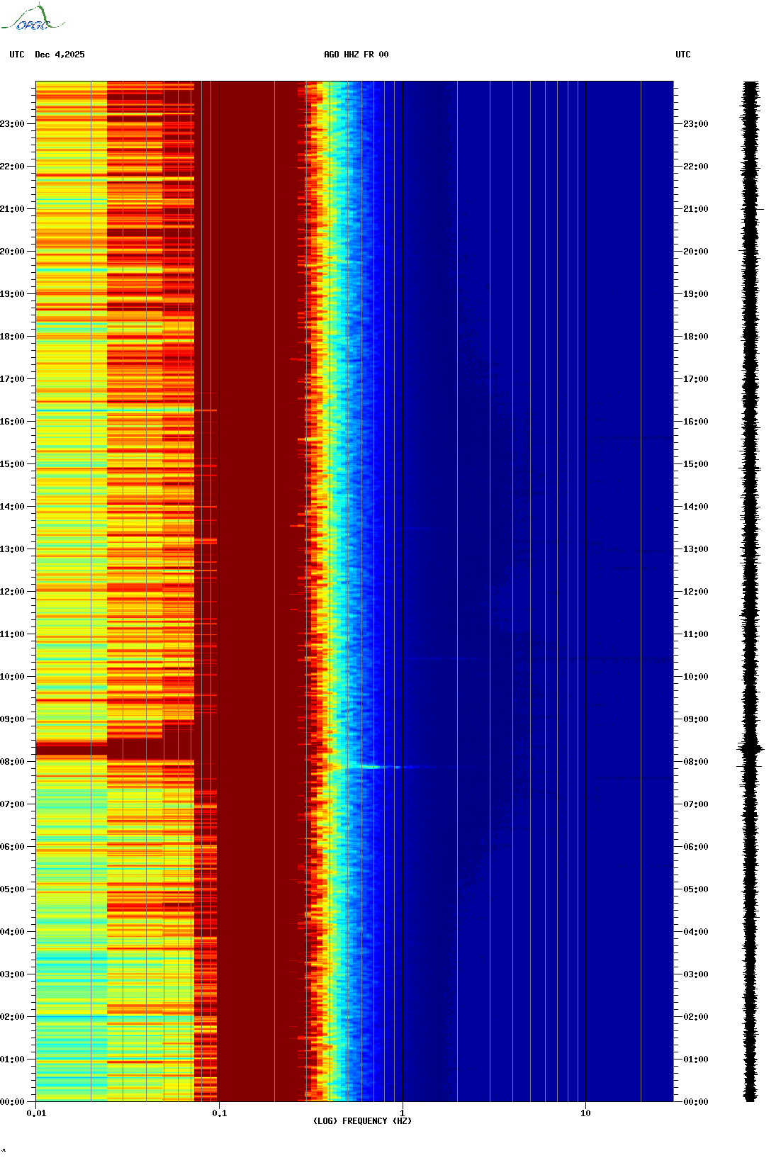 Spectrogrammes du Réseau Sismologique Auvergne-Charentes