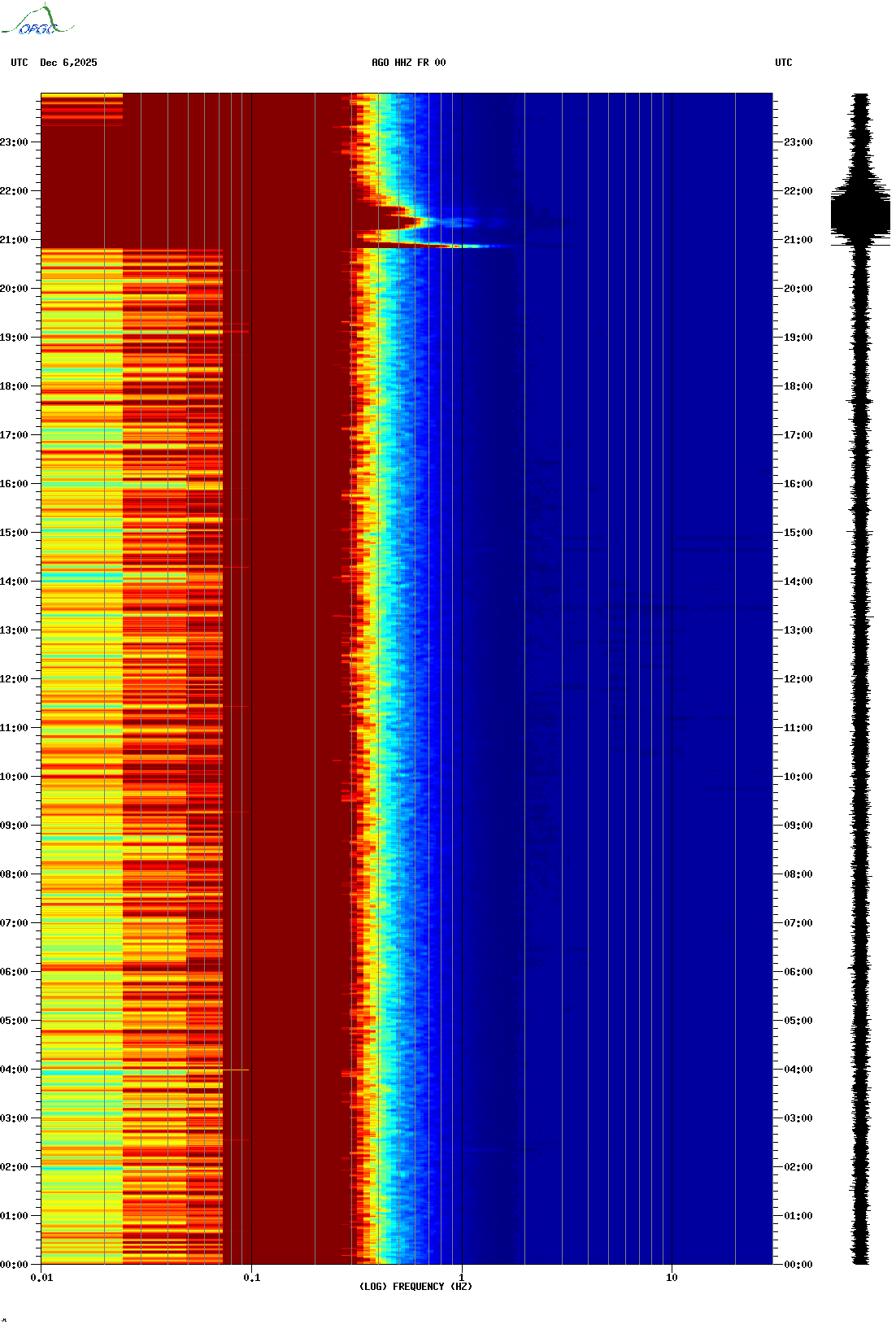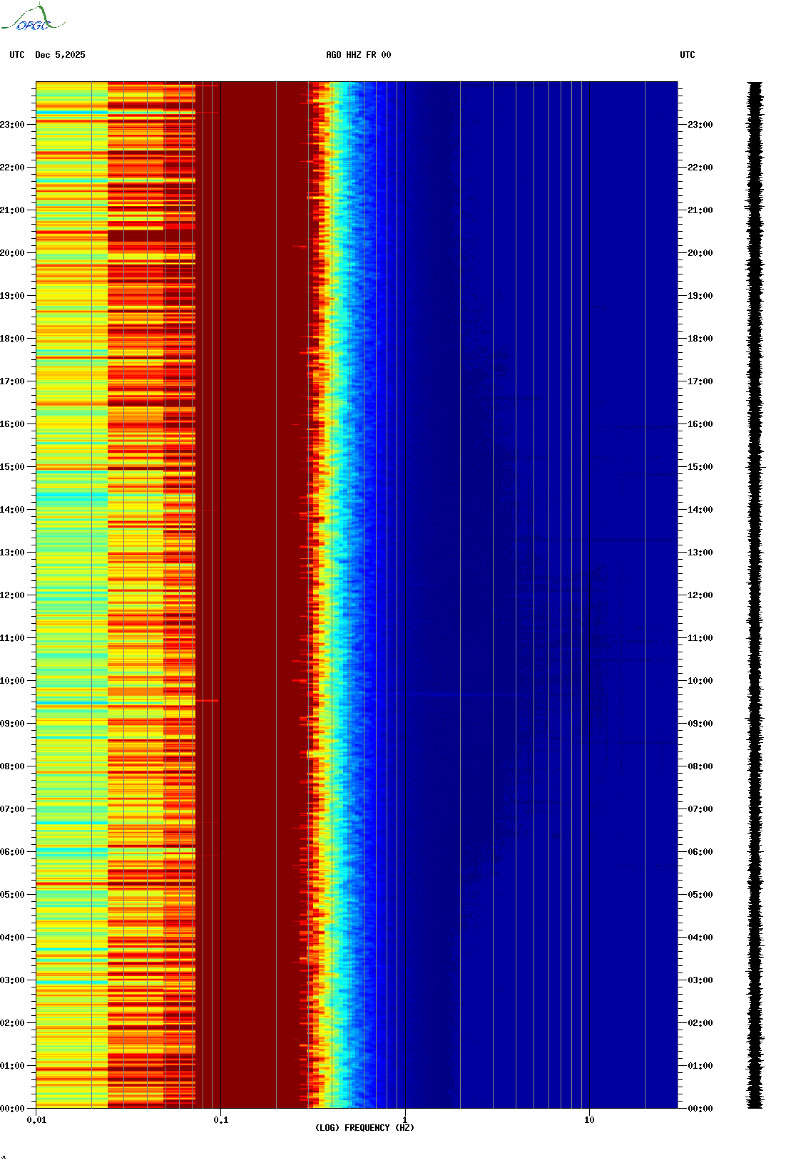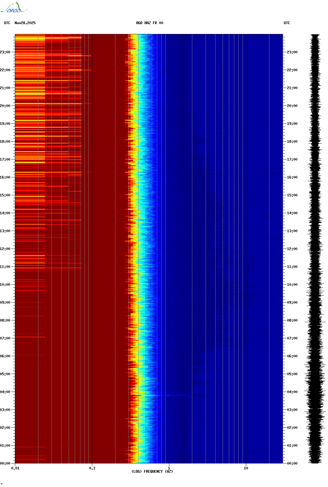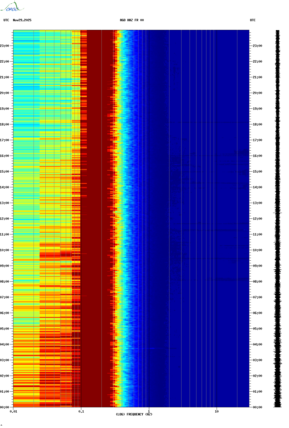 Spectrogrammes du Réseau Sismologique Auvergne-Charentes