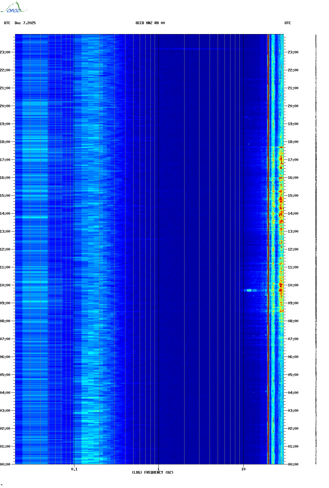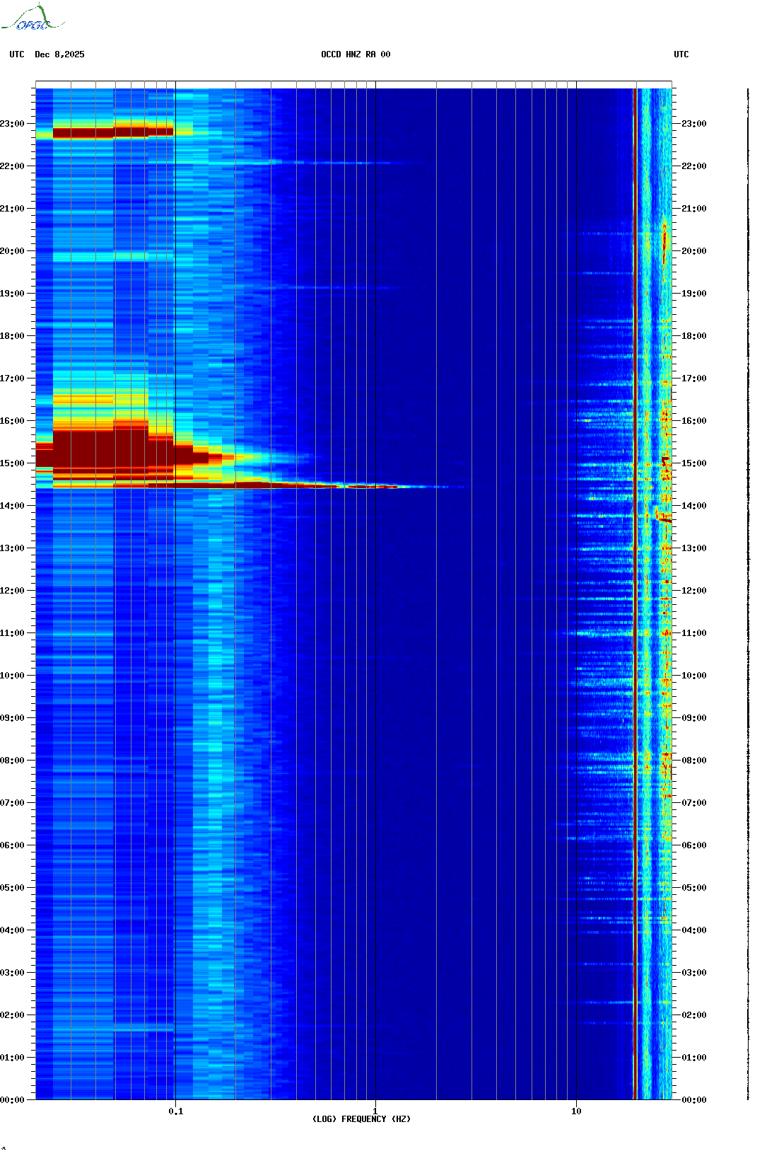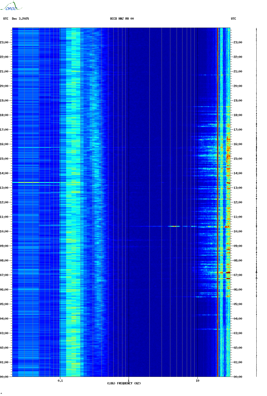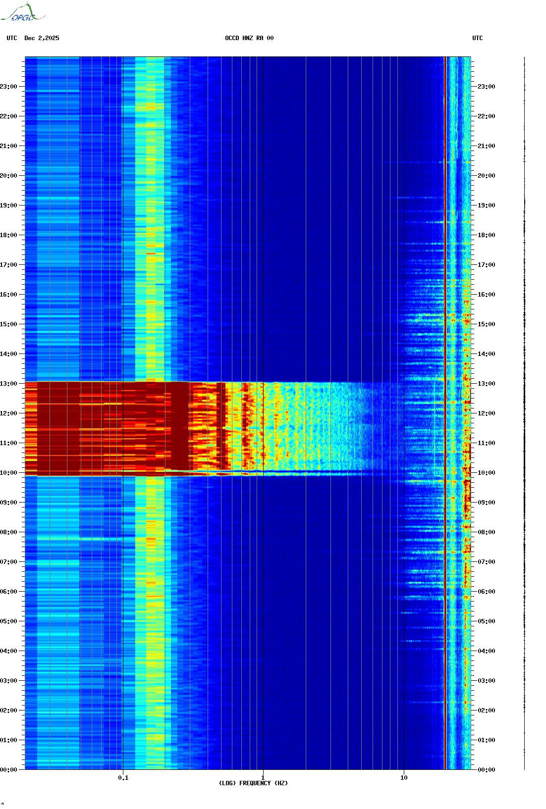 Spectrogrammes du Réseau Sismologique Auvergne-Charentes