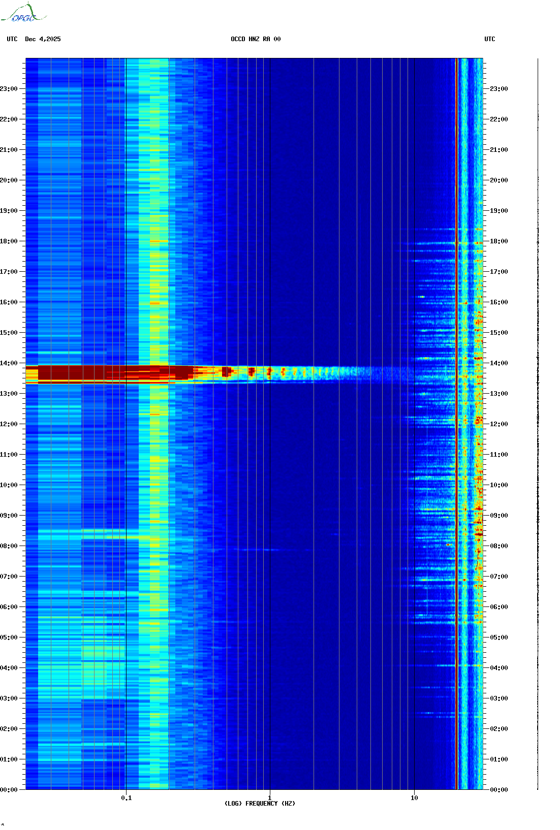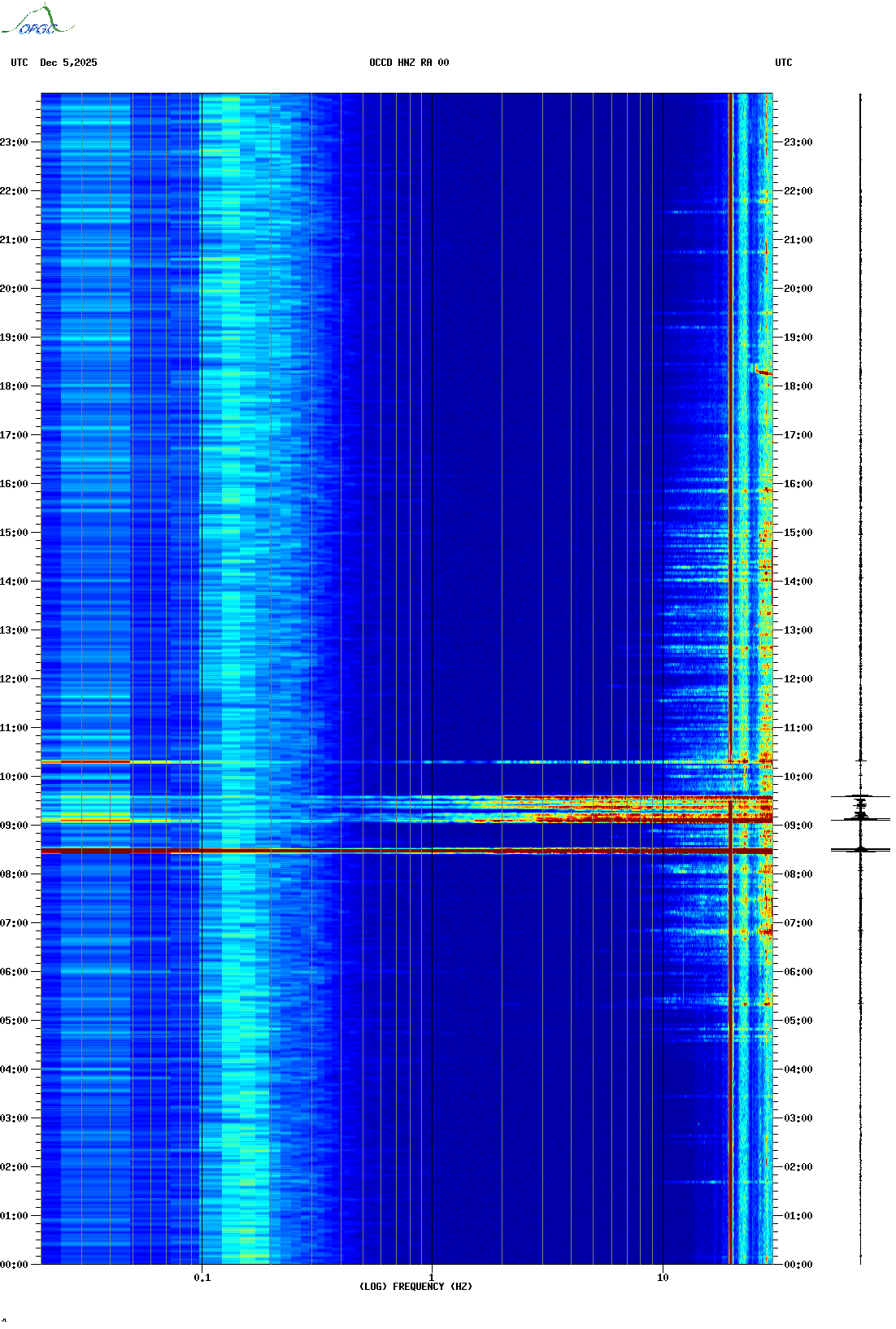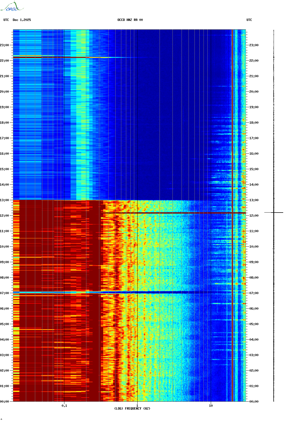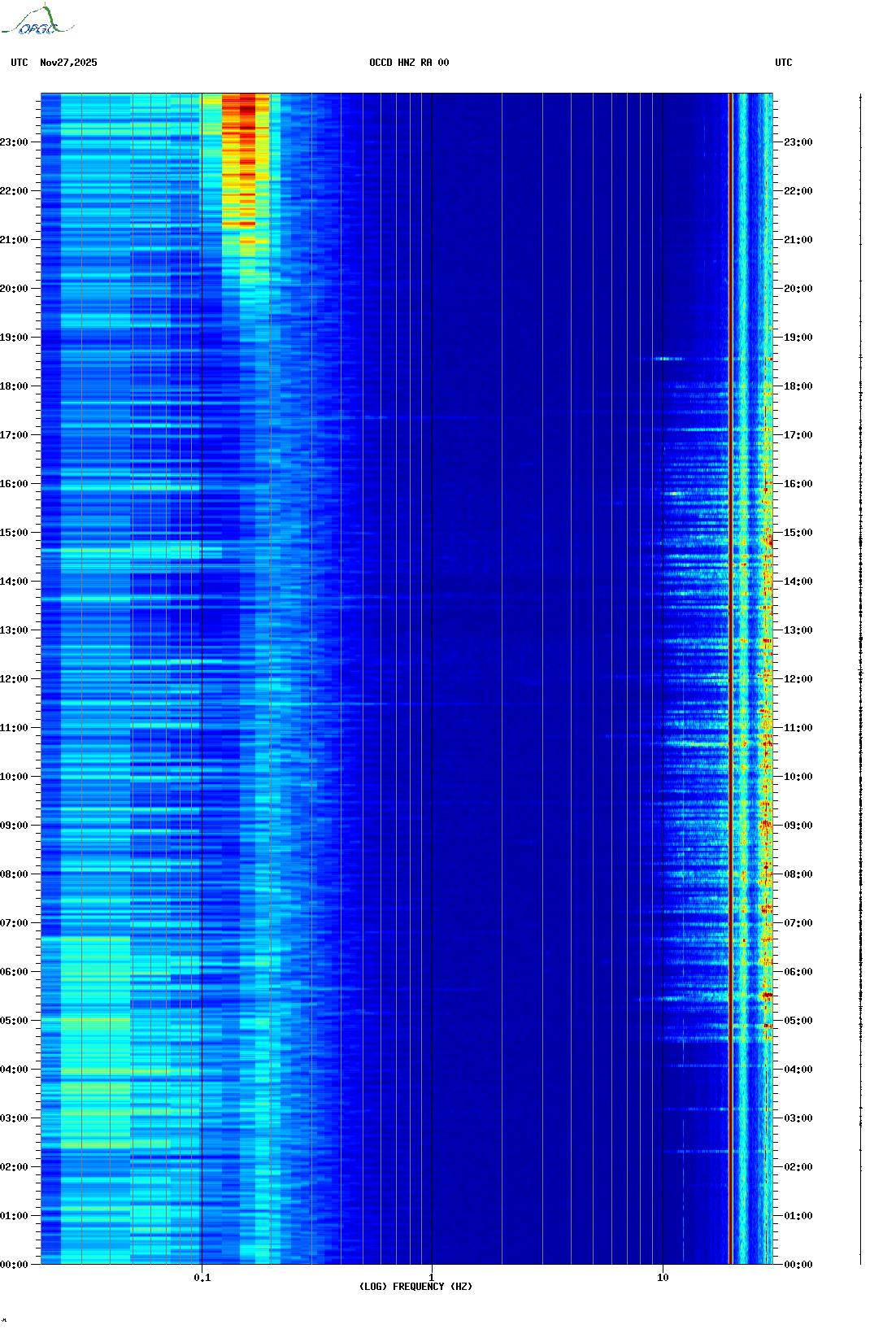 Spectrogrammes du Réseau Sismologique Auvergne-Charentes