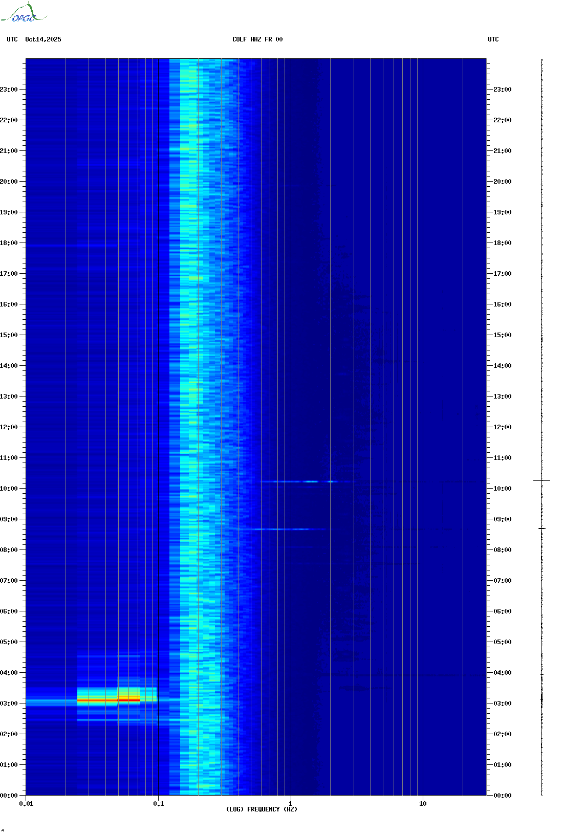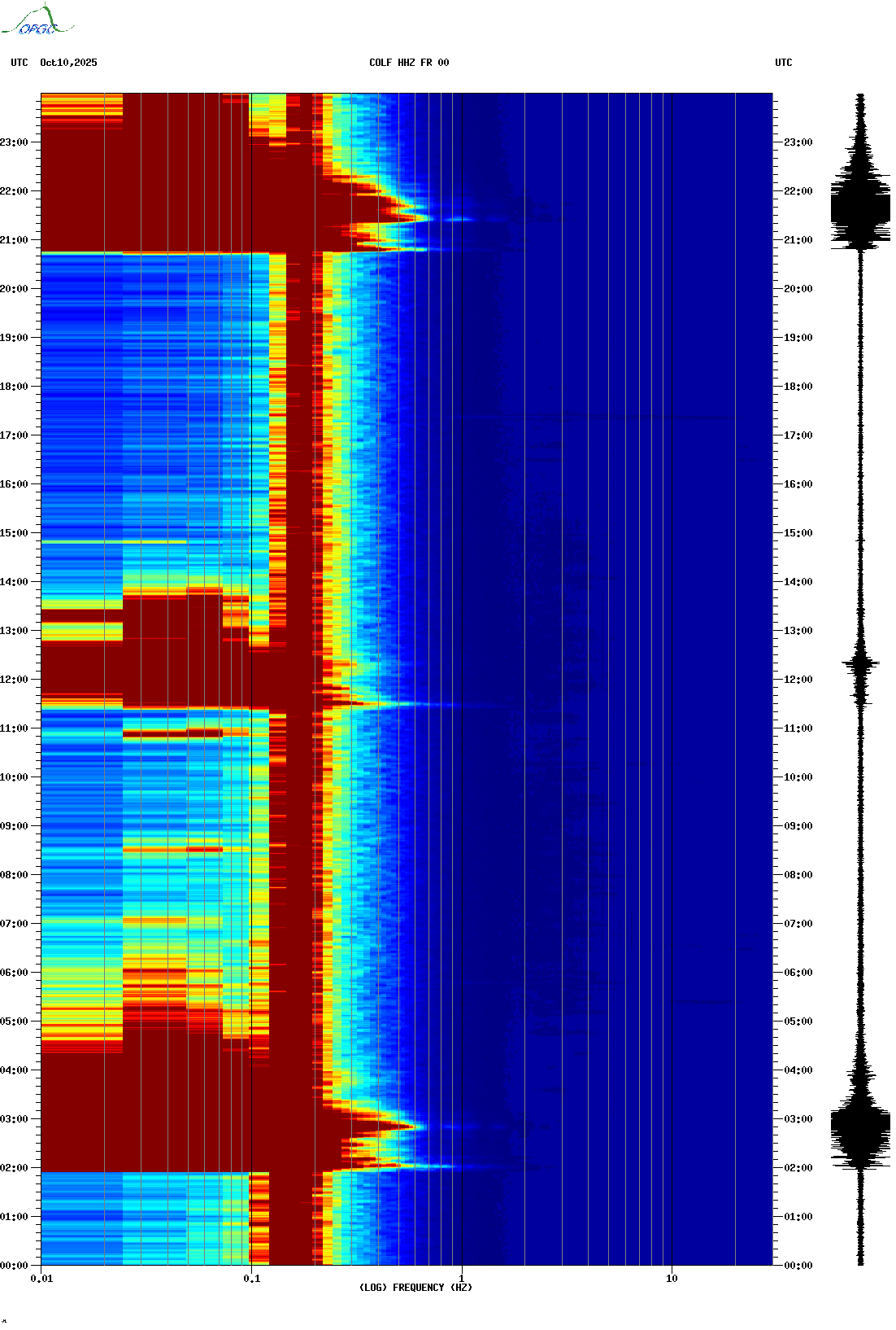 Spectrogrammes du Réseau Sismologique Auvergne-Charentes