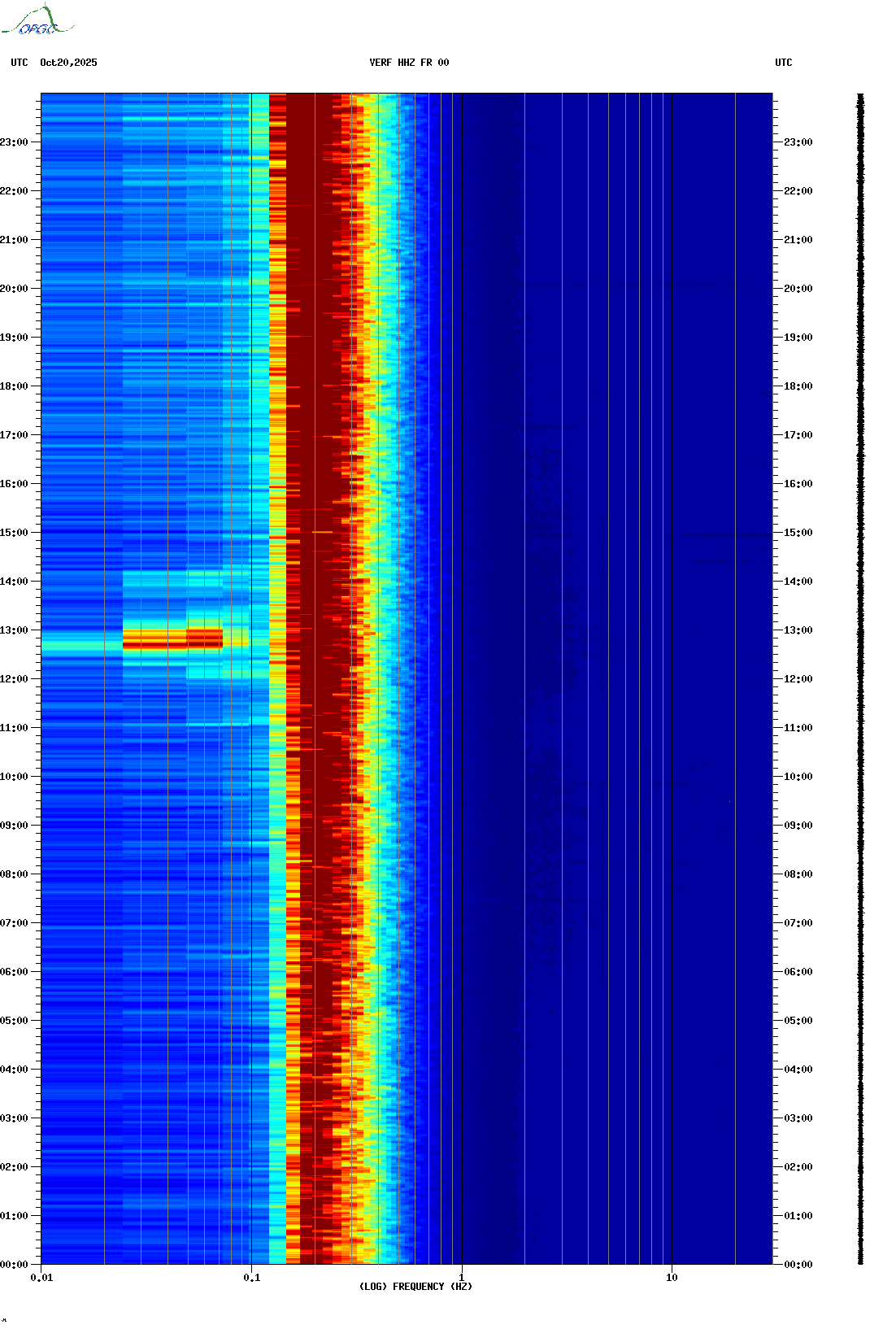 Spectrogrammes du Réseau Sismologique Auvergne-Charentes