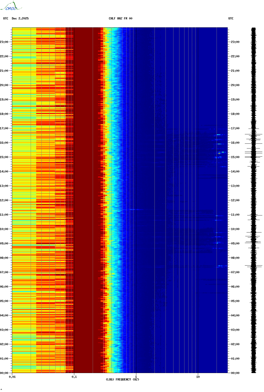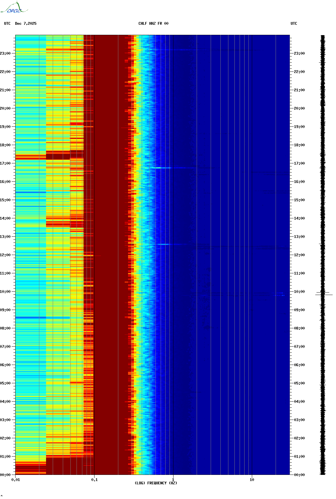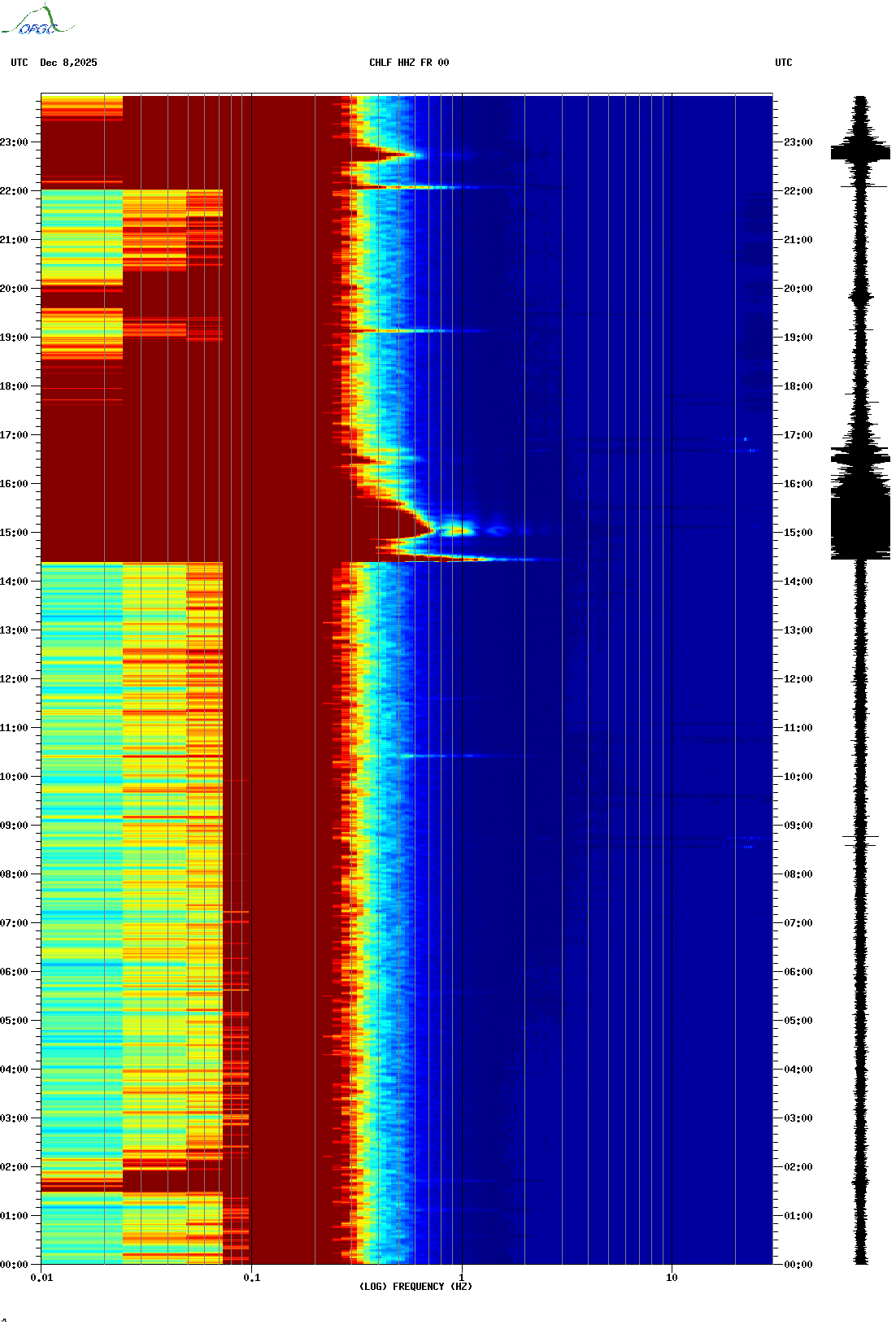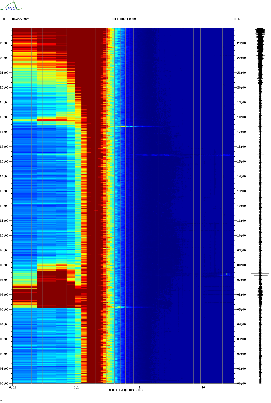 Spectrogrammes du Réseau Sismologique Auvergne-Charentes