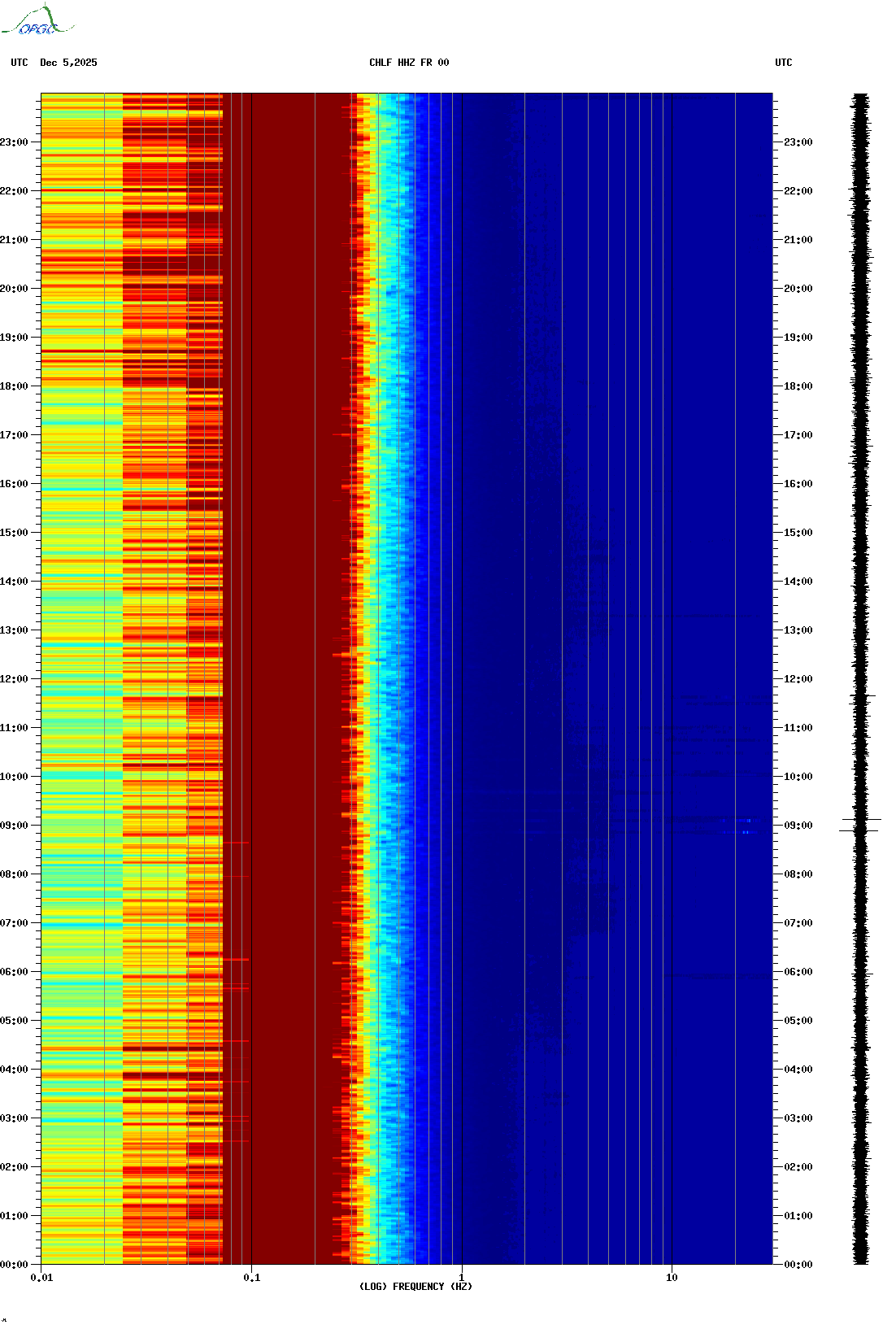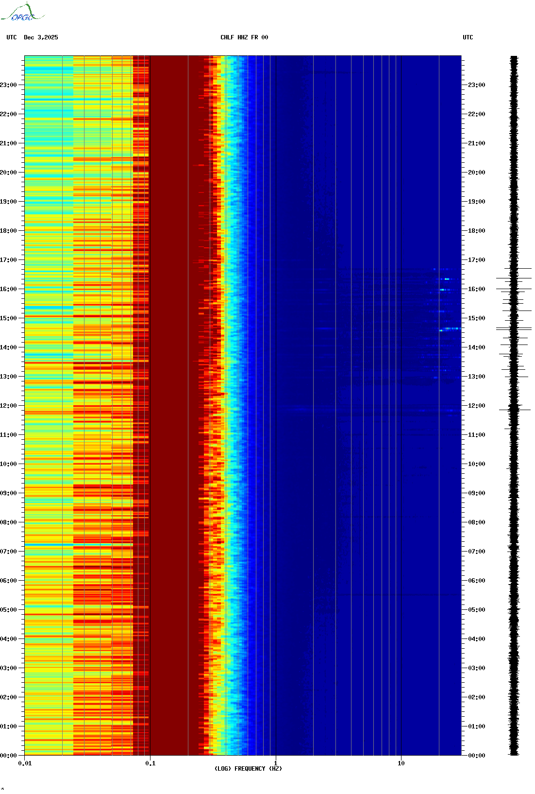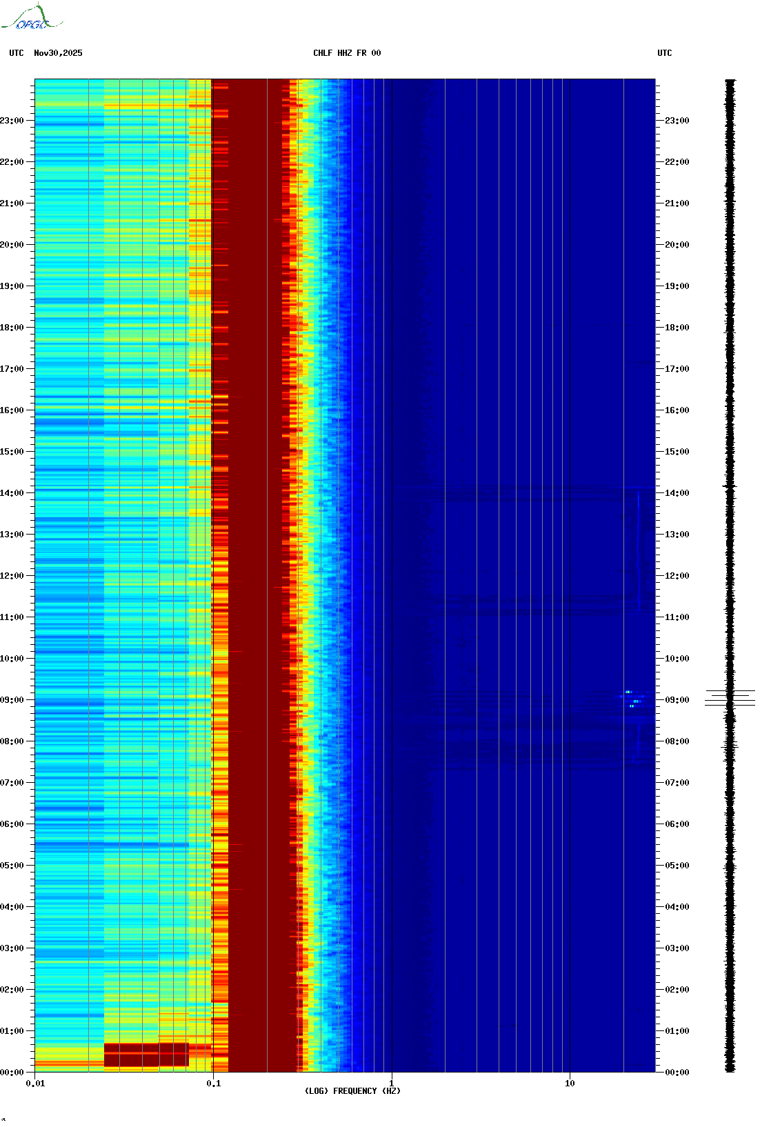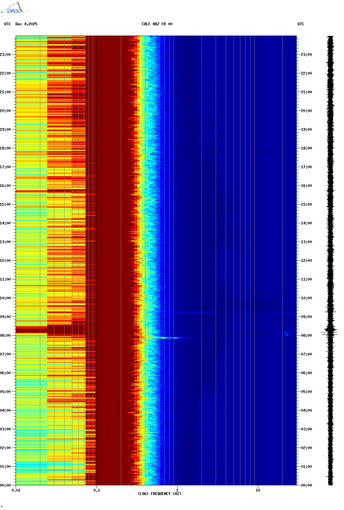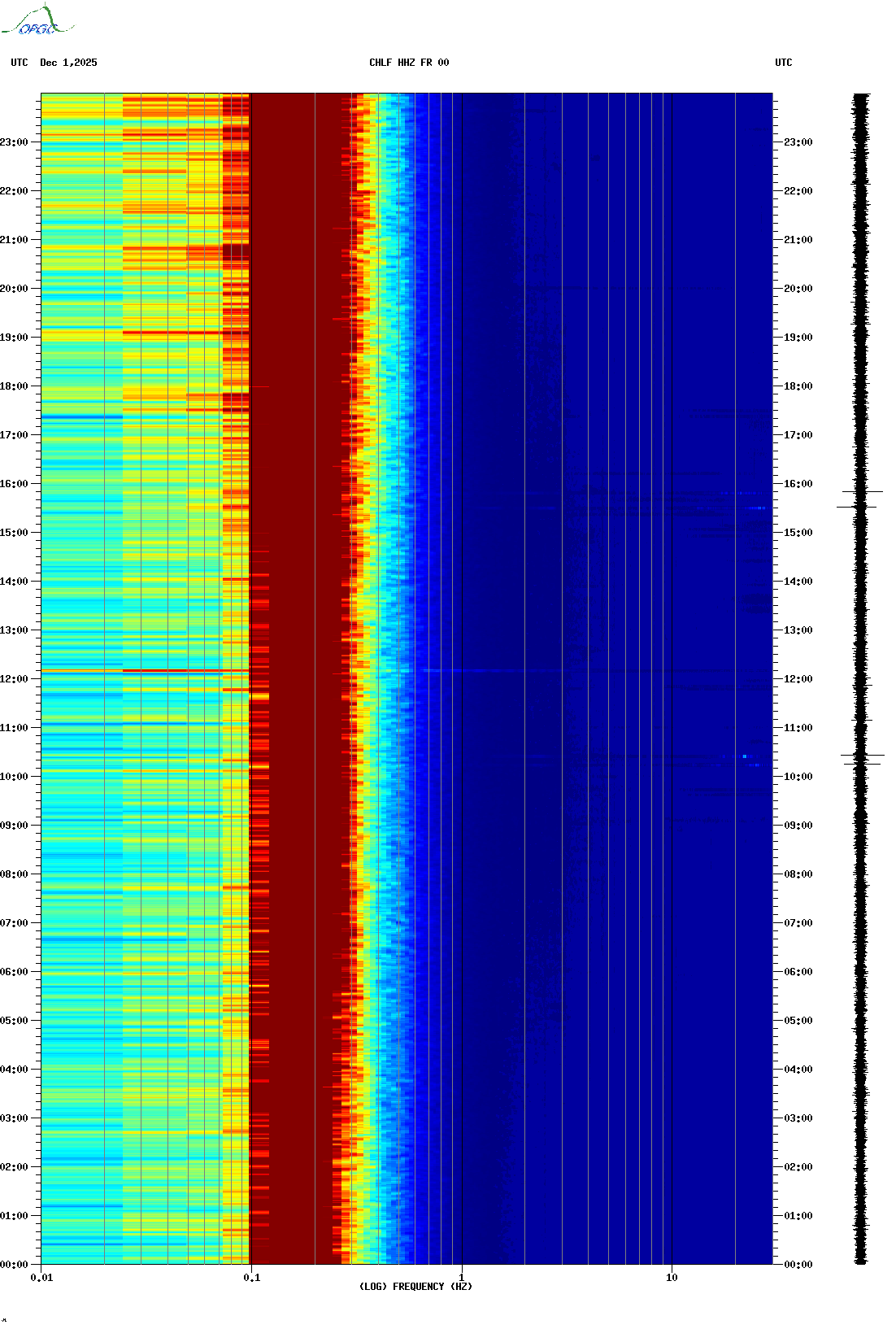 Spectrogrammes du Réseau Sismologique Auvergne-Charentes