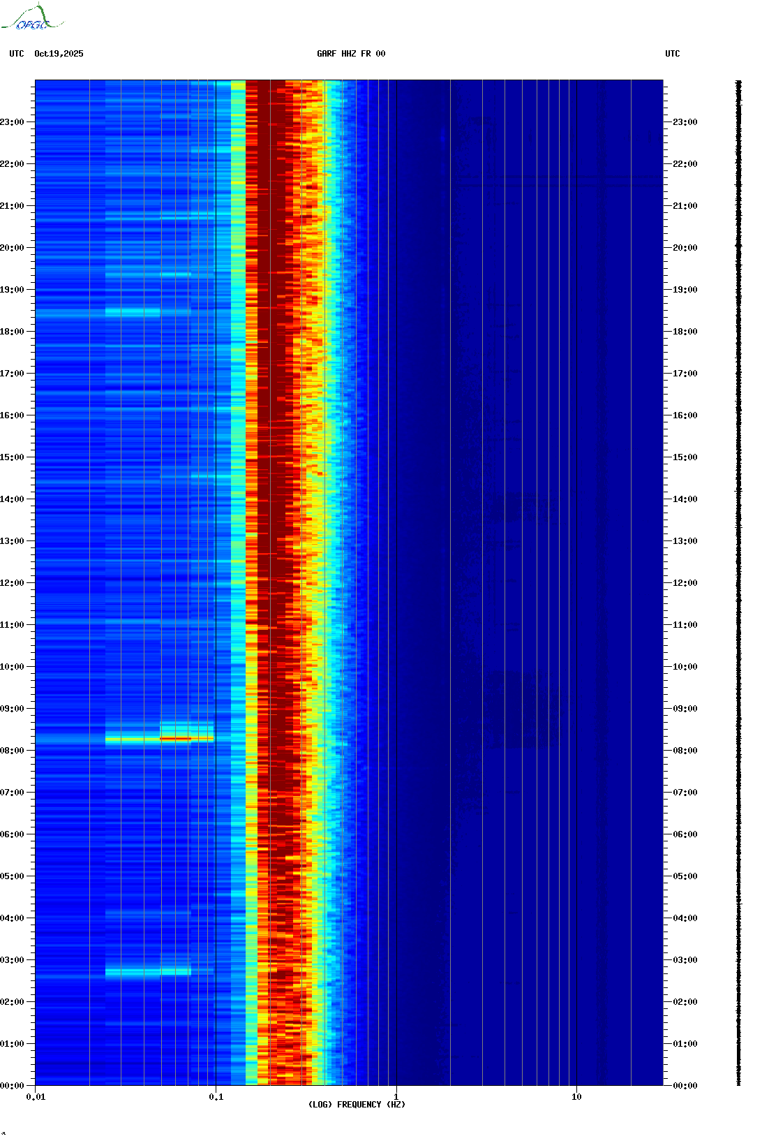 Spectrogrammes du Réseau Sismologique Auvergne-Charentes