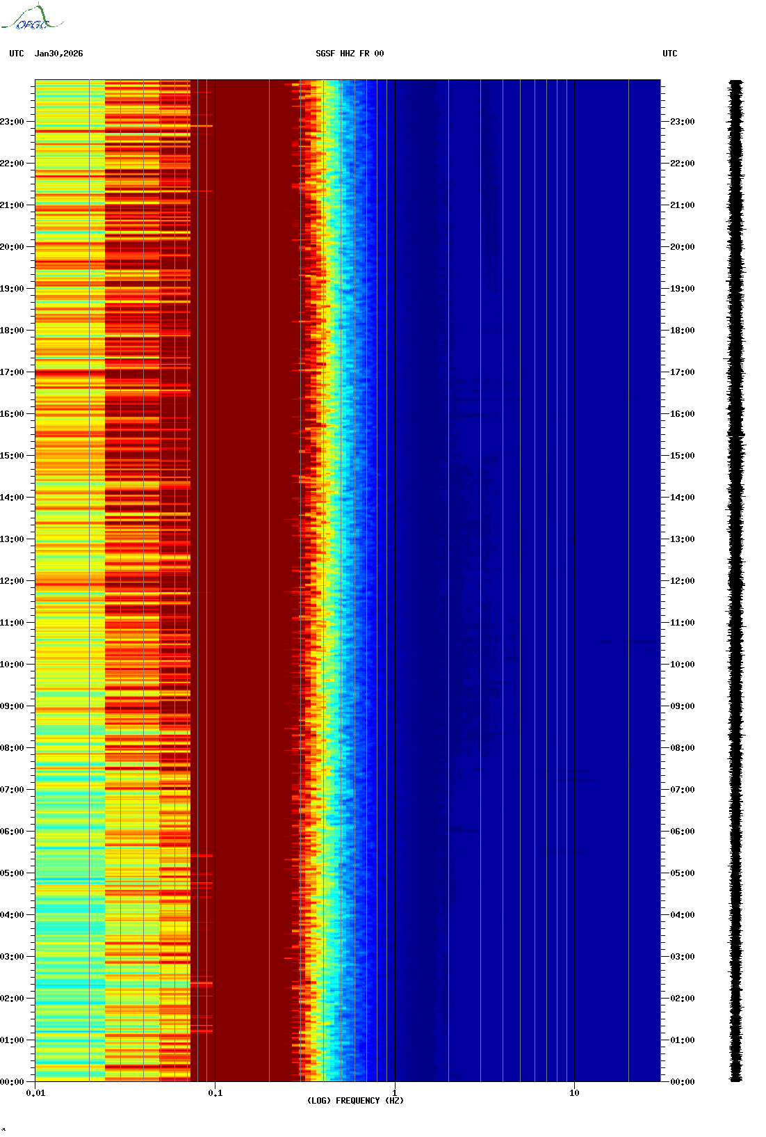 Spectrogrammes du Réseau Sismologique Auvergne-Charentes