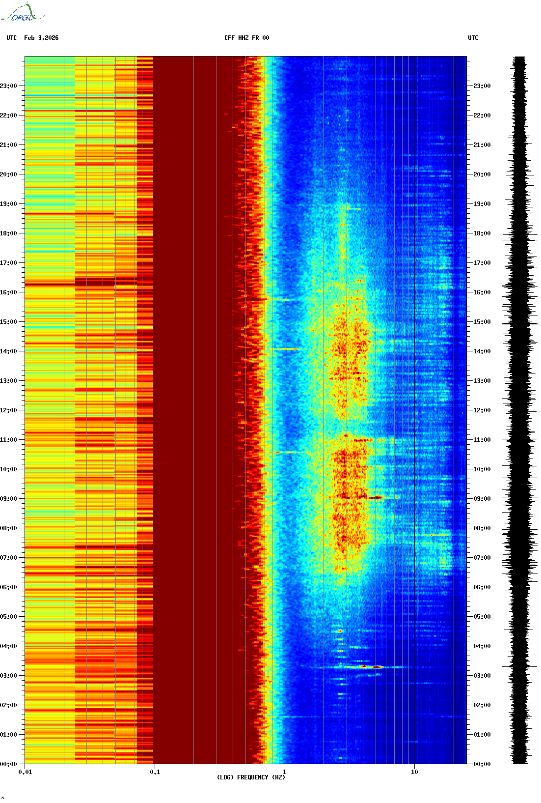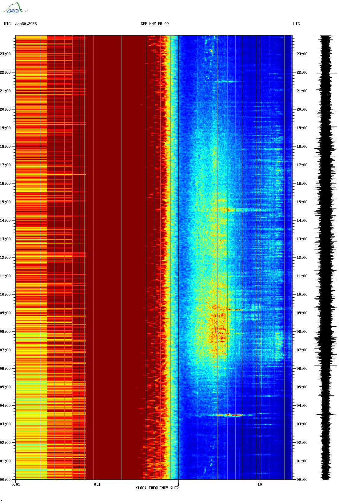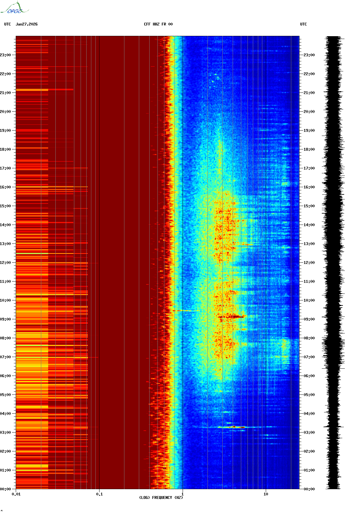 Spectrogrammes du Réseau Sismologique Auvergne-Charentes